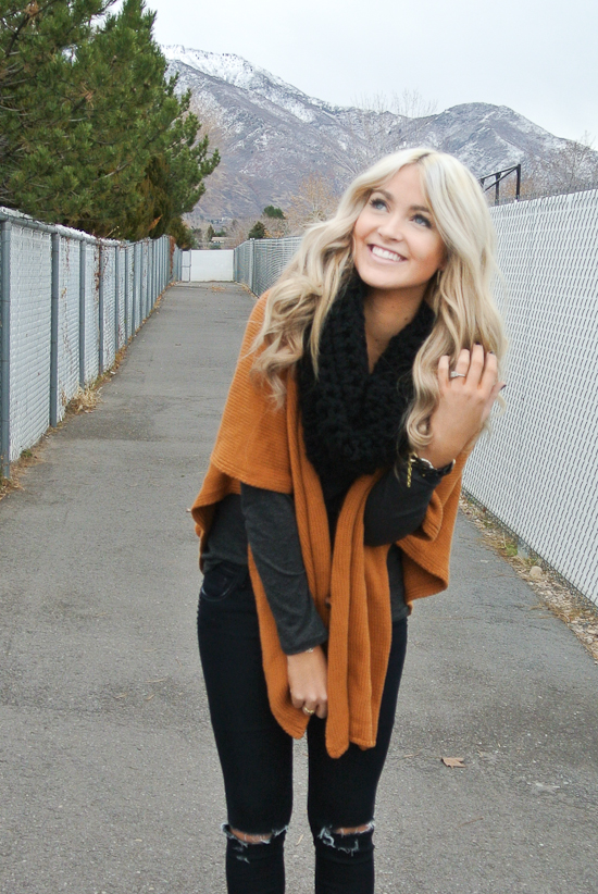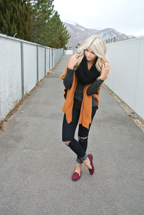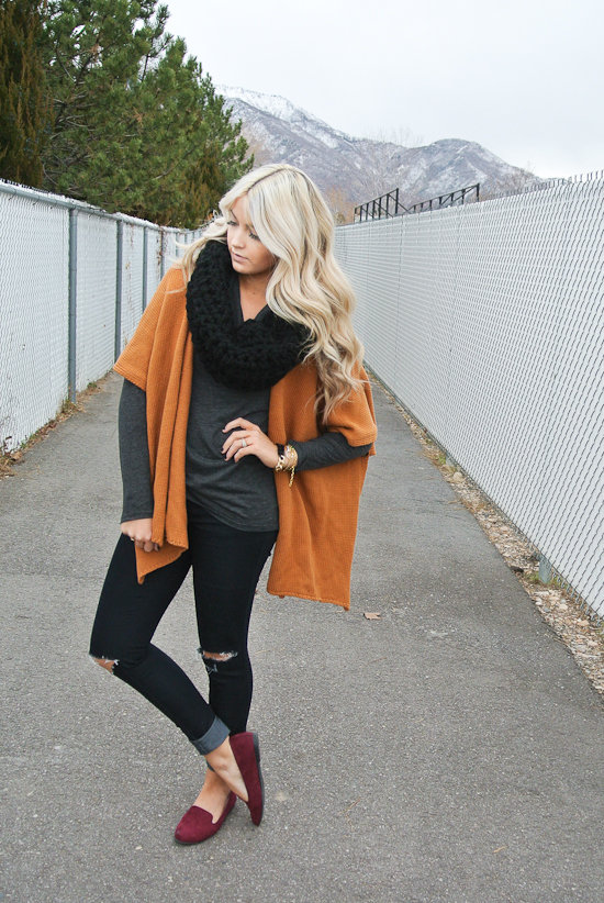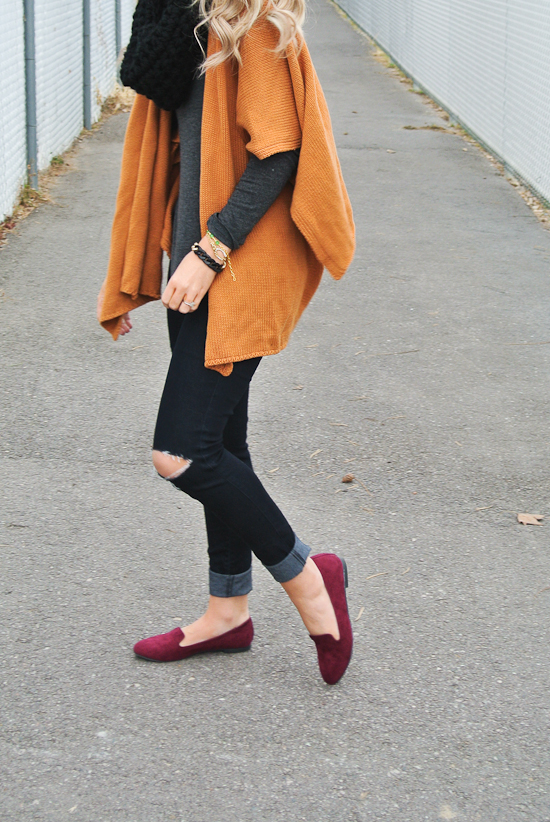 I feel silly talking about an outfit today when there are so many more important things happening, but I’m hoping it gives you some good ideas for Christmas if you are stumped.  In this outfit I am wearing two of favorite things this season!  I am loving loafers, like I could wear them everyday without hesitation, oh and I can’t forget shawls/ponchos/whatever you want to call it, I need them all!!  This is one of my favorite from PB&J Boutique and the color is fabulous may I add!