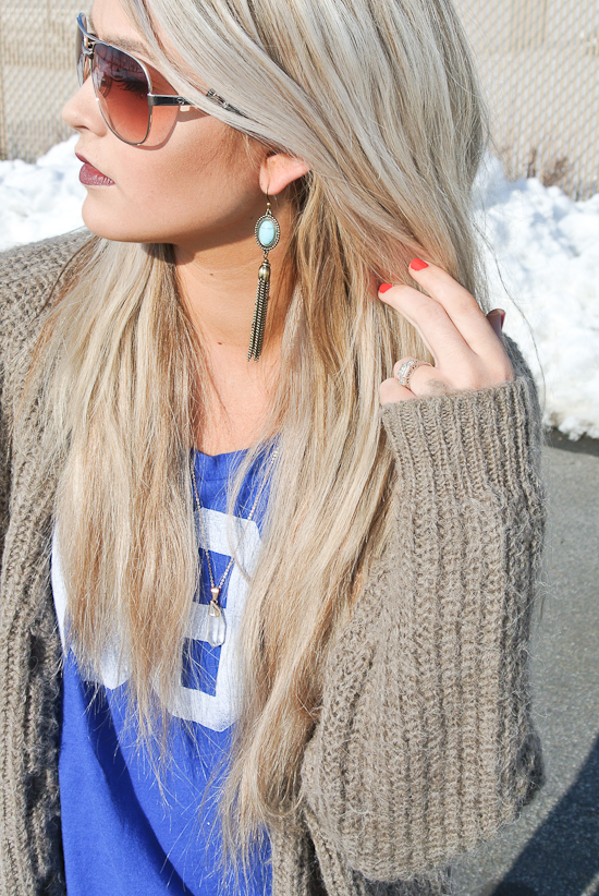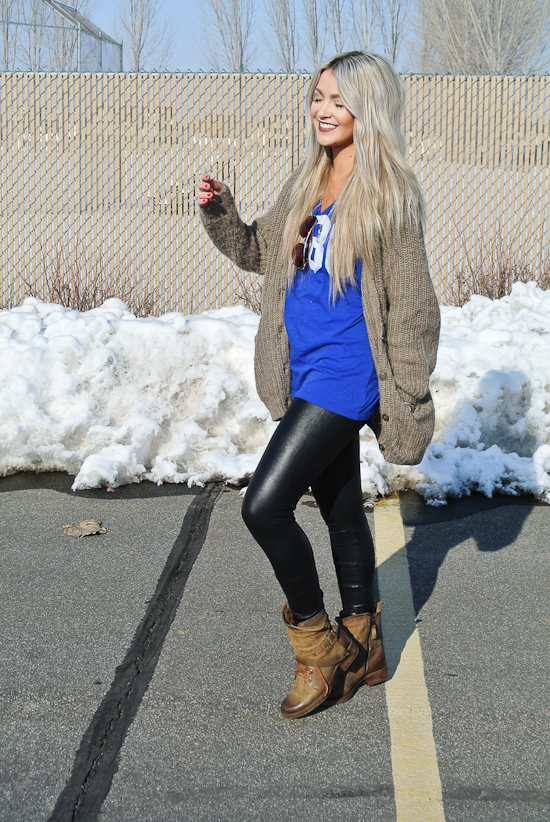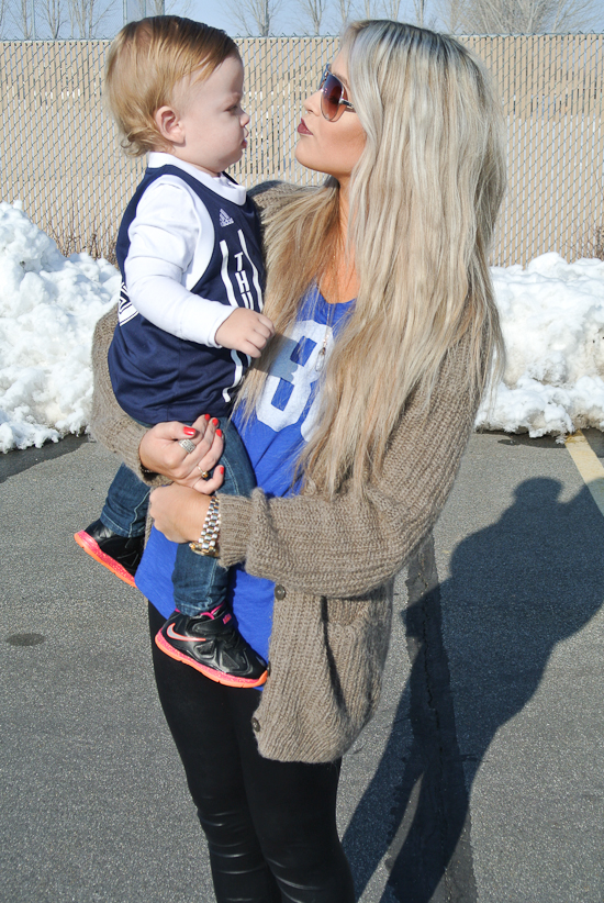 We had quite the busy weekend! Hanes is dressed here in his baller gear because we were going to watch his uncle Con ball it up. This is how daddy would prefer Hanes dressing everyday and I love it haha I’m also in my everyday wear if you can’t tell. Some comfy leggings, baggy tee, oversized sweater, and boots……yep that’s how I roll. Hope you all had a fabulous weekend packed full of adventures!