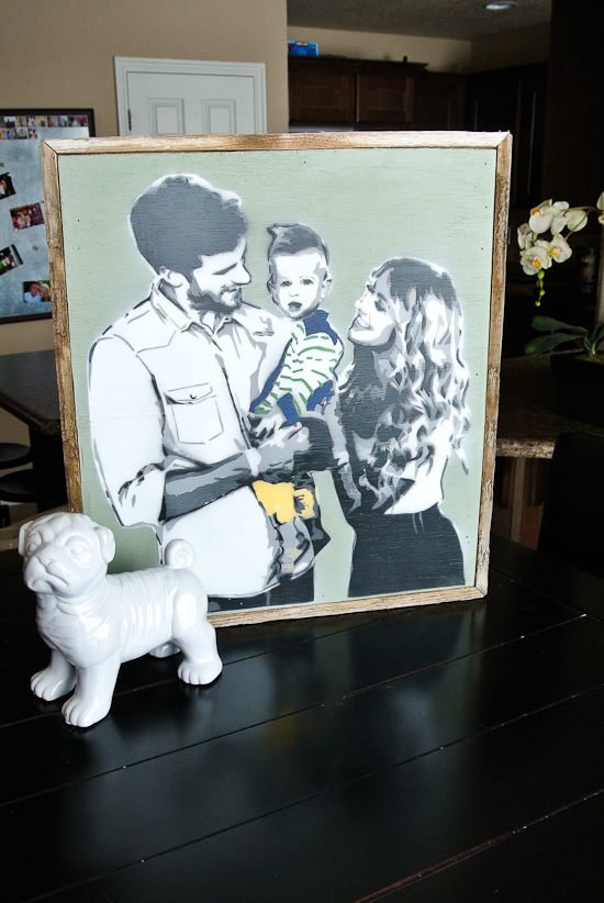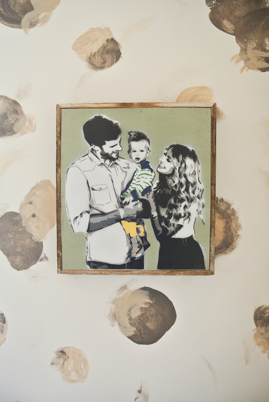 I can’t even explain to you how excited I am about today’s giveaway, you guys will fall in love!! One of my sponsors “Stencil Me In” is giving away a custom 18″x18″painting (of whatever you would like) to one lucky winner!! This prize is worth $130! His work is simply amazing, it is a combination of by-hand spray painting and digital creating! He recreated one of my family pictures and I am obsessed with it, here are some pictures of it in a couple different settings, it’s exactly what my house needed! He is also giving a discount code to all CaraLoren followers, the code is caraloren for 25% off!