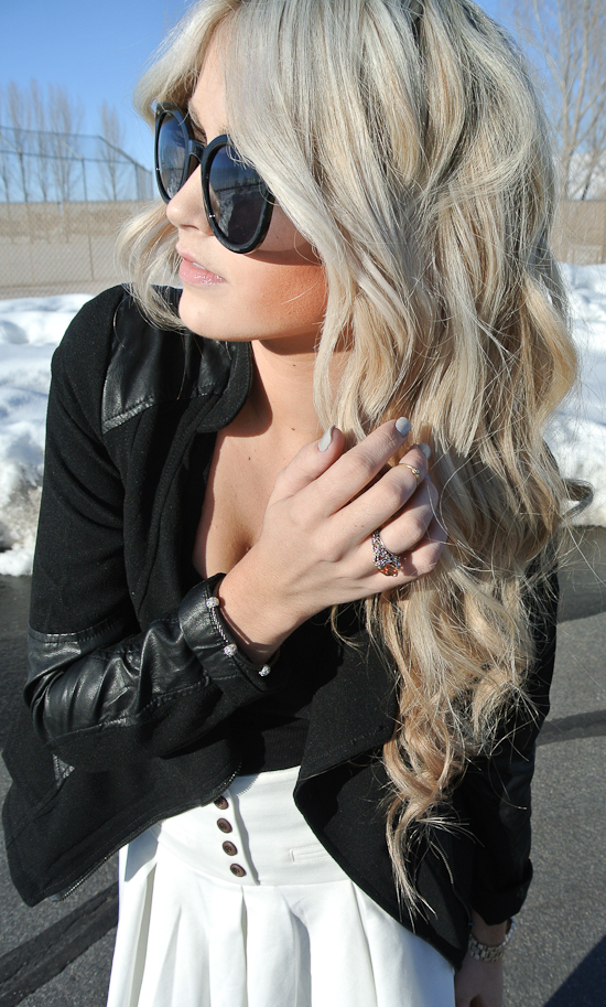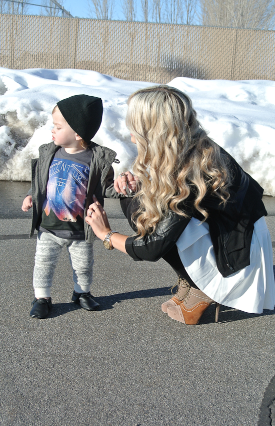 I decided to go with the classic black and white look but of course with a little edge because you all know me too well not to! Along with this fabulous new Poshlocket bracelet and antique ring that I am in love with! This ring is that perfect vintage look, it almost looks as if it could have been my grandmas from long long ago, which makes it super cool of course haha! Oh and I’m pretty sure little man didn’t stand still for 1 second for these pics, he is just a crazy little menace these days.