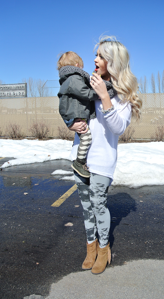 Well the weather here was crappy again this weekend.  It was windy and freezing but I guess that’s what you get when you live in Utah right?? It can be beautiful one day and bitter cold the next.  And whatever, it gave us another chance to get all bundled up and I love when little man is all bundled, he looks too cute! We actually stayed home most of the weekend with the sniffles but when we could get out we did! I get a little stir crazy at home!