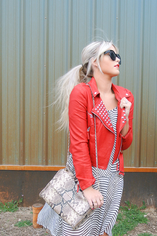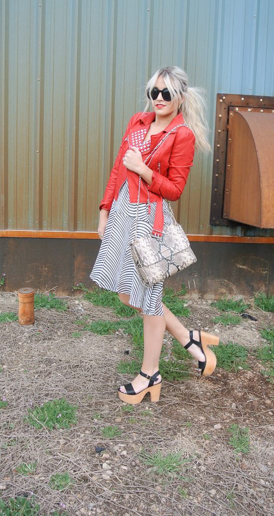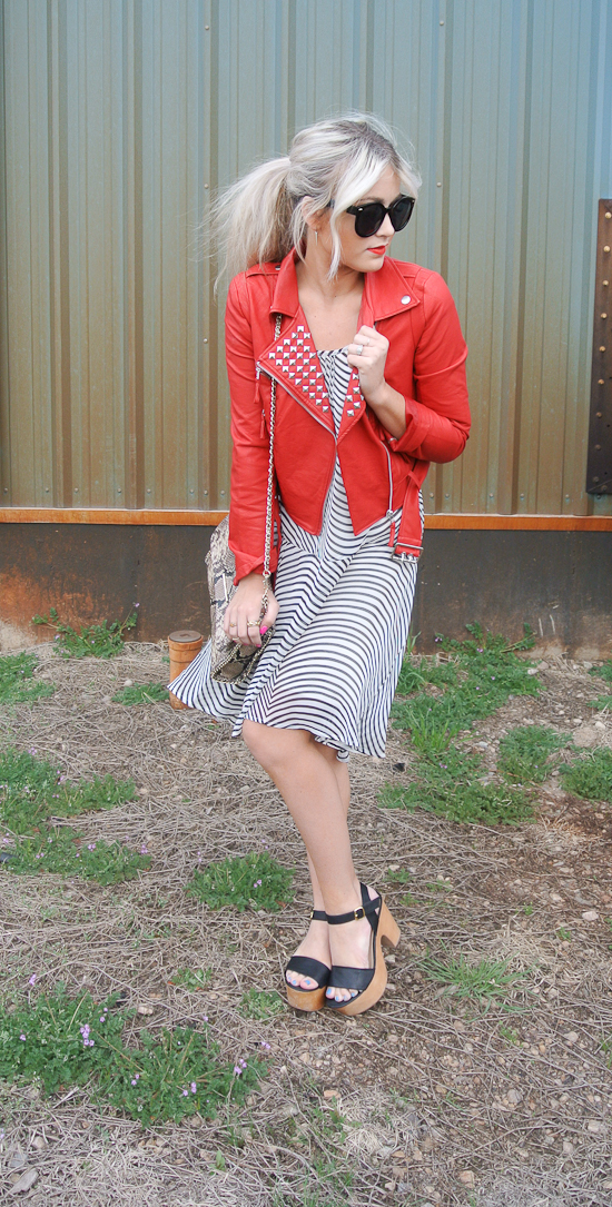 I forgot for a minute that I had this red jacket and man I am glad I found it haha It goes with so much and went perfect with this little spring dress. One of my favorite things to wear in spring and summer are dresses. They are so fun and they make an outfit so easy to put together! I am always on the search for a good spring dress and this is definitely one of them! I also like to make the look even a little more chill by throwing my hair up in a messy pony and sporting the bright red lip! It will dress any look down so it can be just a day look instead of a night or church look. Anyone have the same feeling about dresses?