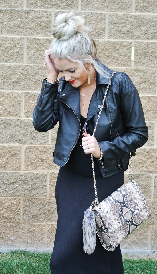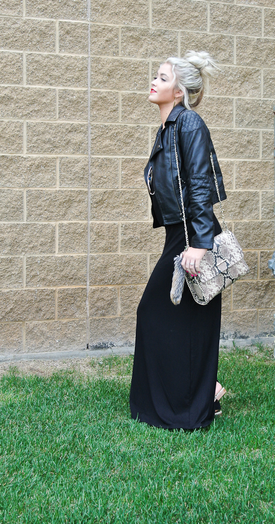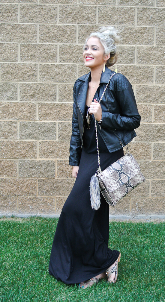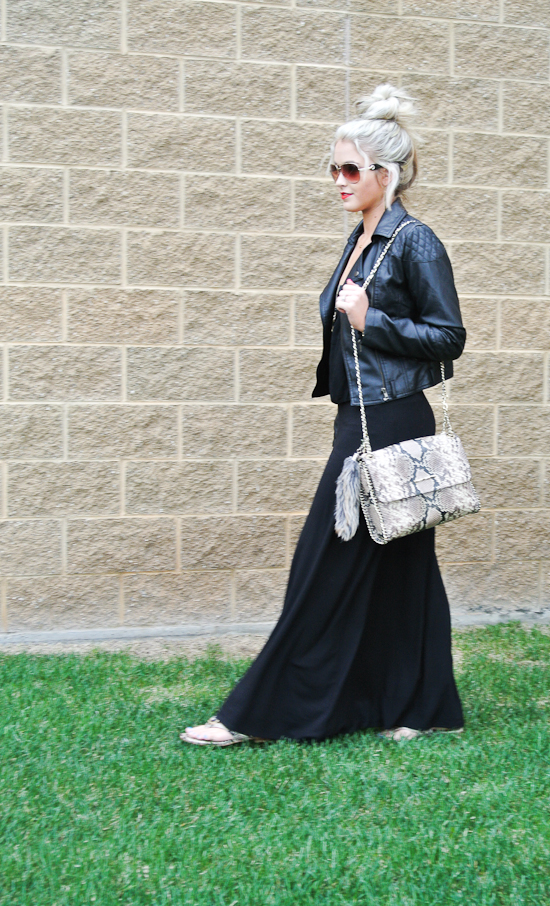 This is one of those looks that I could wear everyday and still got be sick of it haha I know some of you may think it’s so boring because the outfit is completely black but there is something timeless to me about it. Whenever I am in an outfit slump I can always count on black to cheer me, weird I know, black doesn’t usually have that affect! The perfect pieces to accessorize this all black outfit with are the Elaine Turner purse and sandals! They add that perfect pattern pop that an all black outfit needs! Oh and don’t miss the HUGE Elaine Turner giveaway when you scroll down!