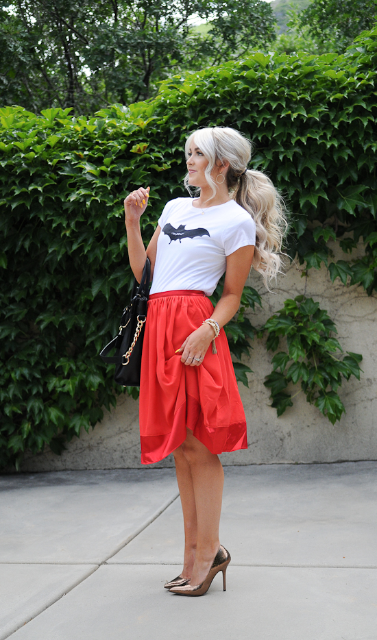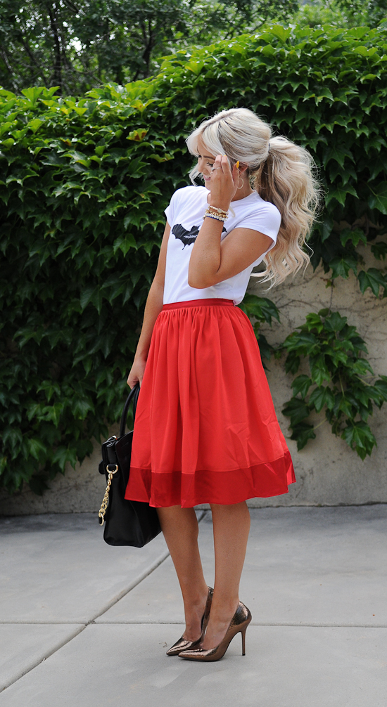Oh my goodness this red skirt is a dream! I have to be honest, I have never been a huge red lover until that past while. It’s actually one of my go-to colors now, I just love the way it can make any outfit pop. I actually am wanting an amazing red handbag soon so we will see if I can find that perfect one. Well Spiegel, you did it again with this skirt!