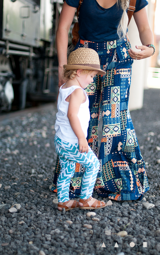 This is an easy transition look from end of summer to dreaming of fall.  We all know palazzo’s have a special part in my heart and these are no exception.  Hanes is also a little obsessed with wearing hats EVERY day lately so he had to match mama with his little fedora hat.  Everyone always asks how he keeps hats on and honestly the problem is how to get them off of him.  He has this weird little obsession just like his dadddy, I guess it’s not really a bad thing.