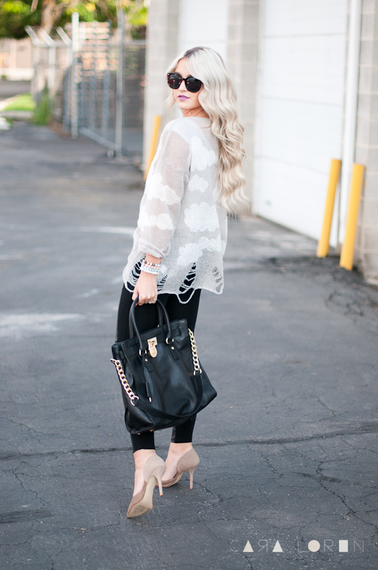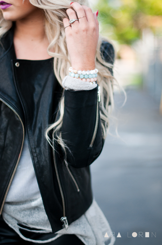 There are so many favorites of mine in this post.  I love a good distressed sweater, a leather jacket and faux leather pants.  These will be pieces I will wear all throughout fall and winter.  Oh my gosh and this lipstick is for sure one of my go-to colors right now.  I was looking for a good purple lip color for quite some time and of course I found it at Mac.  I usually just do a nude liner under my lipsticks but with this one a recommend doing the purple liner as well to keep it bright and a true purple. I am slightly obsessed with lipstick right now since fall is somewhat here so i will make sure I share the color with you along with my new makeup routine and products.