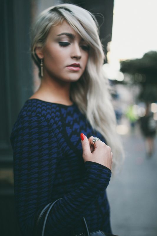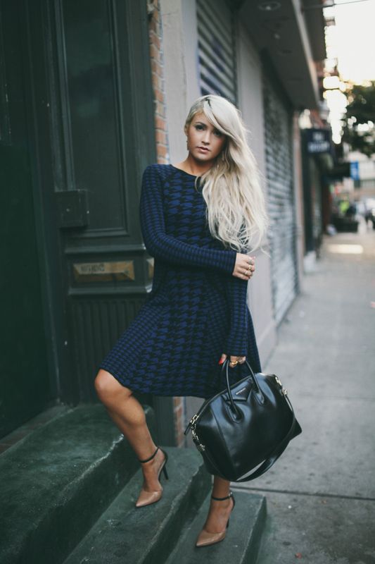 I brought you another NYFW look again today. I tried to spread them out so you didn’t get sick of them, I hope you like. This was one of my favorite looks of fashion week. It was so simple yet so much fun and sassy. I tried a new do with my hair and I actually really loved it. The back is just a simple twist and held with a bobby pin. It gave the dress a little more ump and I actually really like the outcome.