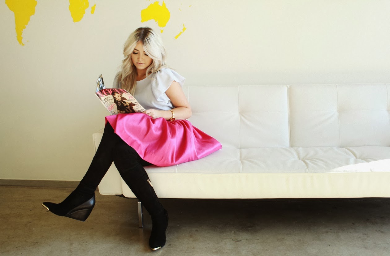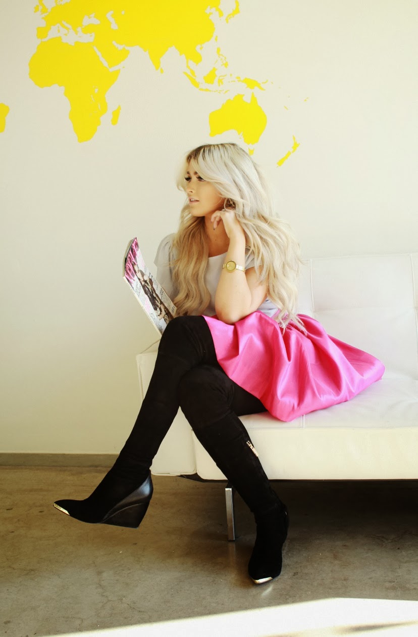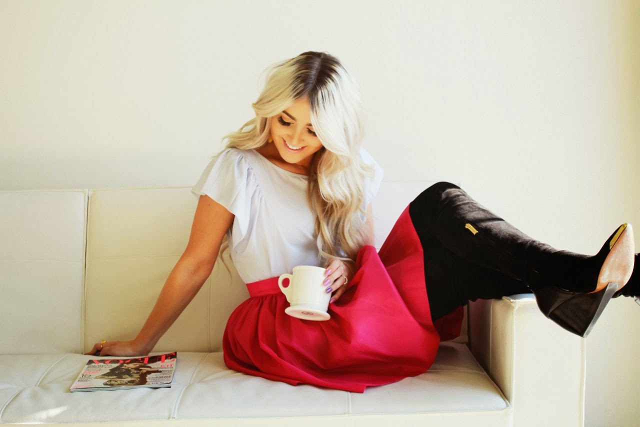 Now I know that I jump from a total grunge look one day to a girly girl the next but that’s what I love about fashion. You can totally dress to your mood or change your entire mood just by the way you dress. It’s fun isn’t it? I am sad to say that this shirt I bought a while back from ASOS is sold out…..but there were a ton of similar ones so I gave you examples below. Also this skirt is a new fav…… from the color, to the fit, and the overall girliness. It was just what I was looking for!