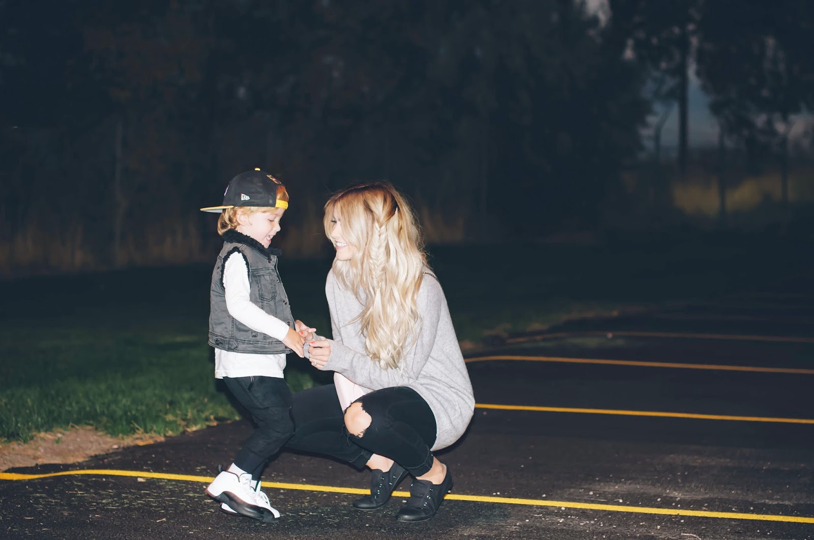 We were out yesterday running errands and we went to snap a few pics not realizing it was dark by 6:00 that night, hence the darkness.  This is a true sign that fall is here and I can’t quite decide how I feel about it.  Don’t get me wrong, I lOVE fall…..I just love summer too! I love everything about fall except it getting darker earlier.  For some reason I just HATE it.  It makes me feel like the nights are so quick and we don’t have any time to play! I don’t know if anyone else agrees but I am definitely going to continue wishing for the sunlight!