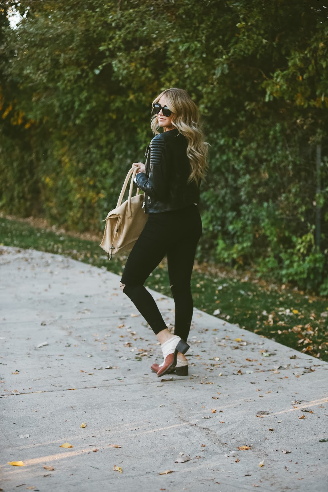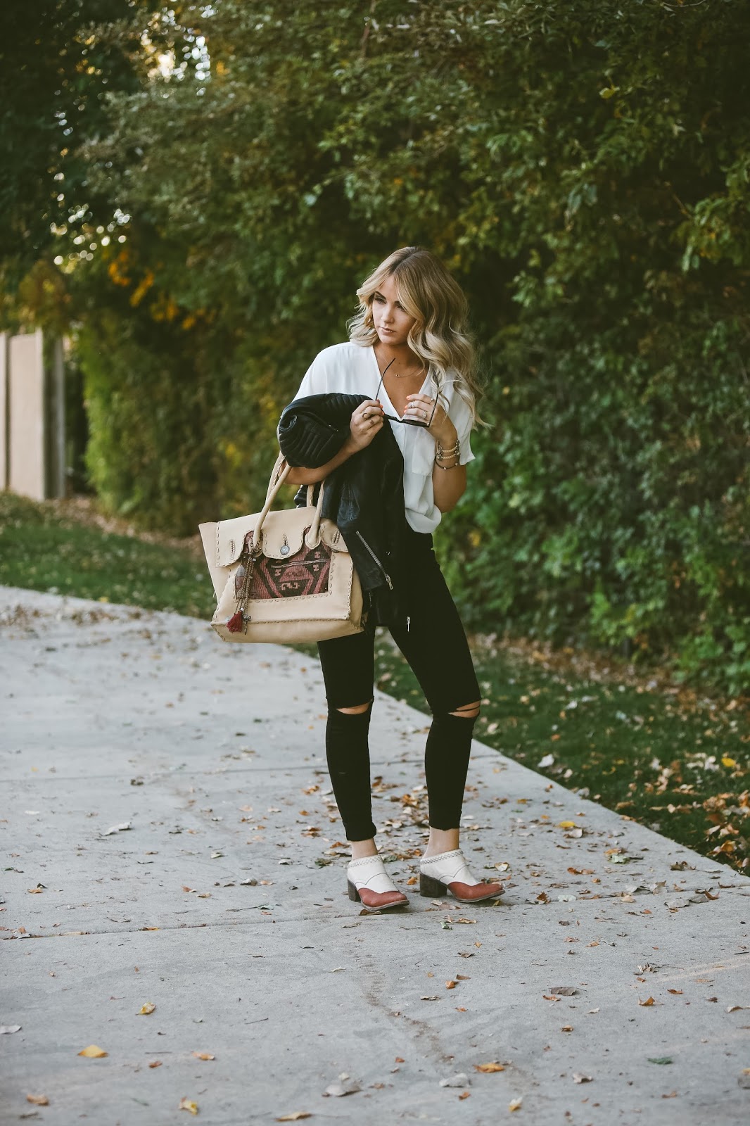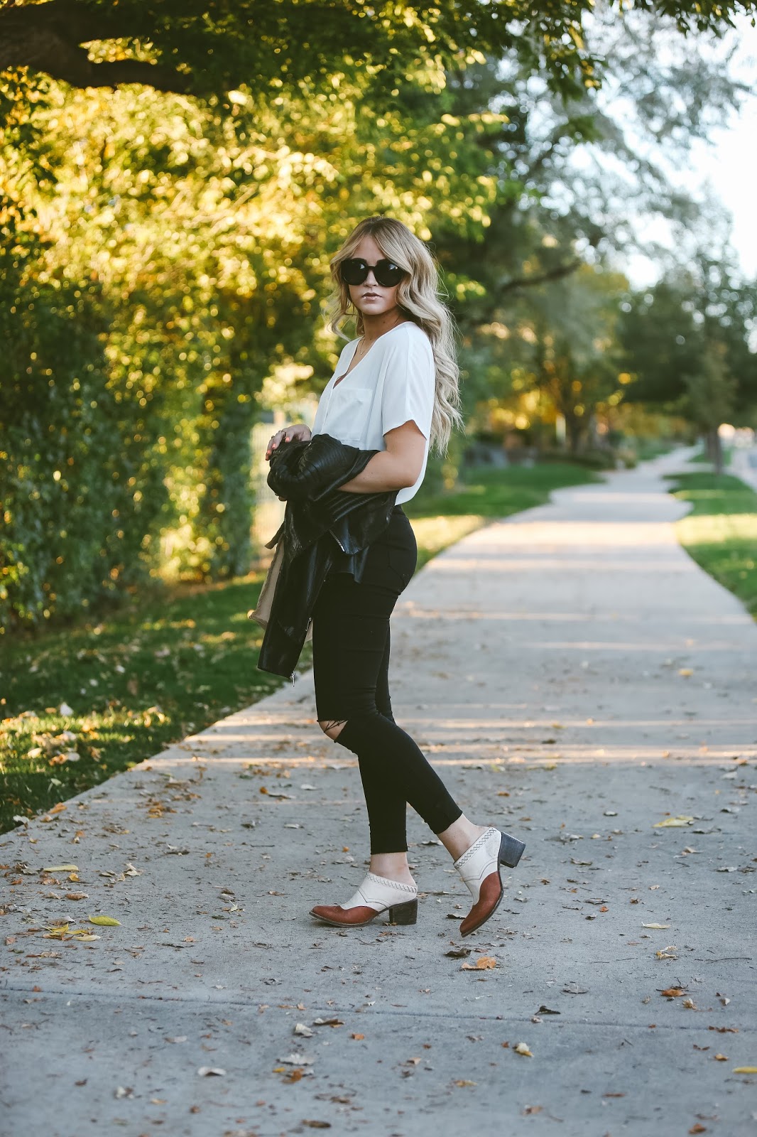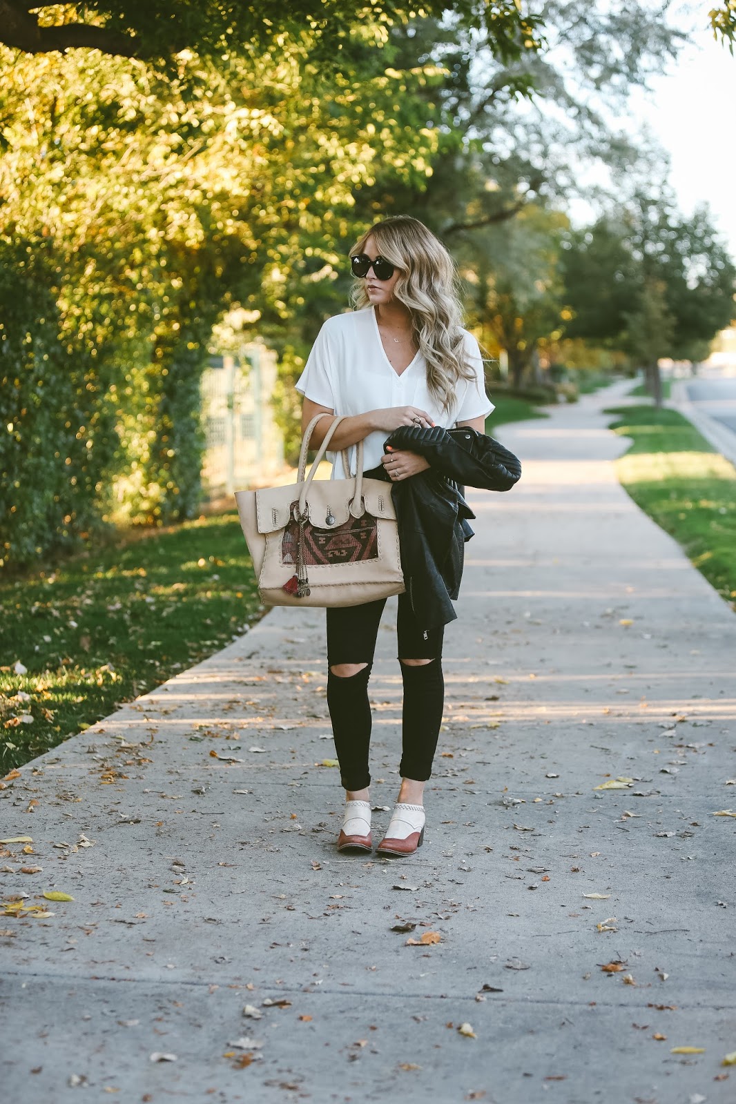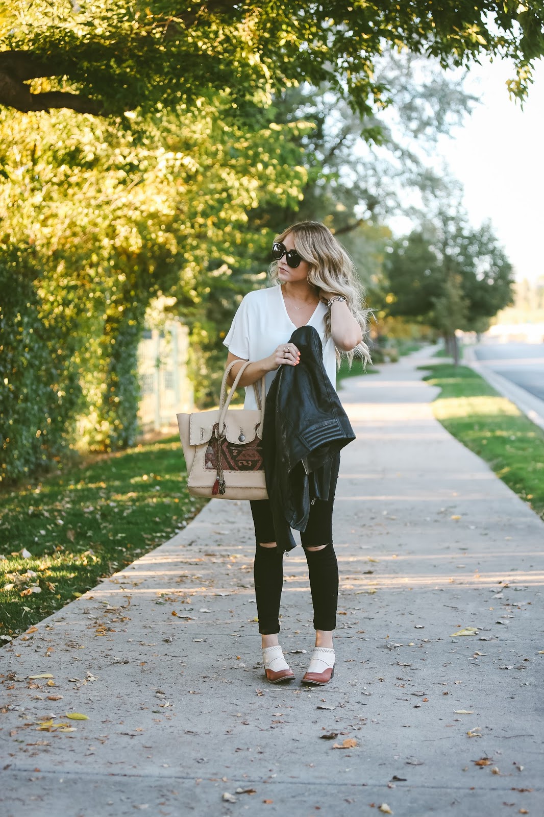 Happy Monday everyone! This outfit has so many different pieces that I have worn over and over again. You can never have too many go-to jeans, white basic tops, and amazing leather jackets. For some reason I don’t ever get sick of black, white, and grey, and I always gravitate towards them when I’m shopping. Don’t get me wrong, I love color, I just know I will wear basic pieces more than anything else. This may seem a little boring and simple to some of you, but I’m hoping others will relate and love neutrals as much as I do!