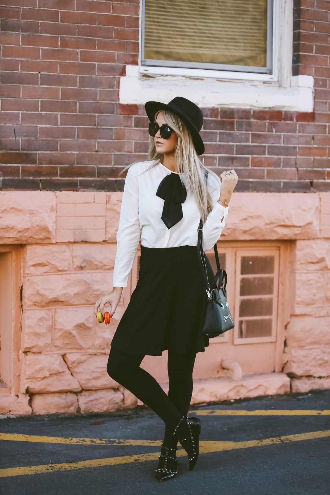 The moment I saw this top with the black bow, I knew I had to have it! I have been looking for a top like this for awhile that actually fits cute and I finally found the winner from Maison Jules. There is just something so feminine, simple, and “Paris-like” about it! I paired it with this little flare skirt, also from Maison Jules and some fancy little flats to finish off the look. Since I was wearing these Pieces of Paris by Maison Jules I needed to get in the Parisian mood, so we headed downtown to Salt Lake where we went to one of the cutest Parisian bakeries around, Eva’s Bakery! Not to mention they have the yummiest macarons in town! It was so much fun, visiting all these Parisian themed places, and it made me want to go right back to Paris and spend a week exploring that majestic city and just enjoy the beauty there! If you haven’t been, you truly need to go one day because it is a once in a lifetime experience! Have fun shopping and make sure to check out Macy’s to shop the Maison Jules line!