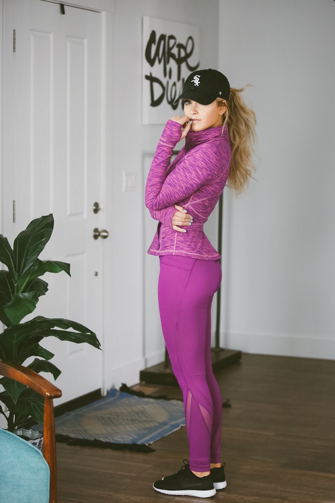 I was about to head to the gym yesterday and wanted to share an active wear look with you guys since it has been a little bit. We were planning on shooting outside, but it was beyond freezing…so there was no way that was happening. I don’t usually buy color in the fall and winter, but this jacket was a must. The color combo was amazing, I loved the fit, and it was on sale! I also am wearing one of my new pairs of Nike’s, and I am in love with them. I hadn’t tried the Juvenate’s before, and now I don’t know how I am going to work out in anything else. They seriously feel like I am wearing slippers while running, and it’s amazing. I bought them in this cute blue color as well because I couldn’t get enough of them. Anyway, I hope you all have a good weekend and work on those New Years resolutions. I am already having a hard time keeping my resolutions, but there is always next week! Happy Friday everyone!