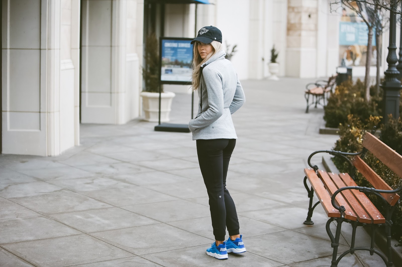 Happy Friday to all ya’ll! Today’s post features a look that you would often find me in. It is one of my favorite combinations to wear, mixing some comfortable workout gear, a pair of Nike’s, and a hat! It’s a very simple and clean look, and one that works great to run errands around town in, hang with my boys, and attend the various work meetings I have. As I have mentioned before, I don’t know what it is, but I have been slightly addicted to looking for new sneakers lately. It’s like once you start with some fresh new kicks, it is hard to stop. I blame my husband Brody for fueling the fire of this particular addiction, because he is always telling me how much he loves me in my sneakers, and he has a bit of a sneaker addiction himself. What are some of your favorite sneakers? Do you prefer any particular brand or style? Please share, I would love to know your thoughts, and I am finding that sometimes there is a style of shoe out there that is completely unknown to you, and once you come to know it, you can’t get enough of it! Sort of like that chocolate bar that you never knew you needed until you had it (my Caramello addiction is a perfect example).