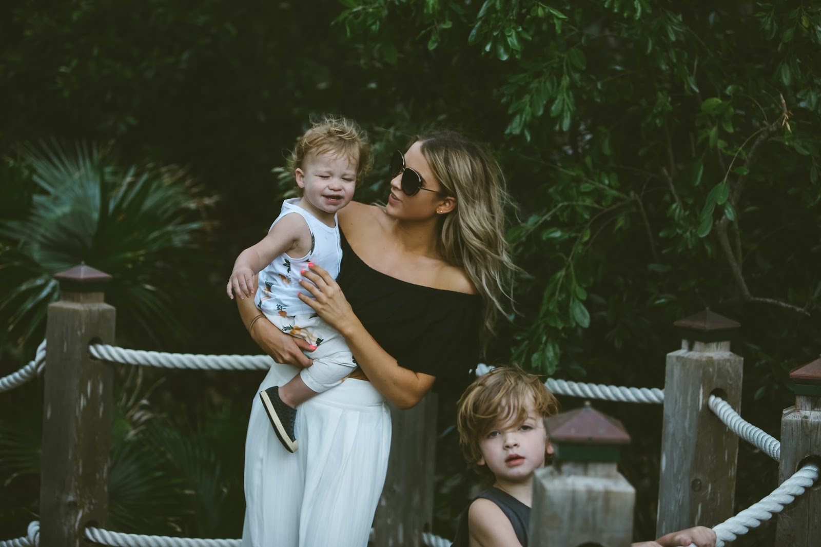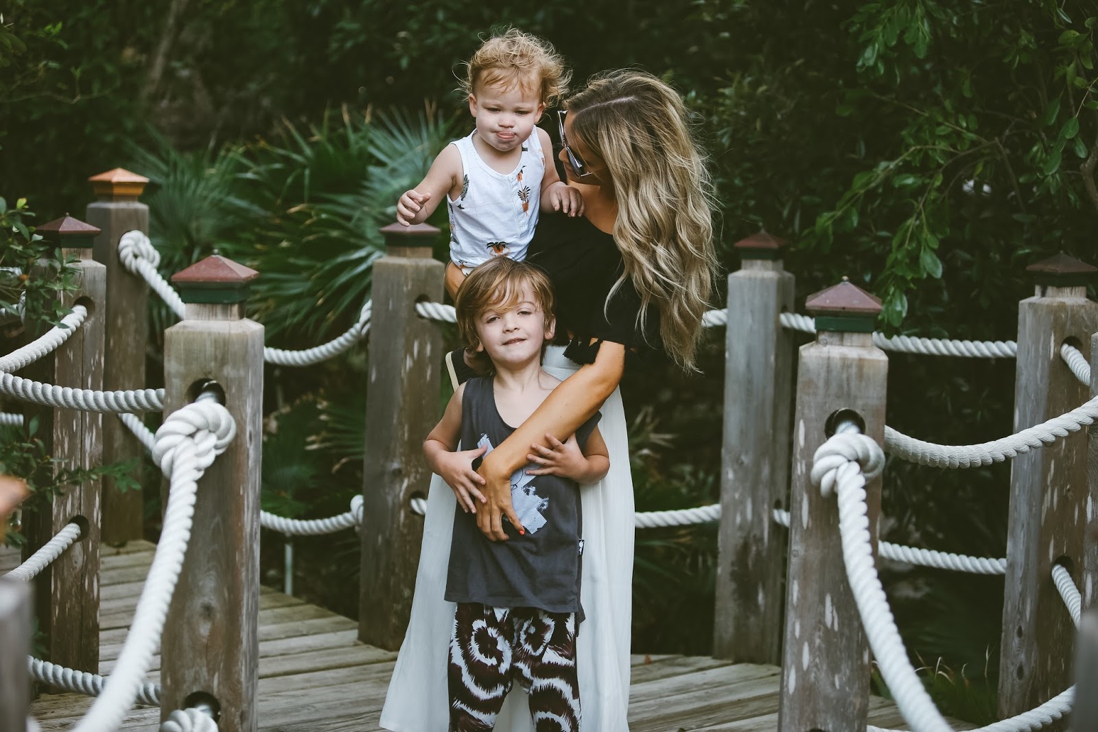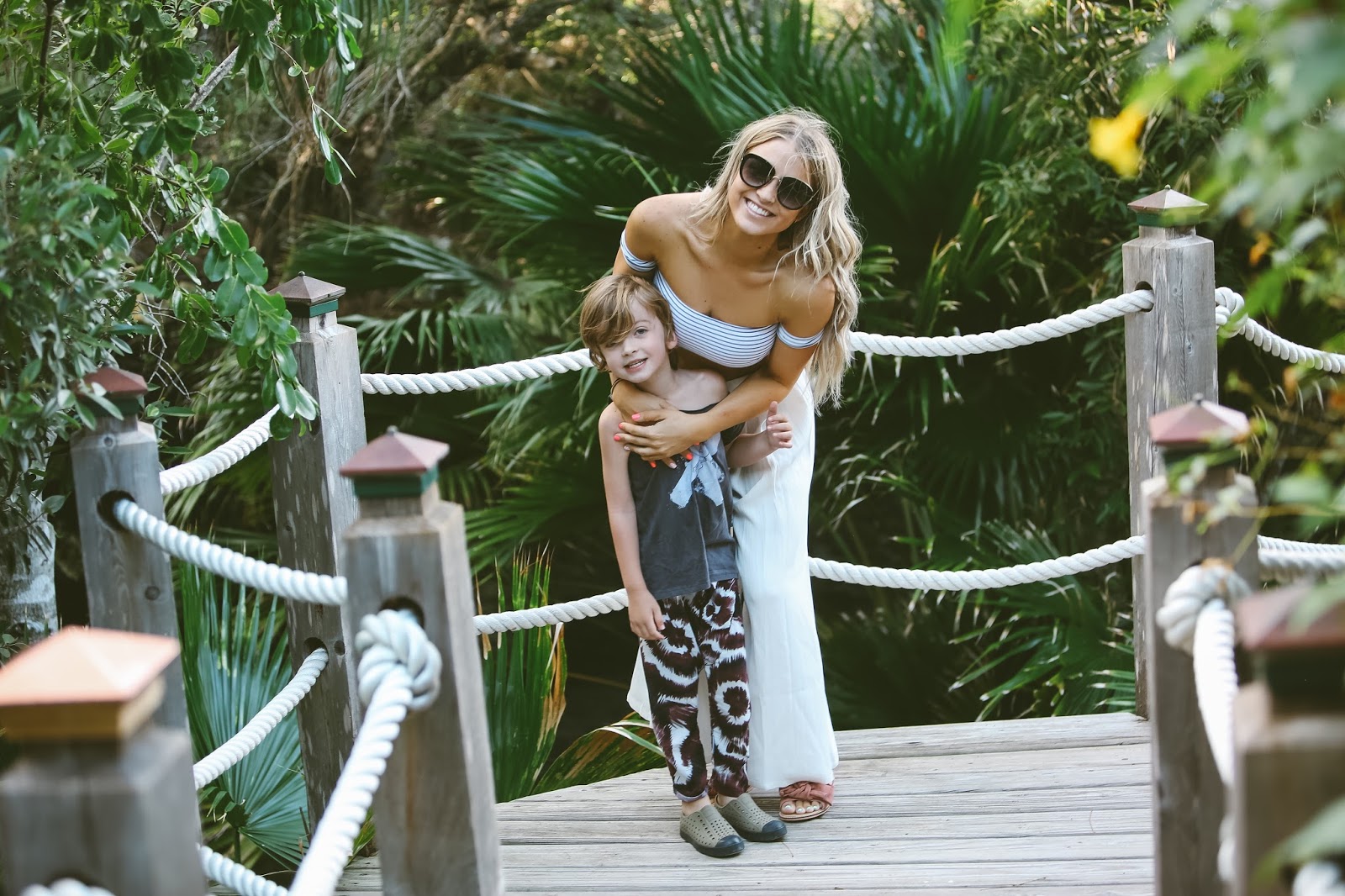 Give me sunshine and sand and jungle all day everyday! Today’s post features another glimpse into this paradise of an island. The weather here is absolutely perfect, not too hot, but warm enough to let you soak up the sun without being uncomfortable. This little spot is just directly behind the villa that we are staying at and Hanes claims that it is a “pirate bridge” that leads to ocean. We took the boys on a little adventure back to this bridge and they loved it! It’s so awesome to see the boys get excited about seeing new places and experiencing different parts of the world. Arrow was pretty hesitant about the sand at first, he kept trying to lift his feet off beach floor. Kid’s are so quick to overcome their fears and hesitations though, it wasn’t more than ten minutes later that he was running up and down the beach area, chasing the waves in and out. Hanes, on the other hand, thinks he is quite the veteran when it comes to the ocean and beach, so he was much more interested in playing on the pirate bridge and looking for lizards in the jungle. I just love my boys so much, and seeing them grow and get out of their comfort zones, even at this young age, is such a great thing to witness.