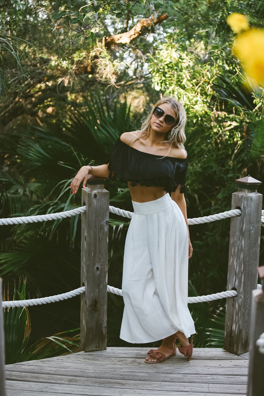 About the outfit I am sporting, I love it! I love the simplicity of dressing for the beach and swimming. There are so many combos of swimsuits, cover-ups, sandals, etc that you can wear, but my suggestion would be to keep it simple with whatever combo you choose! Coulettes, an off the shoulder-boho top, sandals, and sunnies…you can’t go wrong with that combo. Hope everyone is having a fabulous Thursday! Thank you so much for your love and support.