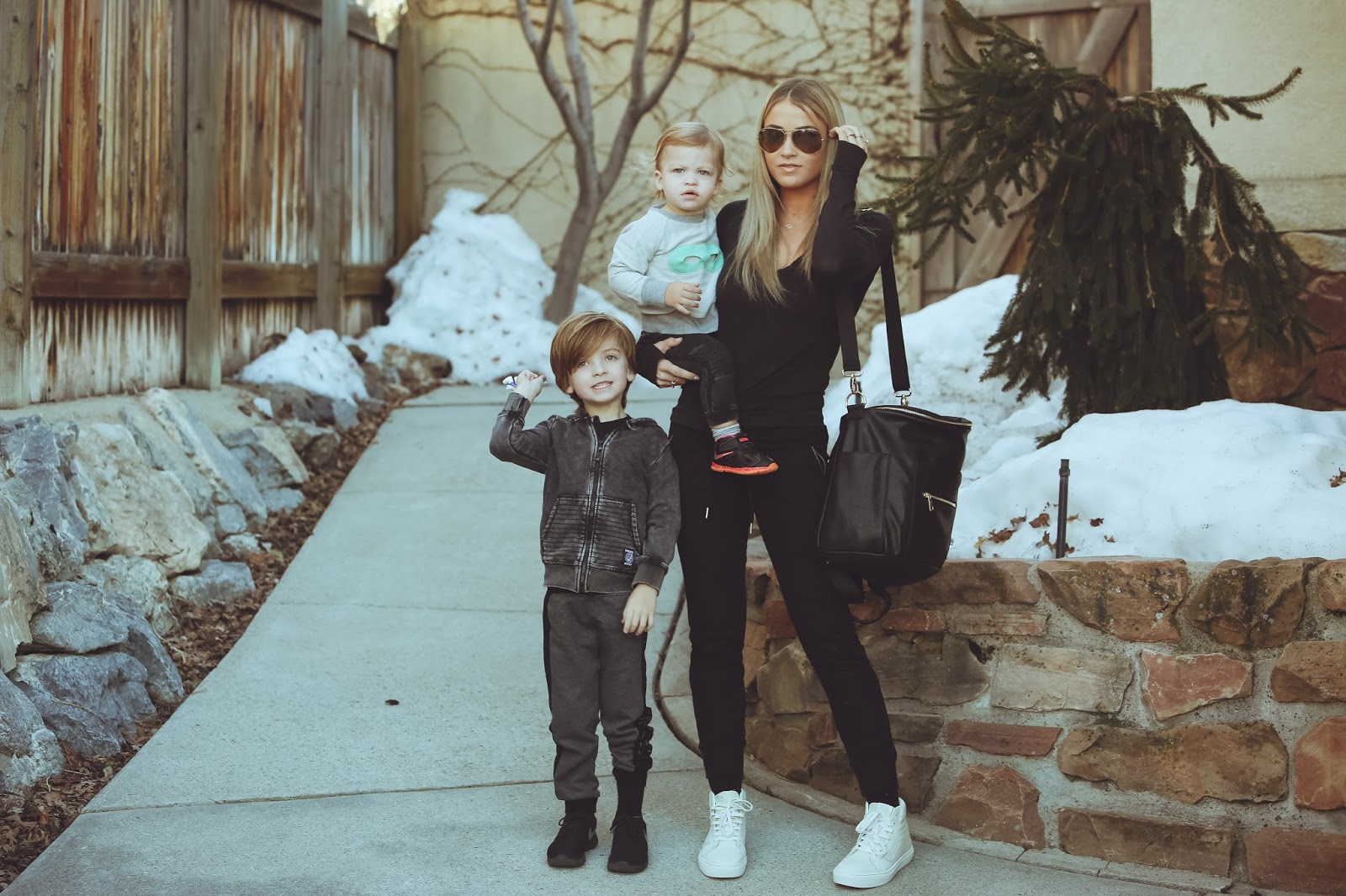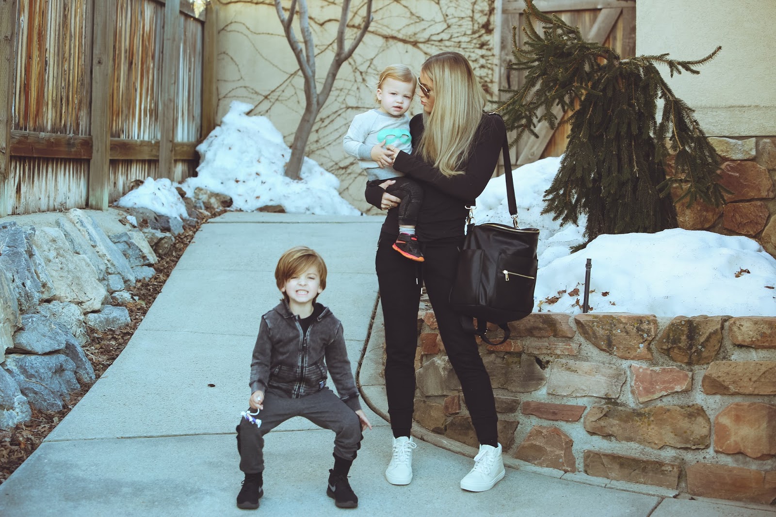 Hey ya’ll! Just keeping it casual over here and thought I would do a post on something that I would wear everyday. So, confession time…I love sweats, like I really love sweats! Is there anyone else out there that loves sweats? I mean, come on, they are so comfy and can pair well with so many different pieces, what’s not to love? Brod and the boys definitely love their sweats as well, so there are days that you can spot the entire VB family in a pair of sweats. This post shows an outfit that gives a spot on example of my everyday style. I have paired the sweats with a basic black t-shirt, one of my favorite leather jackets, and the high-top vans ( I love, love, love, love these Vans). It is for sure a casual look, but I wear an outfit like this out to run errands, to shop, and even sometimes out for a laid back dinner. I love finding clothes that provide an easy-to-wear feel but look good enough to wear out. What are some of your everyday looks? Are you a sweats person like me? I would love to hear your feedback, I am always looking for new ideas/brands that fit my everyday casual style. The final piece to my everyday look here is my diaper bag from Fawn Design bags. It gives the diaper bag such a clean look, and it’s functionality is on point, providing options to wear it as a messenger bag or backpack. It provides the space you need as a mom and looks great! Well, I hope you all enjoy today’s look and have an amazing day!