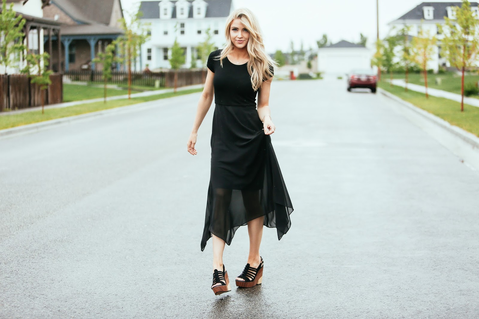 Hello to all of you beautiful people! Today I have teamed up with Vince Camuto at Macy’s to talk about their spring/summer line that can be found at Macy’s. Now who doesn’t love a black dress? I have always been a huge fan of wearing black, and when doing so in a little “midi” dress, you just can’t go wrong. This look is just one of the many options that you will find when you check out the Vince Camuto line at Macy’s. They have a such great selection of tops, bottoms, dresses, and accessories. It would pretty much be impossible to not find something you love! I love this look because it feels effortless and is a dress that you could go back to again and again. Everyone needs a “go-to” black dress and this look has absolutely nailed it. Also, this black dress can be easily paired with a variety of shoes. I chose wedged heels for this look, but this little black number would be complimented well with a pair of pumps, or flats too. Anyhow, if you get a chance, I highly recommend taking a look at Vince Camuto at Macy’s, you will not regret it. I would love to see the pieces you find and the looks you put together, please share them and use the hashtag #MacyLoves when you get a chance. Thanks to all of you for following and I hope you all have a wonderful day!