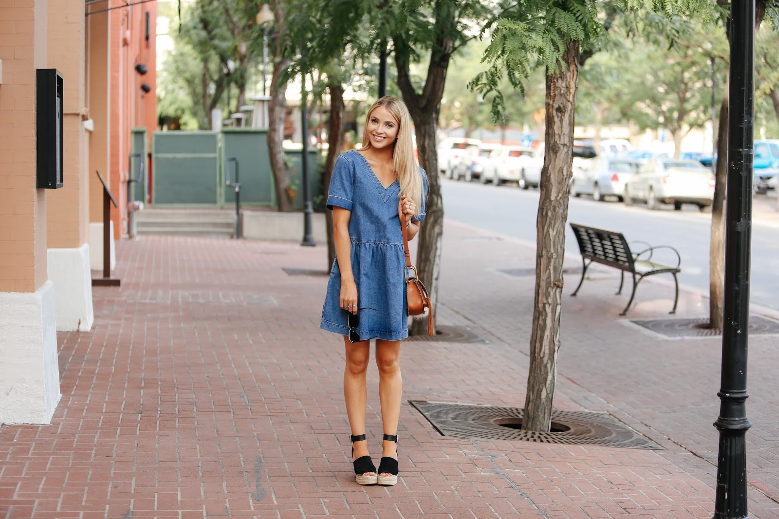 Hey lovelies! Hope you’re having a fabulous Thursday so far! Today is a beautiful day and in honor of throwback Thursday I am kicking it back to last week when Brod and I went out on the town for a little date night. We enjoyed some seafood and a movie and just chatted the night away. It’s funny, we have been married for seven years now and some of my favorite moments are the ones that involve us simply sitting and talking about life, our kiddos, our dreams, our memories together, and each other. I have heard the quote that, “love is a long conversation” and I have to say that we have found that to be true. I just love being together, not matter what we do, I love doing it together. For this night out I sported a denim dress and some platform wedges, a simple and classy look. I love that denim never goes out of style, to me, denim pieces will be a fashion stay forever. What are some of your favorite denim looks? Are you a denim jeans only type of person? Or do you mix it up and explore denim with a variety of pieces? Please share, I am always looking to incorporate denim into different looks and looking to find new denim pieces, whether it be online or in actual brick and mortar stores. I hope you all have a fantastic day! Thanks again for following! I love you all.