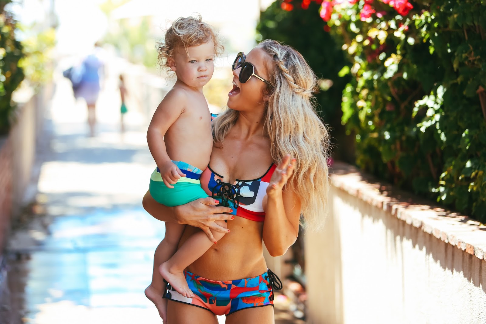 Happy Wednesday to all of you! Today I am throwing it back to the lovely city of San Diego, where we spent a lovely week on Mission beach soaking up the sun. This particular afternoon was a beautiful one and my little guy Arrow and I were out having some fun wandering the beach houses near where we stayed. As I look at these pictures I can’t help but be so thankful to be this little dude’s mom! He is such a ball of energy and yet has such a sweet and soft side to him. I talked him in to giving me kisses before we headed to the beach and he gives the sweetest kisses! I know I have said this before, but there really is nothing I love more than being a mom to my two boys. For this beach day I wore a suit that I fell in love with because of its vibrant display of colors. This suit is on killer sale right now so be sure to check the link out below! I hope you all have a fab day! I love you all!