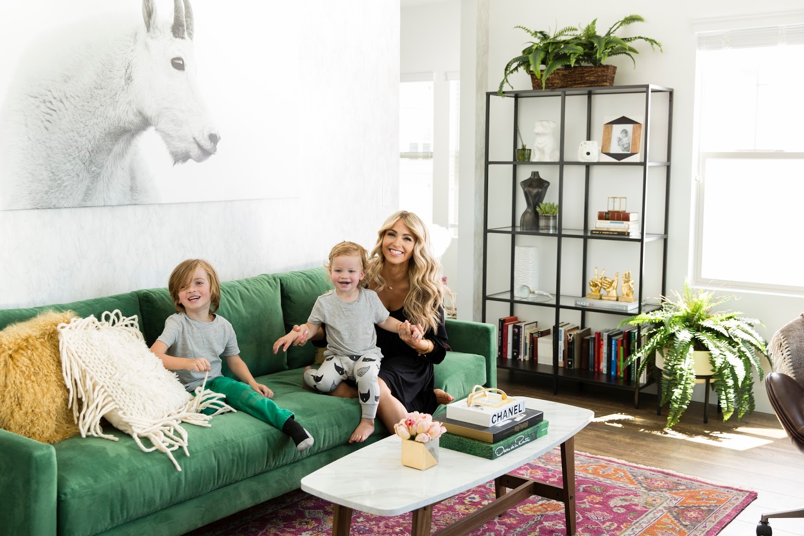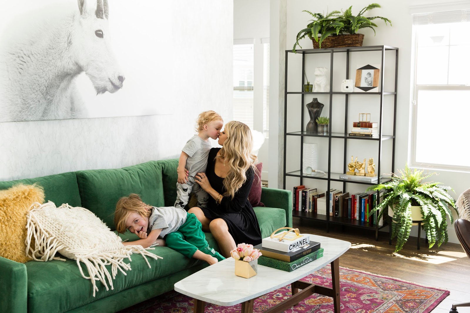Good morning guys! Today is a beautiful day and I am so excited to give you a glimpse into the place where we get a lot of our work done day and in day out, that being our office! We had the opportunity to work with Joss & Main to design and put together our office and I am absolutely thrilled with the way it turned out. They have such a selection of great pieces at Joss & Main, ranging from rugs to sofas, and everything in between, and were fantastic to work with. I wanted to try something new and a little different with our office and took a gamble on this emerald velvet sofa, and gosh I am glad I did. I love the energy it gives the space and it so comfortable to sit on, if Brod and I are tired of sitting at the desk, we simply move to the sofa to get some work done. I also added the hanging chair to the mix and loved the way it compliments the space and provides a place to sit, but with a different style than the norm. Needless to say, I had such a blast choosing different pieces and bringing them all together to create our work/creative space. Brod and I have loved it as a place to go and focus our energy on getting work done, but also love it as a space to hang with the kiddos, read, and have some great conversations. I hope you enjoy taking a look and big thanks again to Joss & Main!