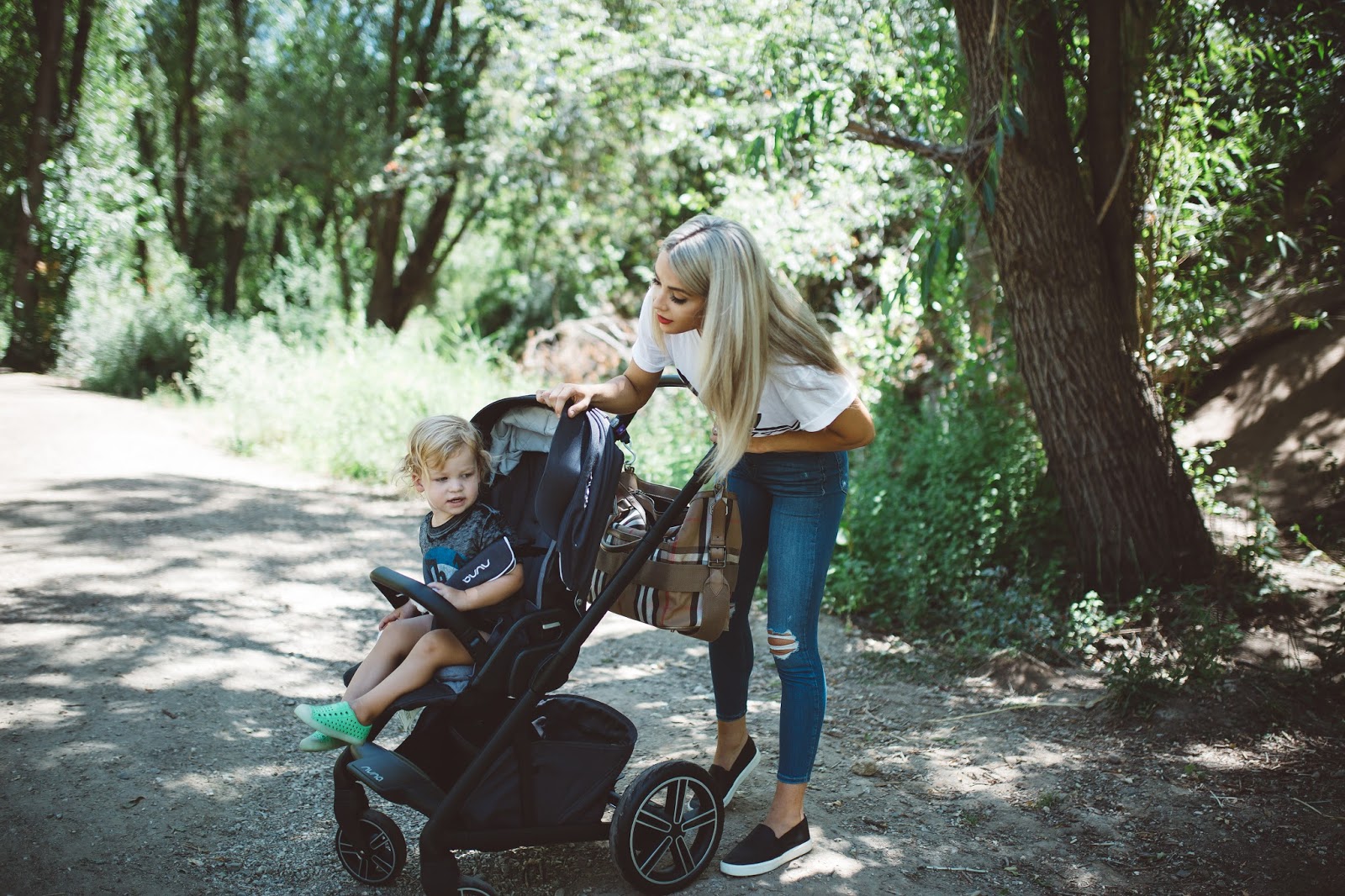 Hey guys! It’s Monday and a new week is upon us and I am excited to share this rad new stroller from Nuna with you! So, if you know me, you know I am all about finding products that are easy to use, practical, and yet look great! Well, the NUNA JETT MIXX stroller is just that! It has a very clean and sleek design to it, and when it comes to usability, it is top notch. I love it for my little dude Arrow because I can have him forward facing or parent facing when we are walking about, depending on the mood he is in. Does he want to see the world or is he in a “chat with mama” mood? Something else that is pretty awesome about the JETT MIXX is that it comes with bassinet as well. A few quick snaps and you can switch from stroller to crib so that you don’t wake up your little dude during his nap. How cool is that? If you wanted to complete the entire collection, you could snag the JETT PIPA, which is the car seat and base. This collection really makes it so easy to drive, carry, stroll, and take your little ones wherever you need to day to day. Also, the handle is adjustable, which I love so much because Brod and I are different heights, so we can easily adjust the handle based on who is strolling Arrow around that particular day. One other feature that I thought was so cool are the all-terrain wheels. As you can see in our pictures, this stroller can go off-roading haha! We took it on a little trail at a park nearby and it worked like a charm. So, you can take it on the streets or trails and it carts your little ones around smoothly! Any who, if you can’t tell, I love this stroller and it can be found at Nordstrom during the anniversay sale at a great price point, so anyone looking for a fantastic stroller should check it out asap! I hope you guys all have a wonderful day! Thanks for following!