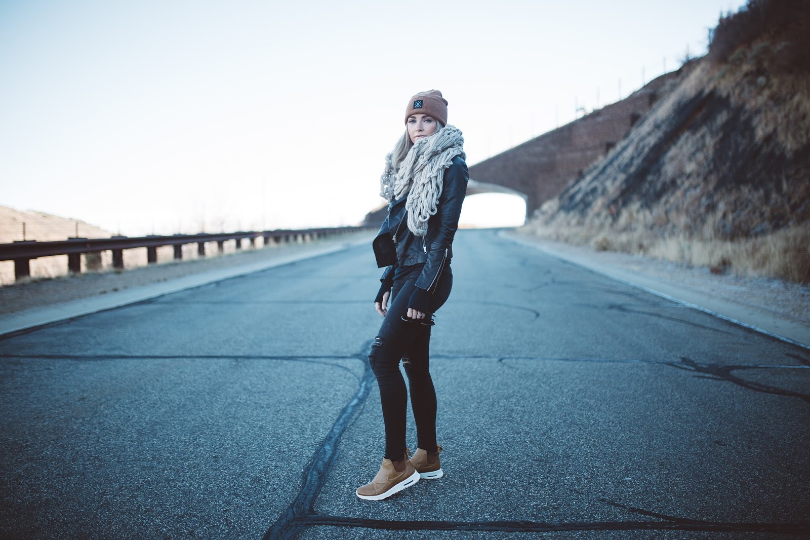 Hey gang! Good morning on this beautiful Thursday, I hope this post finds you all happy and well! Today’s post takes us up to Park City for our little road trip and staycation! We did a little canyon and mountain driving on our last day and even though it is kind of in between seasons, the mountains are still so breathtaking and vast. I sported a pretty chill look for this day, mixing in a beanie, scarf, and some of my favorite new Nike’s. I love these sneakers because they fit like sneakers but could be dressed down like I have done here or dressed up too. What are some of your favorite Nike’s? My list continues to grow but would love to hear your thoughts too! Any how, I hope you guys all have a fantastic day! Thanks for following!