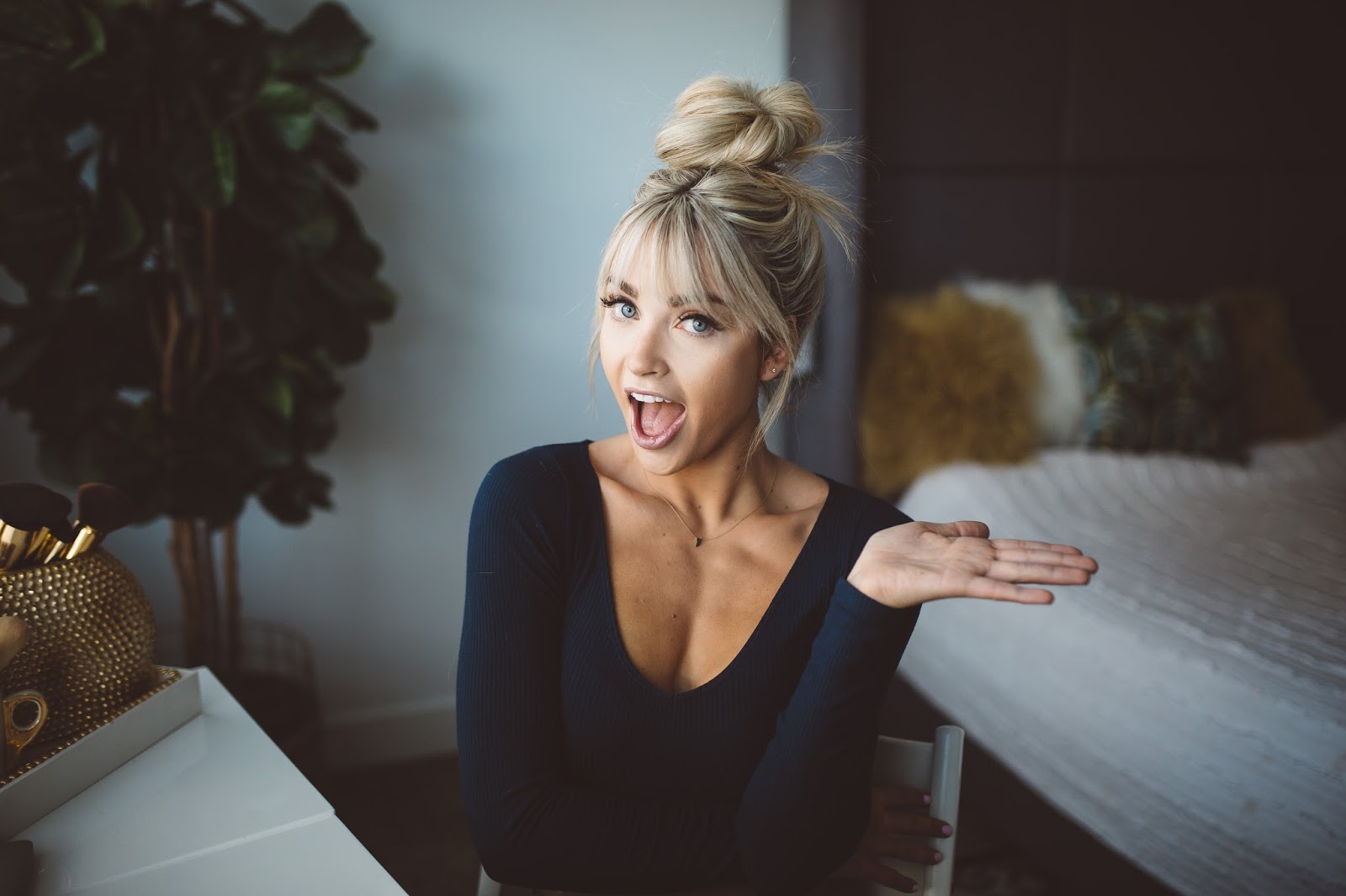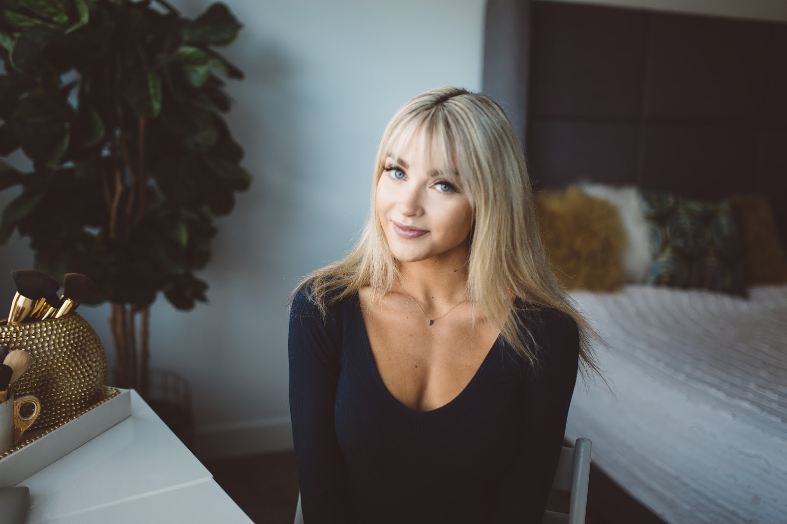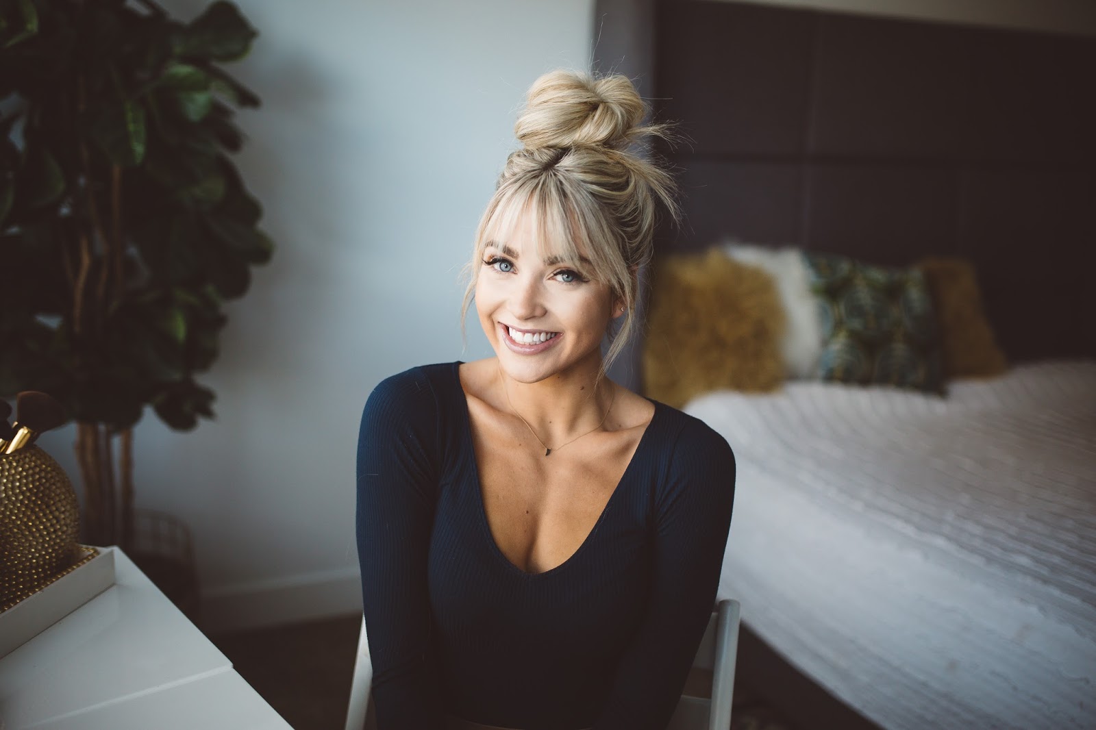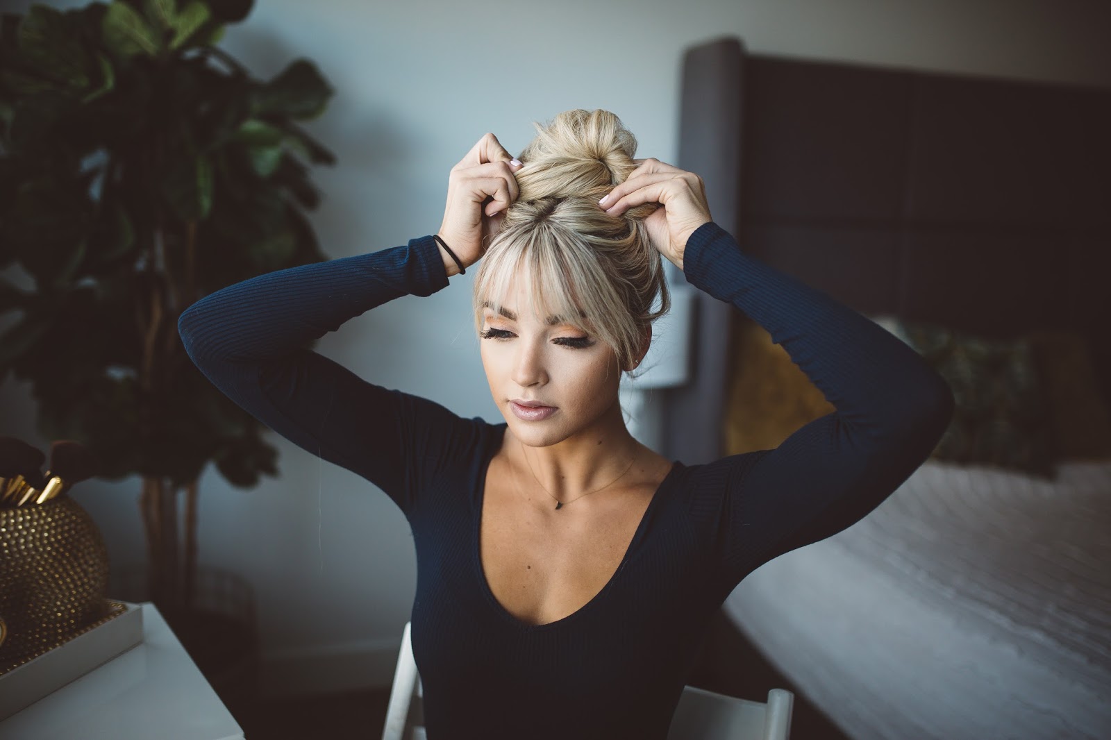 Hey gang! Happy Tuesday and I hope this post finds you happy and well! So, I have had some questions about how I do my topknot and I know I have done a couple tutorials on this in the past, but it has been quite a while, and I thought it was time for an update! Plus, I haven’t done a topknot with my bangs, and to be honest, that was one of the main reasons I wanted to get bangs because I knew I would love how the topknot looks styled with them! I also included step by step pictures below so I hope that helps too. Anyhow, hope you guys like the tutorial and let me know what other tutorials you would like to see! I received a ton of great feedback on IG today and am thinking the next one should be my everyday makeup routine, but let me know what else you would like to see?! Thank you all for following!