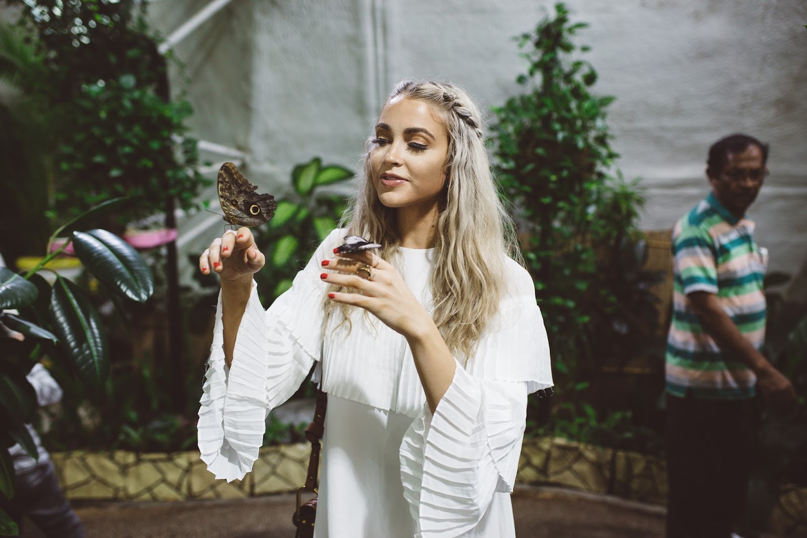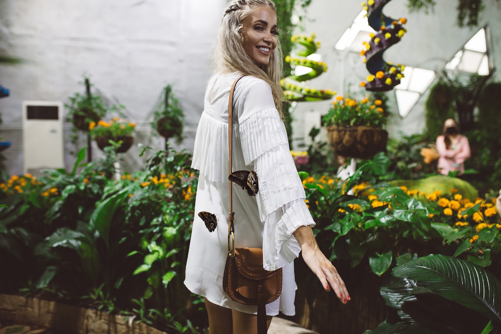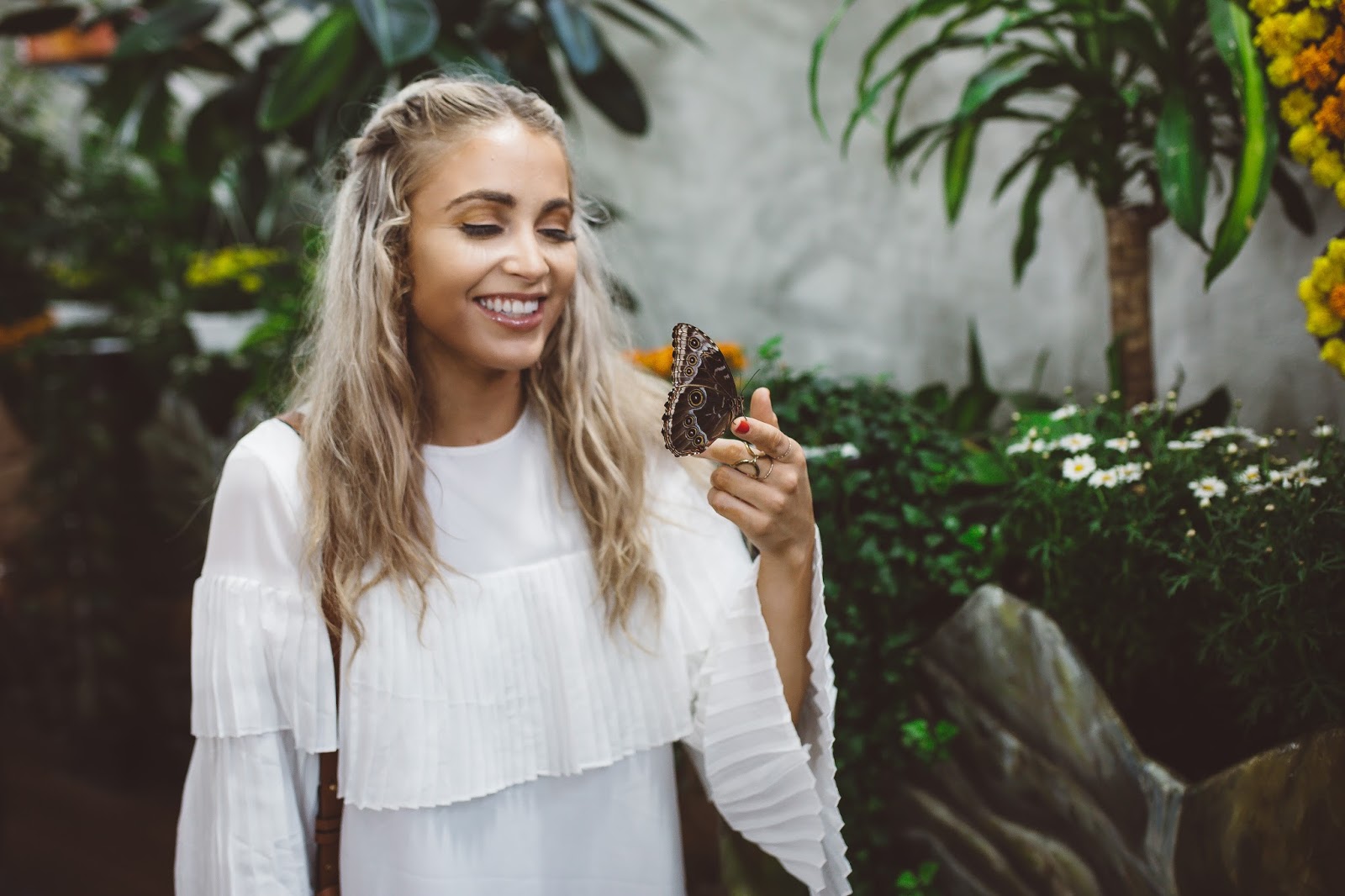 Good morning lovelies! It’s a beautiful day to be alive, not so much in the weather outside, but still it’s a new day and I am excited to be apart of it! Today I am taking it back to Dubai and sharing one of my favorite experiences we had while we were there. So, after going to Miracle Gardens with the millions and millions of flowers, our next stop was at a place called Butterfly Garden and let me tell you it was amazing! The building consists of a bunch of custom domes (9 to be exact) that you can wander through and there are thousands of butterflies that call each dome home. We had such a blast walking among among these beautiful insects and it was crazy because they would land pretty much wherever they wanted, including on me haha! They landed in my hair, on my dress, on my arms and hands, it was so cool! I don’t know why I loved this place so much, I mean I have seen butterflies my entire life, but something about the size and beauty of so many flying around in these domes just made it kind of magic. If you have the chance to go to Dubai and are going to Miracle Gardens, I suggest you pop by Butterfly Gardens as well! It was awesome! Happy Wednesday to all of you! I hope you have fantastic day!