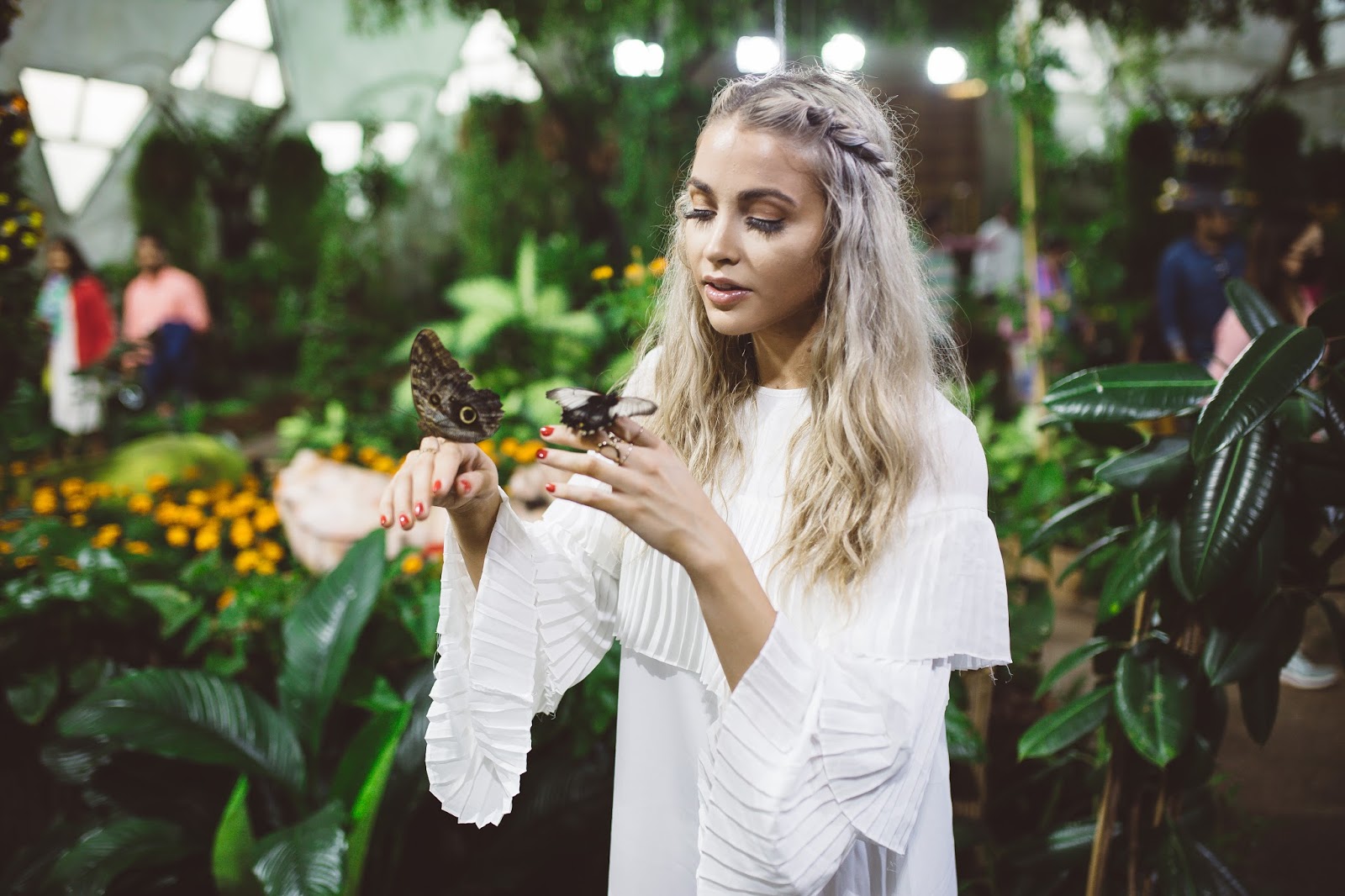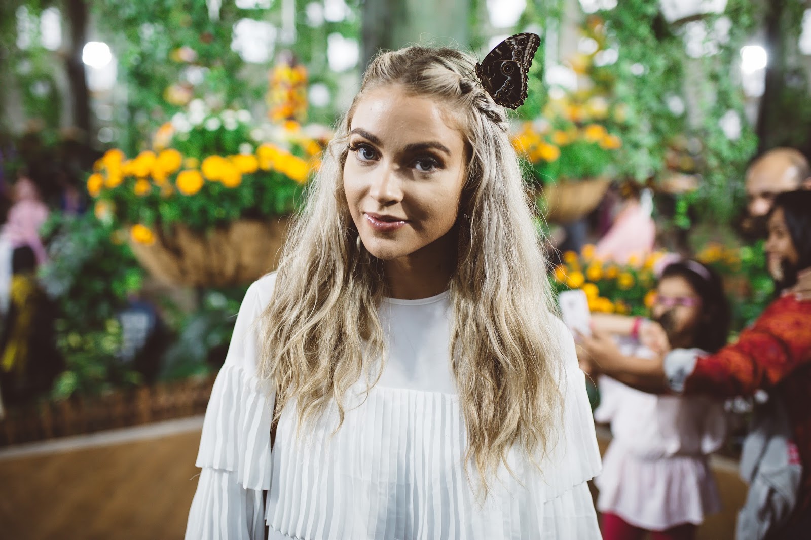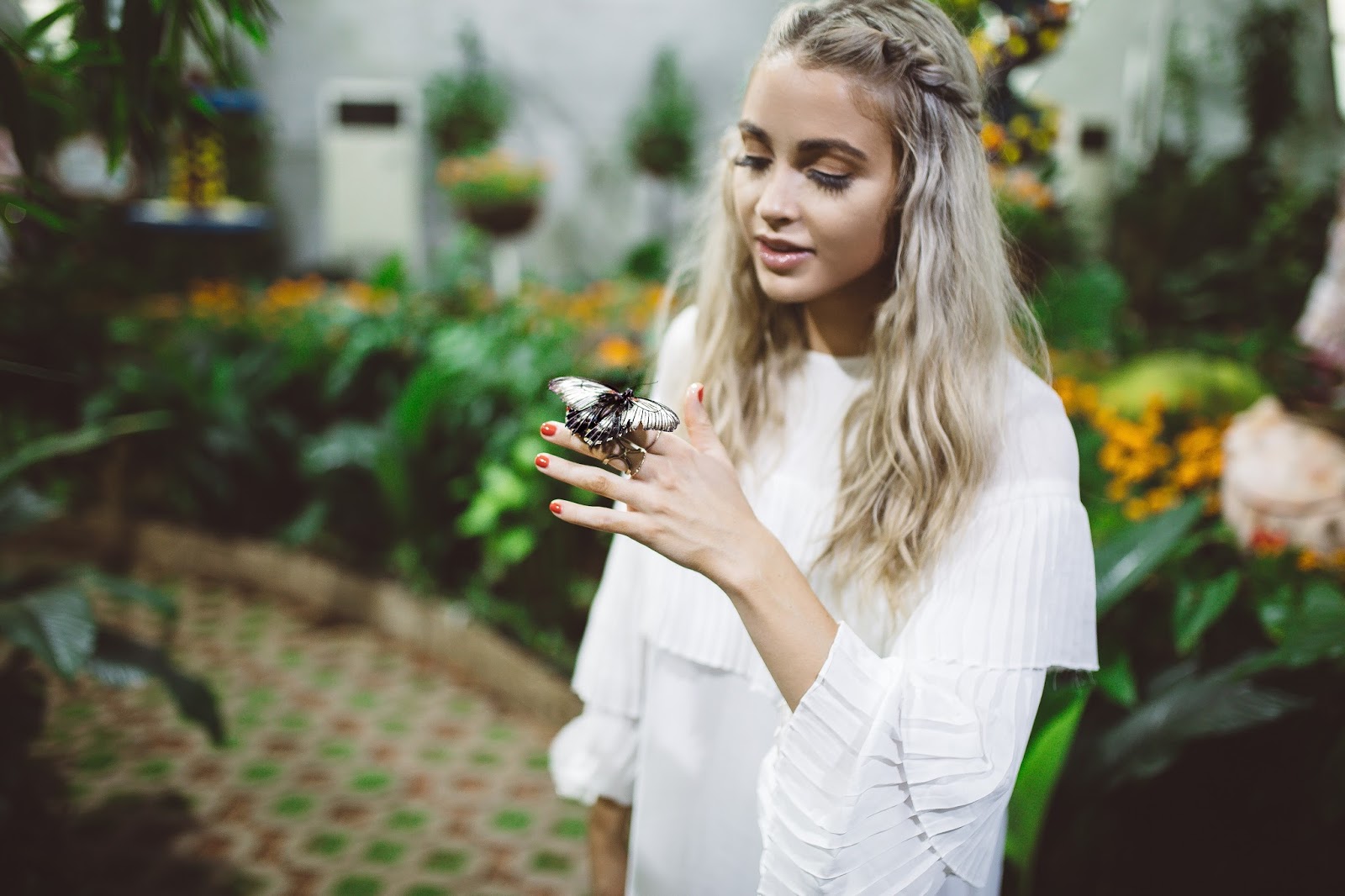 Good morning lovelies! It’s a beautiful day to be alive, not so much in the weather outside, but still it’s a new day and I am excited to be apart of it! Today I am taking it back to Dubai and sharing one of my favorite experiences we had while we were there. So, after going to Miracle Gardens with the millions and millions of flowers, our next stop was at a place called Butterfly Garden and let me tell you it was amazing! The building consists of a bunch of custom domes (9 to be exact) that you can wander through and there are thousands of butterflies that call each dome home. We had such a blast walking among among these beautiful insects and it was crazy because they would land pretty much wherever they wanted, including on me haha! They landed in my hair, on my dress, on my arms and hands, it was so cool! I don’t know why I loved this place so much, I mean I have seen butterflies my entire life, but something about the size and beauty of so many flying around in these domes just made it kind of magic. If you have the chance to go to Dubai and are going to Miracle Gardens, I suggest you pop by Butterfly Gardens as well! It was awesome! Happy Wednesday to all of you! I hope you have fantastic day!