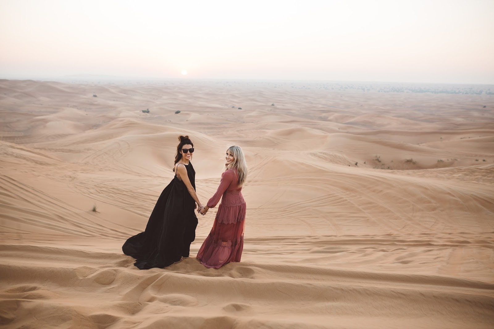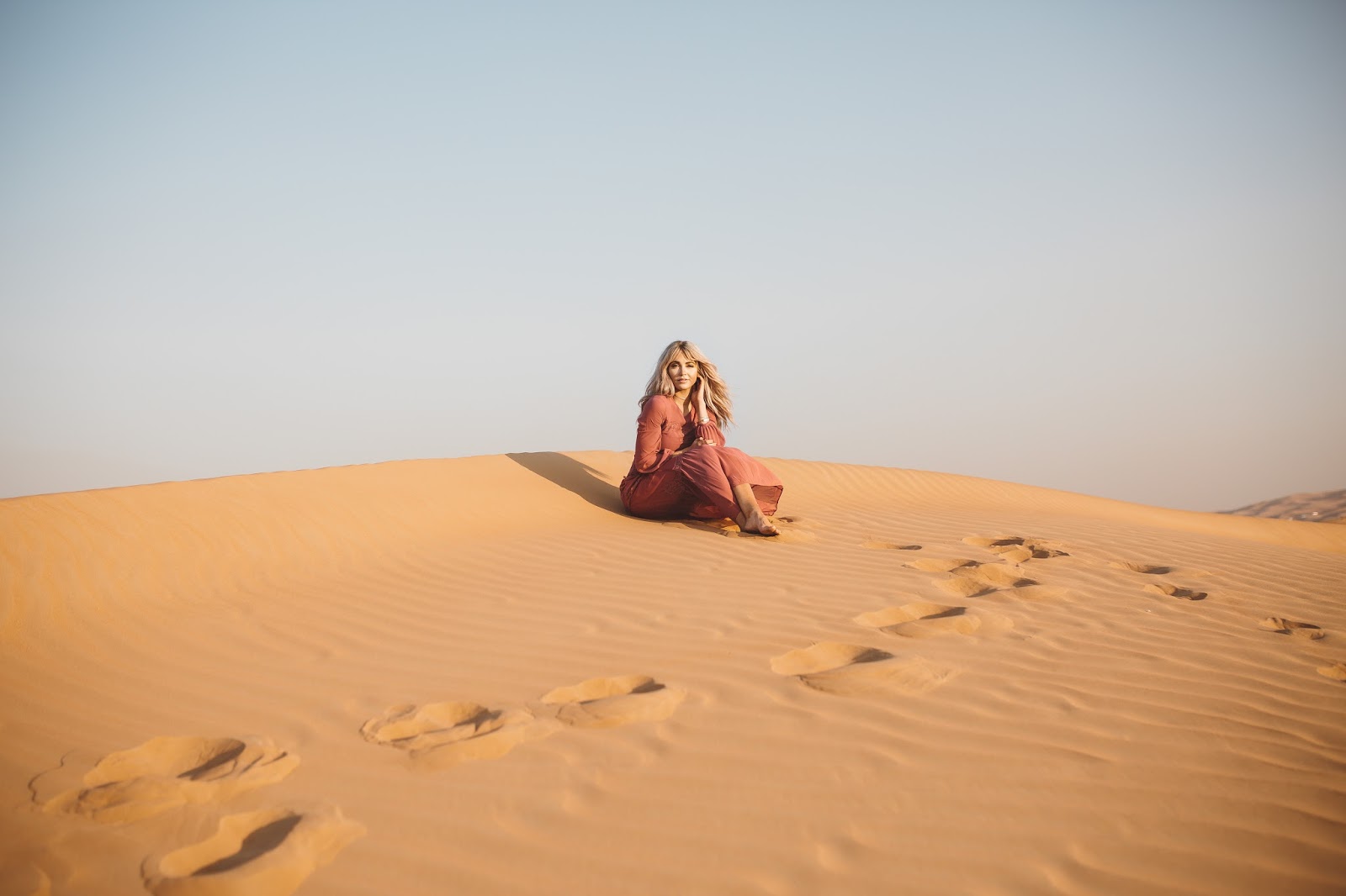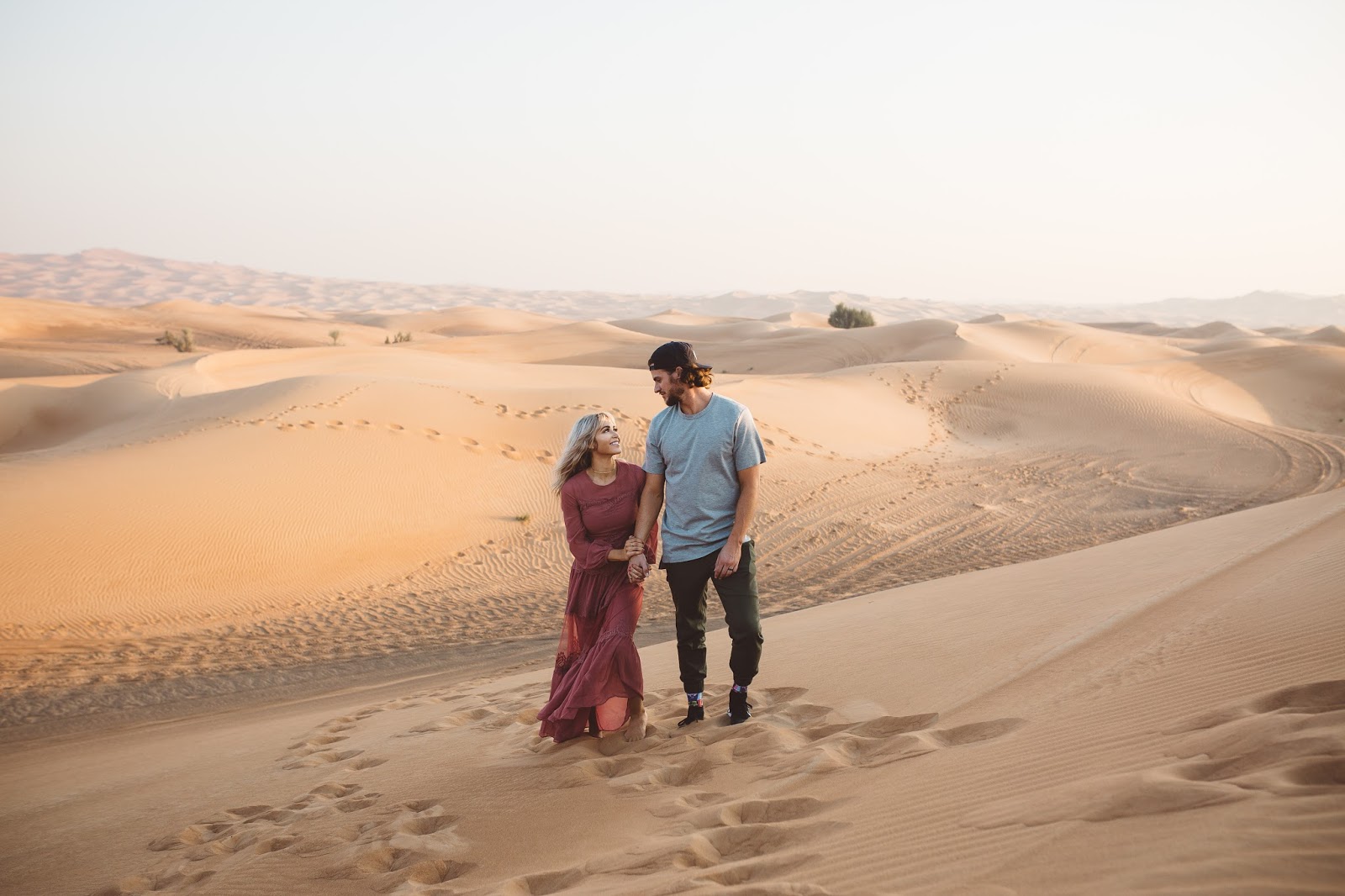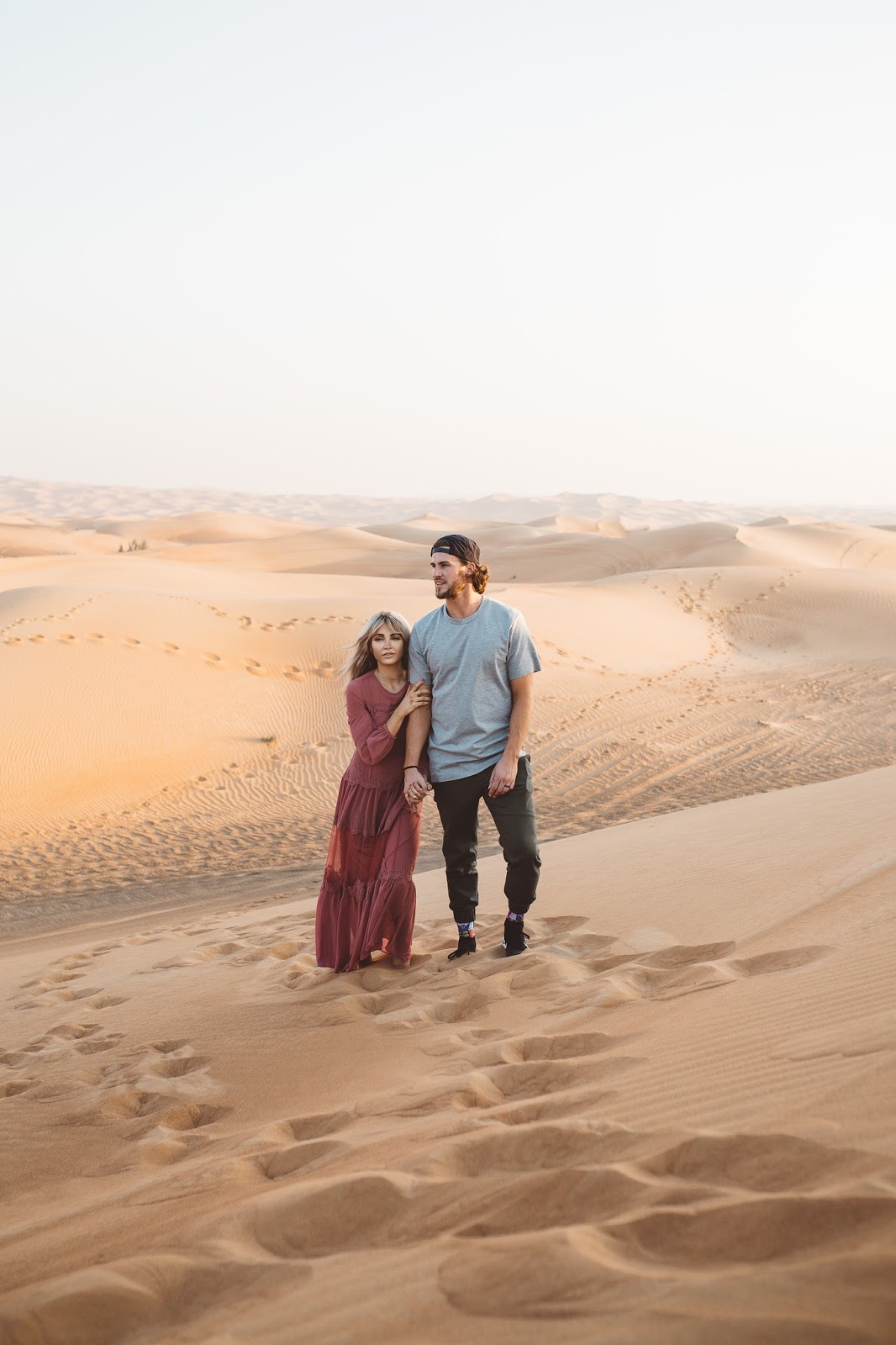 Good morning lovelies! It’s a new week and I am excited and ready for what this new day is going to bring and I hope this post finds you doing well! Today’s post is taking it back to probably some of my most favorite pictures that Brod has ever taken of us (minus any of the ones with our dudes in them of course). These were taken out in the desert of Dubai which was pretty incredible, and I kind of still can’t believe we went there as I look at these pictures. We took a Landcruiser over what seemed like hundreds of hills and dunes and found this spot to get out and wander the desert that seemed to go on forever and ever. It was amazing and I just kept thinking the whole time, “I am in the Dubai Desert wandering around and exploring…like in what world did I ever think I would be doing that?” Haha seriously it seems like a blur now. Do you guys ever feel that way? Like you go on this amazing trip or travel to certain places and then once you get back home, it almost doesn’t feel real?! Thank goodness for pictures and for being able to chat about it with Brod, because as we talk about it and as I look back at the pictures, the memories of being there and experiencing it become more real and tangible.