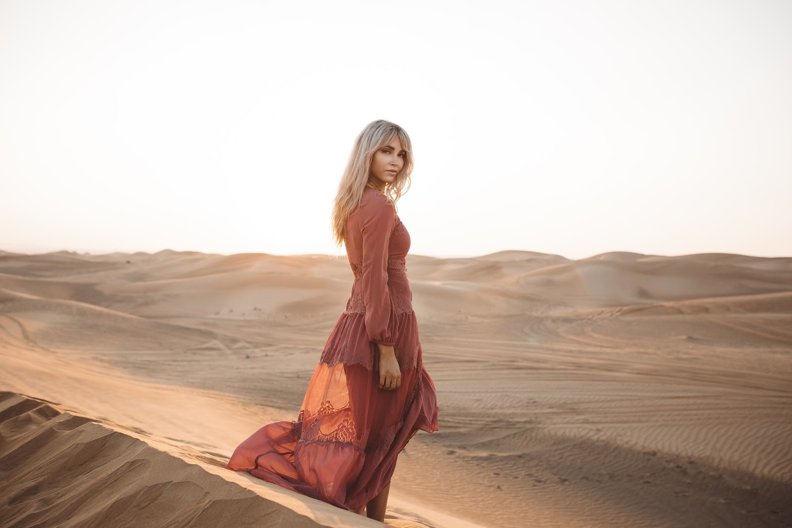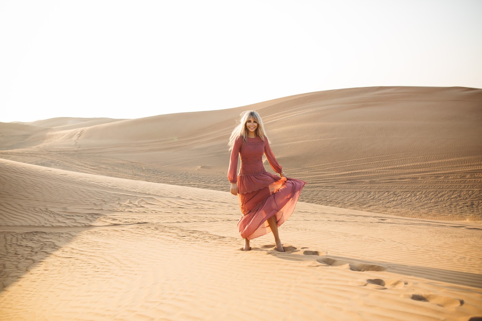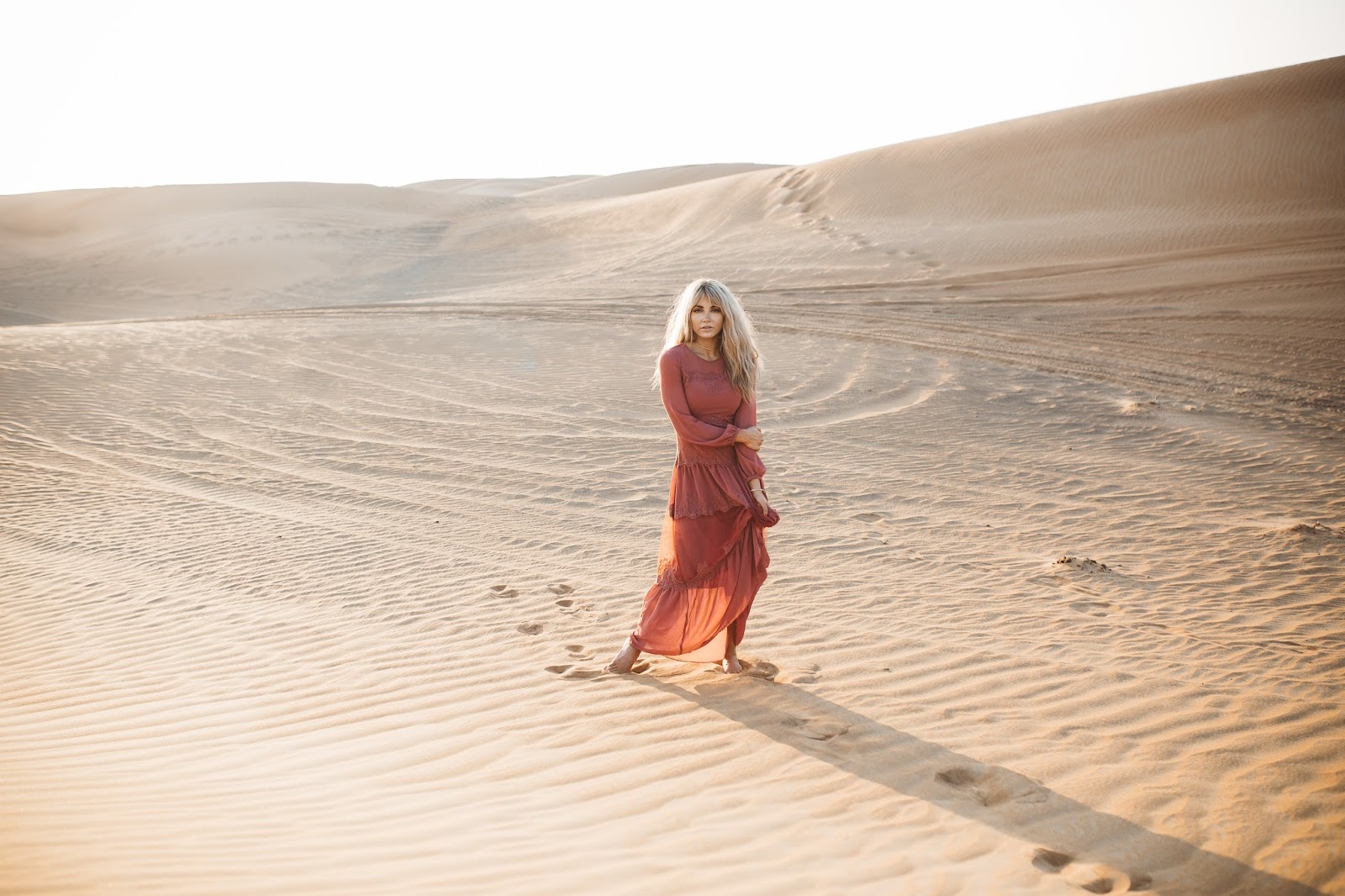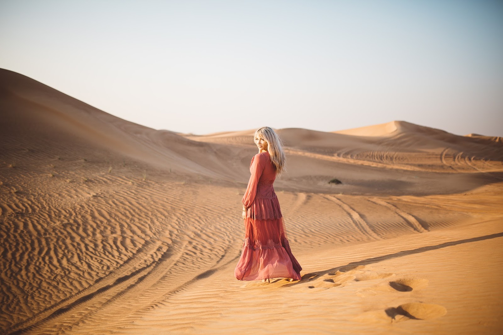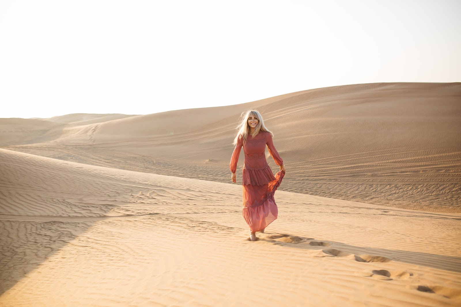 Good morning lovelies! It’s a new week and I am excited and ready for what this new day is going to bring and I hope this post finds you doing well! Today’s post is taking it back to probably some of my most favorite pictures that Brod has ever taken of us (minus any of the ones with our dudes in them of course). These were taken out in the desert of Dubai which was pretty incredible, and I kind of still can’t believe we went there as I look at these pictures. We took a Landcruiser over what seemed like hundreds of hills and dunes and found this spot to get out and wander the desert that seemed to go on forever and ever. It was amazing and I just kept thinking the whole time, “I am in the Dubai Desert wandering around and exploring…like in what world did I ever think I would be doing that?” Haha seriously it seems like a blur now. Do you guys ever feel that way? Like you go on this amazing trip or travel to certain places and then once you get back home, it almost doesn’t feel real?! Thank goodness for pictures and for being able to chat about it with Brod, because as we talk about it and as I look back at the pictures, the memories of being there and experiencing it become more real and tangible.
