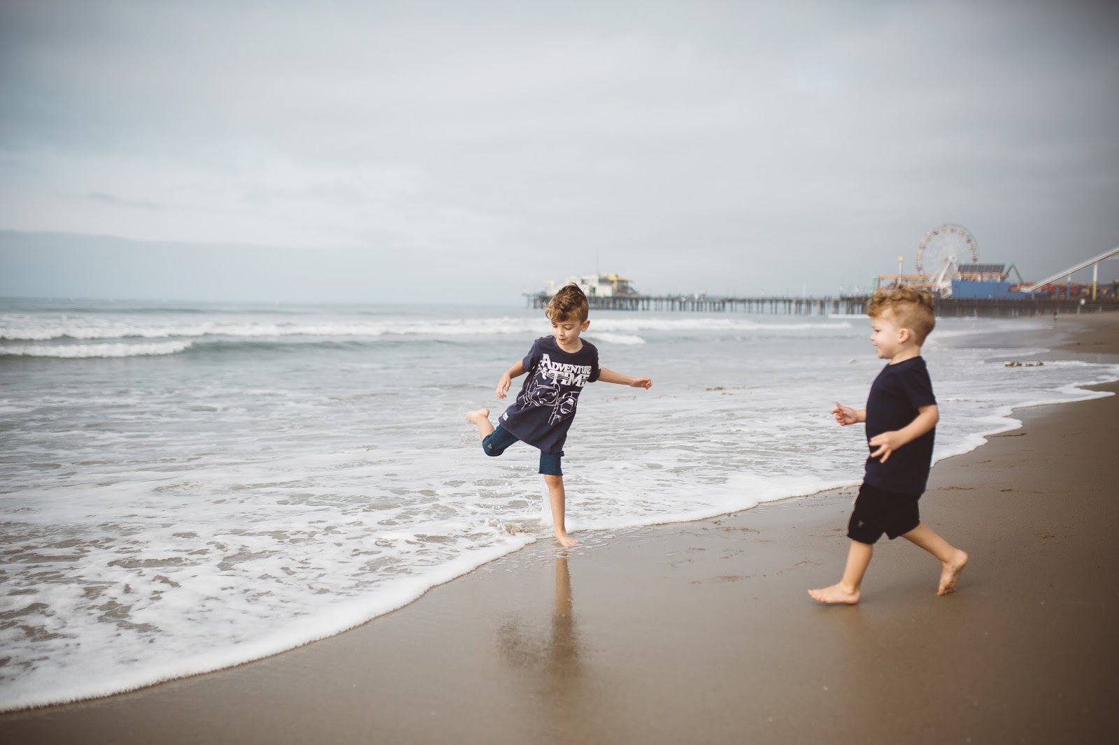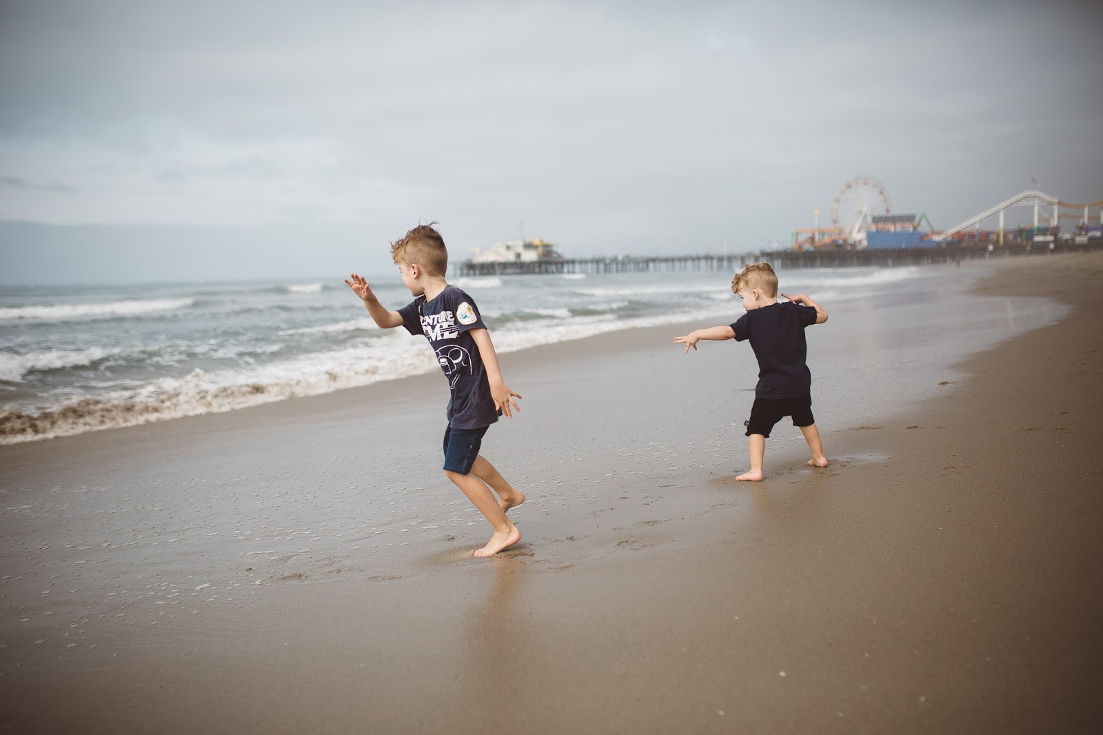 Anyhow, these pics are from one of our days hanging out at Santa Monica beach. We chased the waves and wandered around in the sand and it was a good day. I sometimes wonder if I lived near a beach. like walking distance, if I could ever get that mad or down about something?! I don’t know if I could because the feeling I get when I am on the beach near the ocean is one of such peace and calm, and I get to this level of happiness that comes from just being there. Does anybody else feel this way about the ocean and beach? Brod and I have talked about it before and we decided that if we were ever to move, it would have to be near a beach somewhere. If we were going to be away from our families and those we love most, the beach and ocean would have to be part of the equation. As I look at these pictures I can’t believe how old my little guys are getting. Time is the most deceiving thing, it passes so quietly and quickly that you forget it’s happening. I love these dudes of mine so much and I am so thankful for days like this one, days we can be at the beach together and chase waves together.