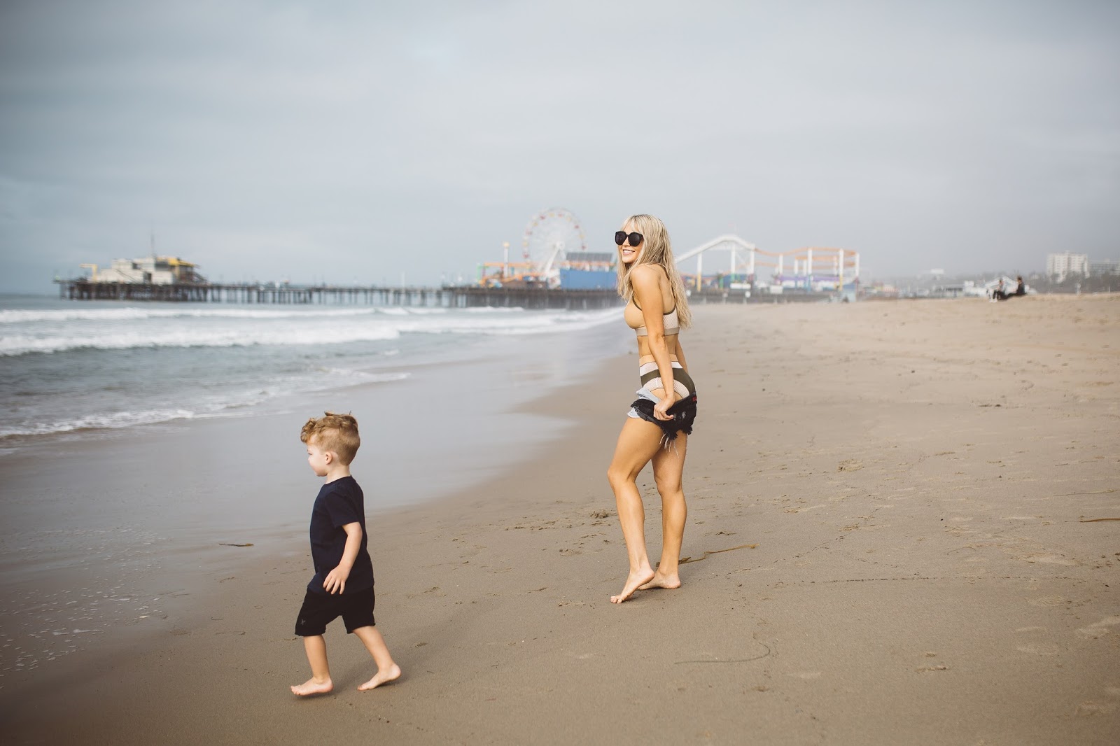 Hey guys! Sorry I have been running around all morning and kind of forgot to get this post up, and I can’t forget to get this post up because I love this swimsuit too much to not share it with all of you! This is from one of our warmer days out in LA and we took full advantage of some time on Santa Monica Beach. The boys pretended to be ninja turtles, Hanes was Rafa and Arrow was Donatello that were fighting the waves of “foot soldier bad guys” haha! Seriously, when are they not in either ninja turtle or avenger mode?! Brod and I crack up because we wonder when this stage of superheros and ninjas will end, but it might not be for a long while at the rate we are going!