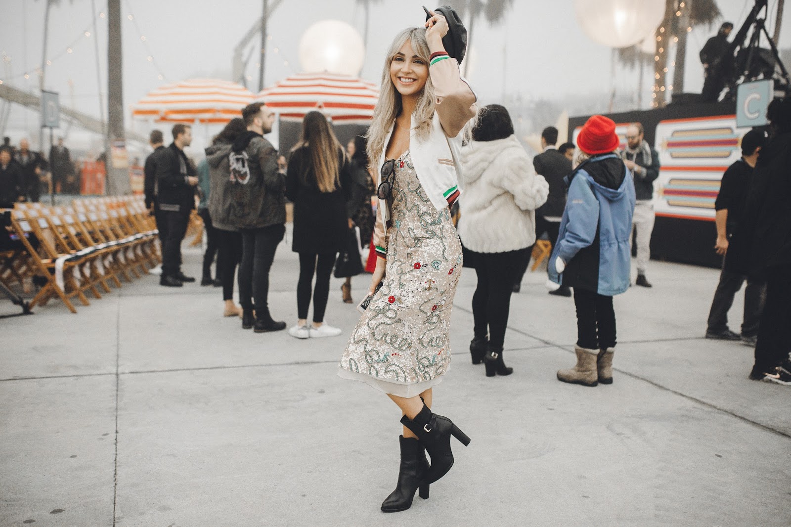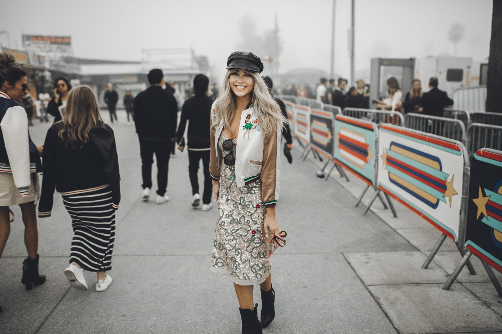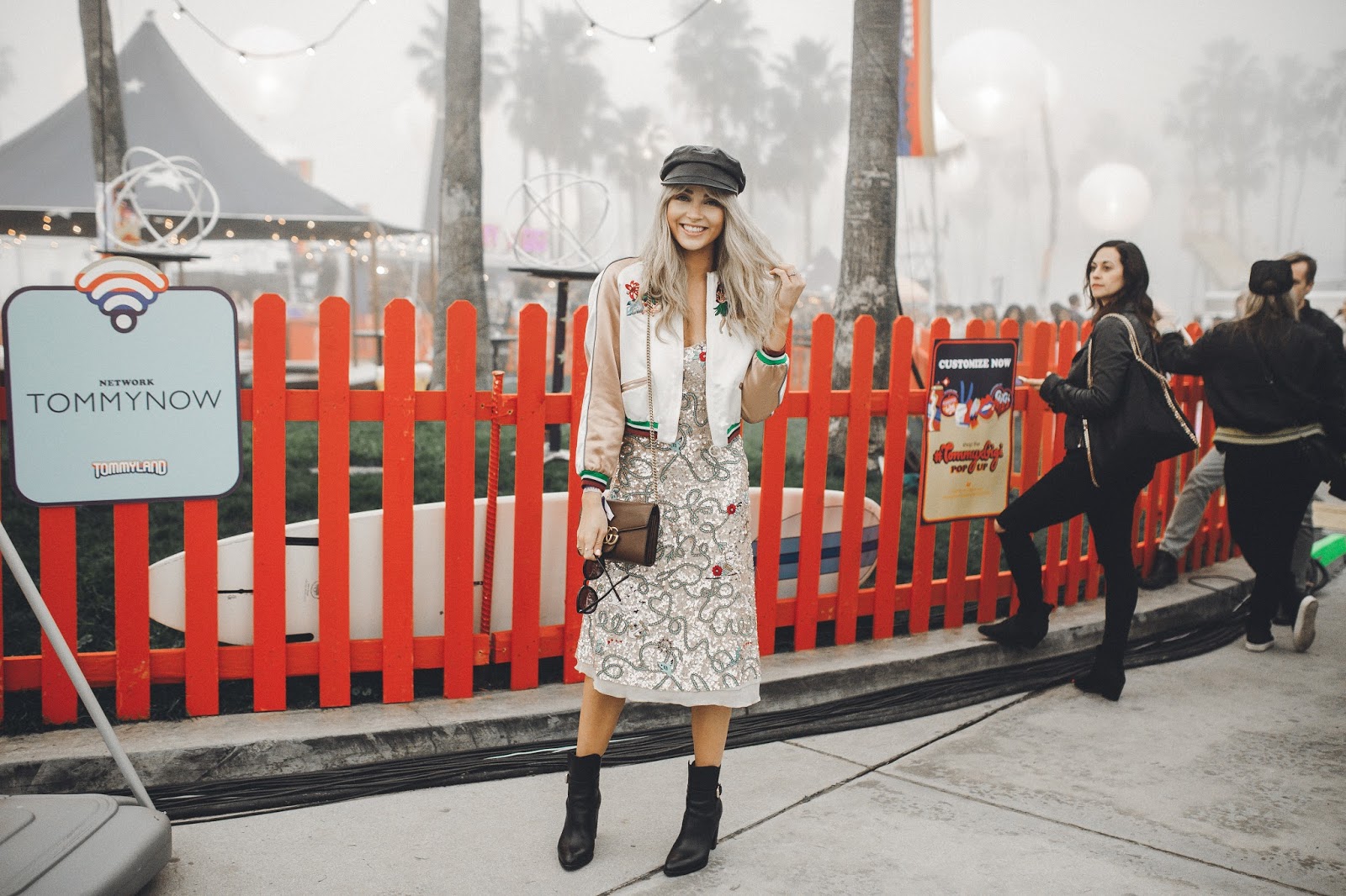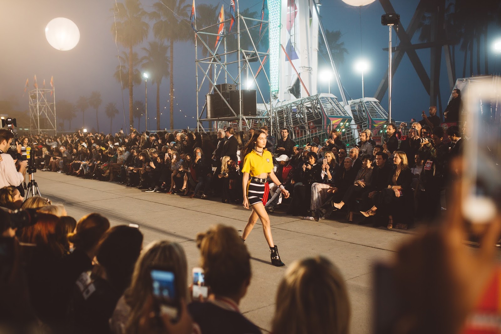 The show took place on Venice Beach in California, and when I say it took place on Venice Beach, I mean that Tommy Hilfiger literally took over Venice Beach and turned it into “Tommy Land.” It was like being at an amazing and giant carnival. Food trucks, fire throwers, treat booths, t-shirt booths, ferris wheel, and enormous balloons filled what once was Venice Beach. It was so rad! And of course there was a super chill and cool runway space where the show actually took place. Brod got to come backstage and also attend the show to capture some of the amazing moments we had there. This is my favorite show of the year, not only because of the atmosphere and attendees, but also the line. Tommy X Gigi collaborated to create a wonderful, classy, and fun collection once again and I was blown away by the looks that came down the runway! I also adored my look for the show, which was Tommy Hilfiger and had me smiling as I wore it all night long.The jacket, dress, and cap all meshed together in a such a beautiful way and I felt so confident and happy to be wearing it. It was a look that I was so excited to be wearing and rock at the show!