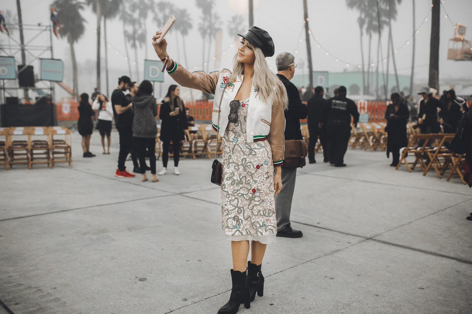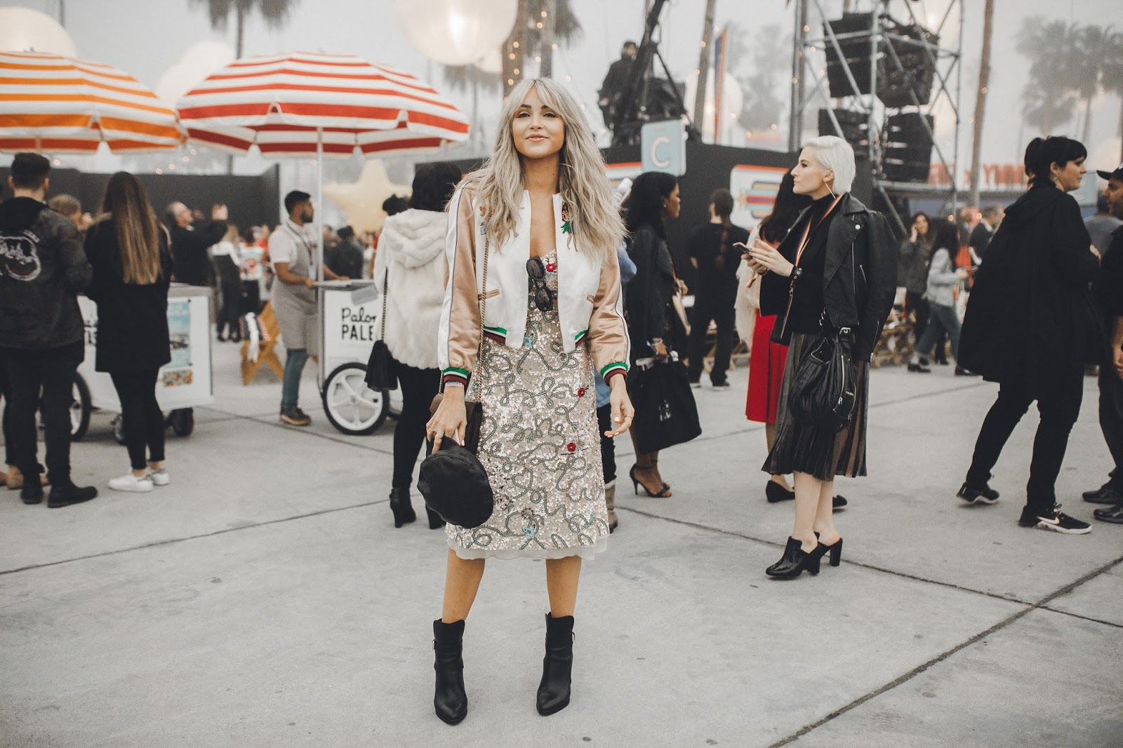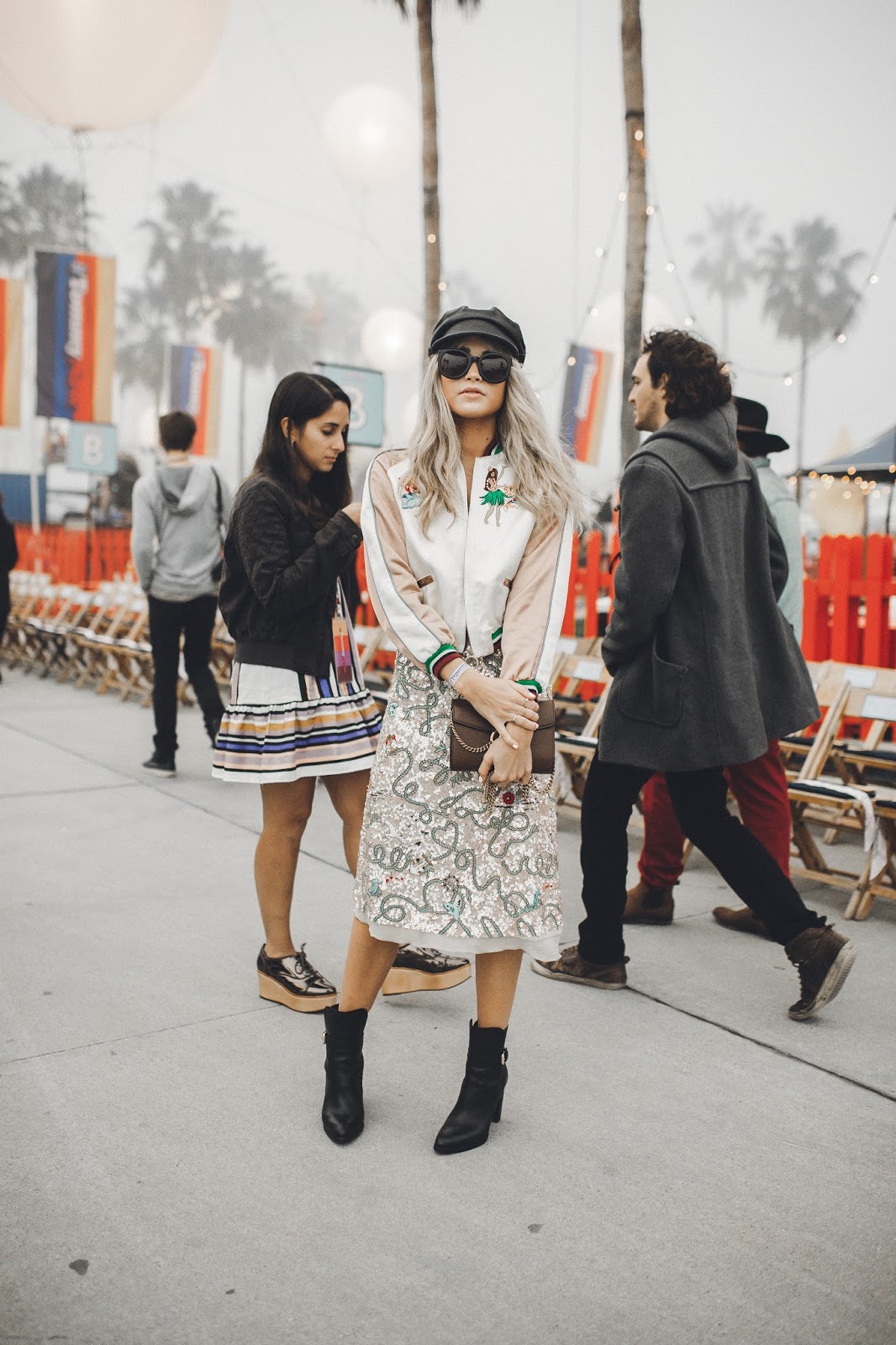 The show took place on Venice Beach in California, and when I say it took place on Venice Beach, I mean that Tommy Hilfiger literally took over Venice Beach and turned it into “Tommy Land.” It was like being at an amazing and giant carnival. Food trucks, fire throwers, treat booths, t-shirt booths, ferris wheel, and enormous balloons filled what once was Venice Beach. It was so rad! And of course there was a super chill and cool runway space where the show actually took place. Brod got to come backstage and also attend the show to capture some of the amazing moments we had there. This is my favorite show of the year, not only because of the atmosphere and attendees, but also the line. Tommy X Gigi collaborated to create a wonderful, classy, and fun collection once again and I was blown away by the looks that came down the runway! I also adored my look for the show, which was Tommy Hilfiger and had me smiling as I wore it all night long.The jacket, dress, and cap all meshed together in a such a beautiful way and I felt so confident and happy to be wearing it. It was a look that I was so excited to be wearing and rock at the show!