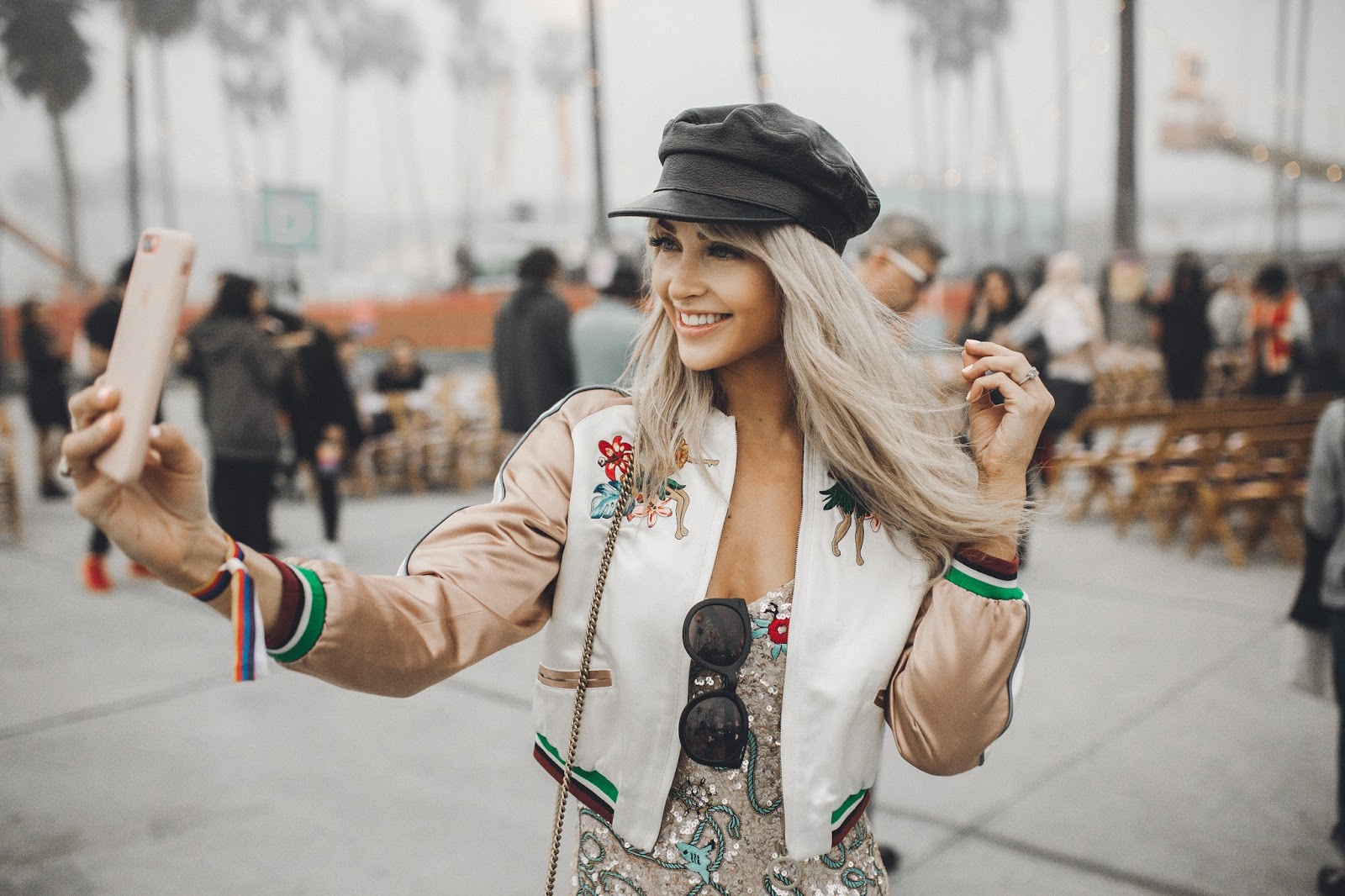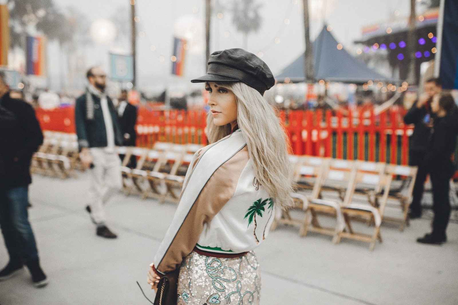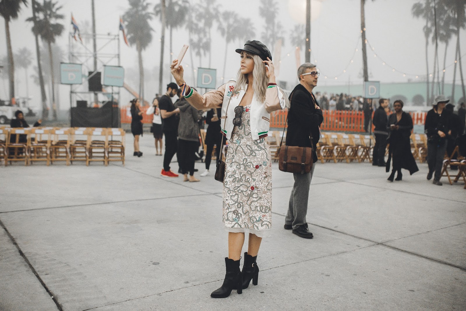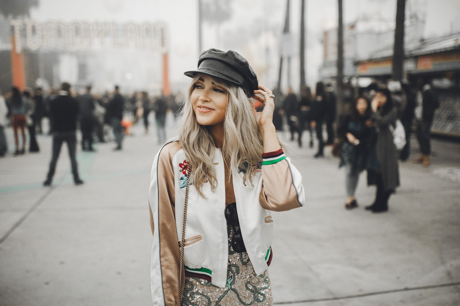 The show took place on Venice Beach in California, and when I say it took place on Venice Beach, I mean that Tommy Hilfiger literally took over Venice Beach and turned it into “Tommy Land.” It was like being at an amazing and giant carnival. Food trucks, fire throwers, treat booths, t-shirt booths, ferris wheel, and enormous balloons filled what once was Venice Beach. It was so rad! And of course there was a super chill and cool runway space where the show actually took place. Brod got to come backstage and also attend the show to capture some of the amazing moments we had there. This is my favorite show of the year, not only because of the atmosphere and attendees, but also the line. Tommy X Gigi collaborated to create a wonderful, classy, and fun collection once again and I was blown away by the looks that came down the runway! I also adored my look for the show, which was Tommy Hilfiger and had me smiling as I wore it all night long.The jacket, dress, and cap all meshed together in a such a beautiful way and I felt so confident and happy to be wearing it. It was a look that I was so excited to be wearing and rock at the show!