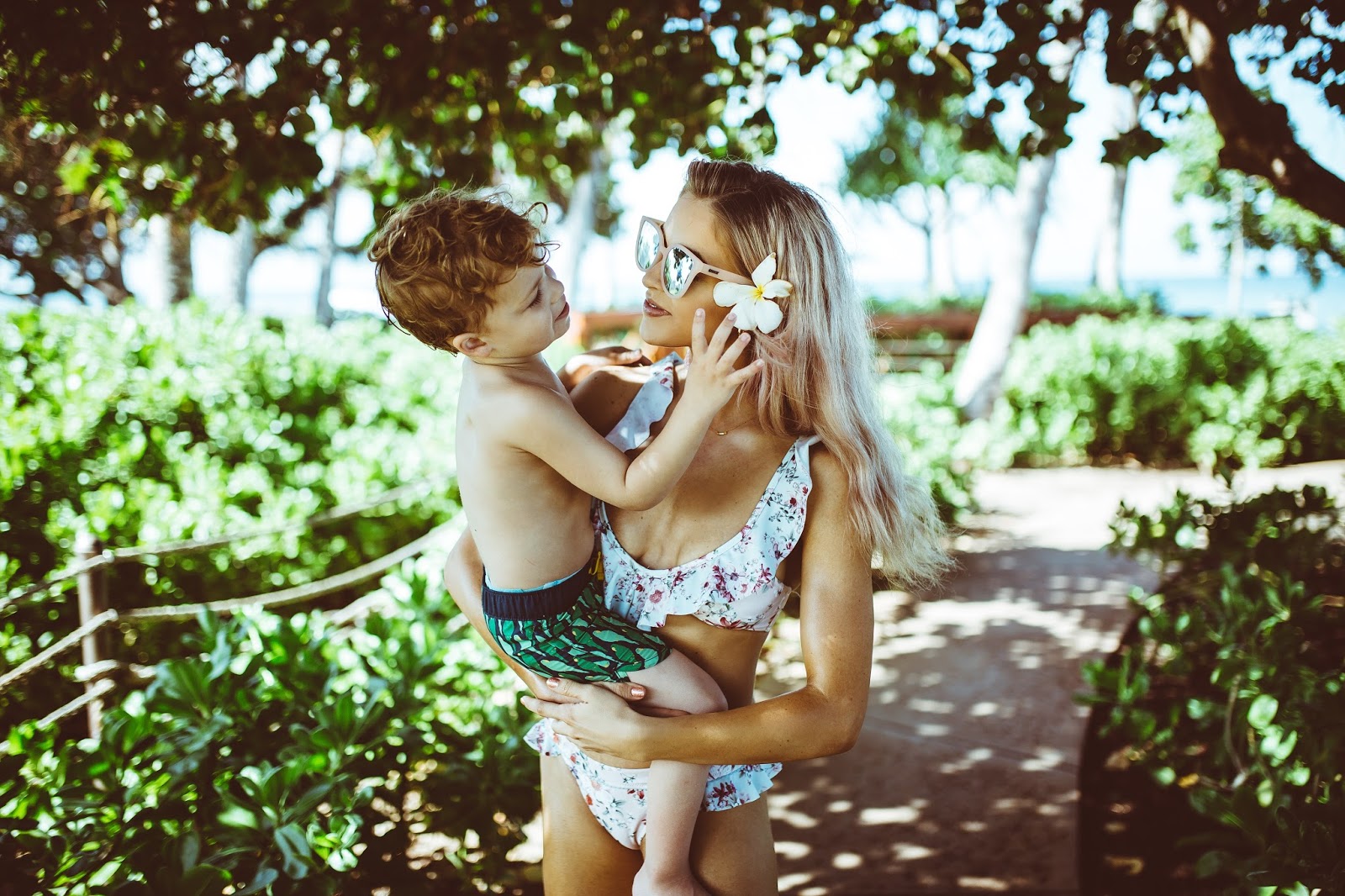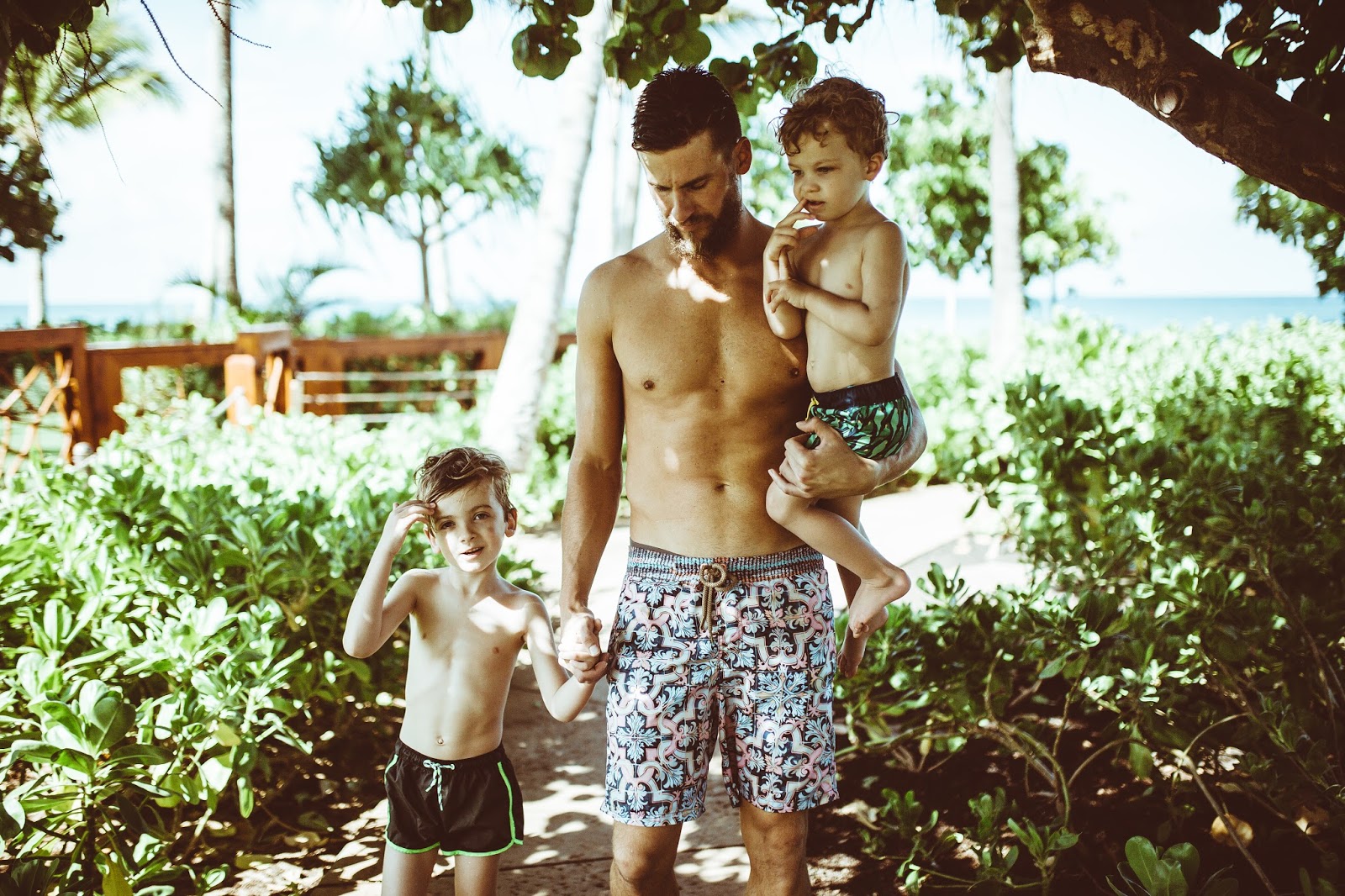I think Hanes had his goggles on 90% of the trip, and Arrow wanted to play fight Brody and go through each of the ninja turtle bad guys over and over and over again. It was so nice to just chill in the sunshine and play, like sincerely play with the boys. I think those are some of my favorite memories both on trips like Oahu, and here at home, spending time with them in their world and simply playing whatever they want to play. Allowing them to teach us with their curiosity, purity, and innocence and love of the world. We also took some time to wander the grounds at Four Seasons and they were so ridiculously beautiful. Flowers everywhere, paths leading to ocean views, and palm trees for days. Any of you looking to stay on the west side of Oahu, I would highly recommend Four Seasons Oahu, the service was tremendous and the resort is fantastic in every way.