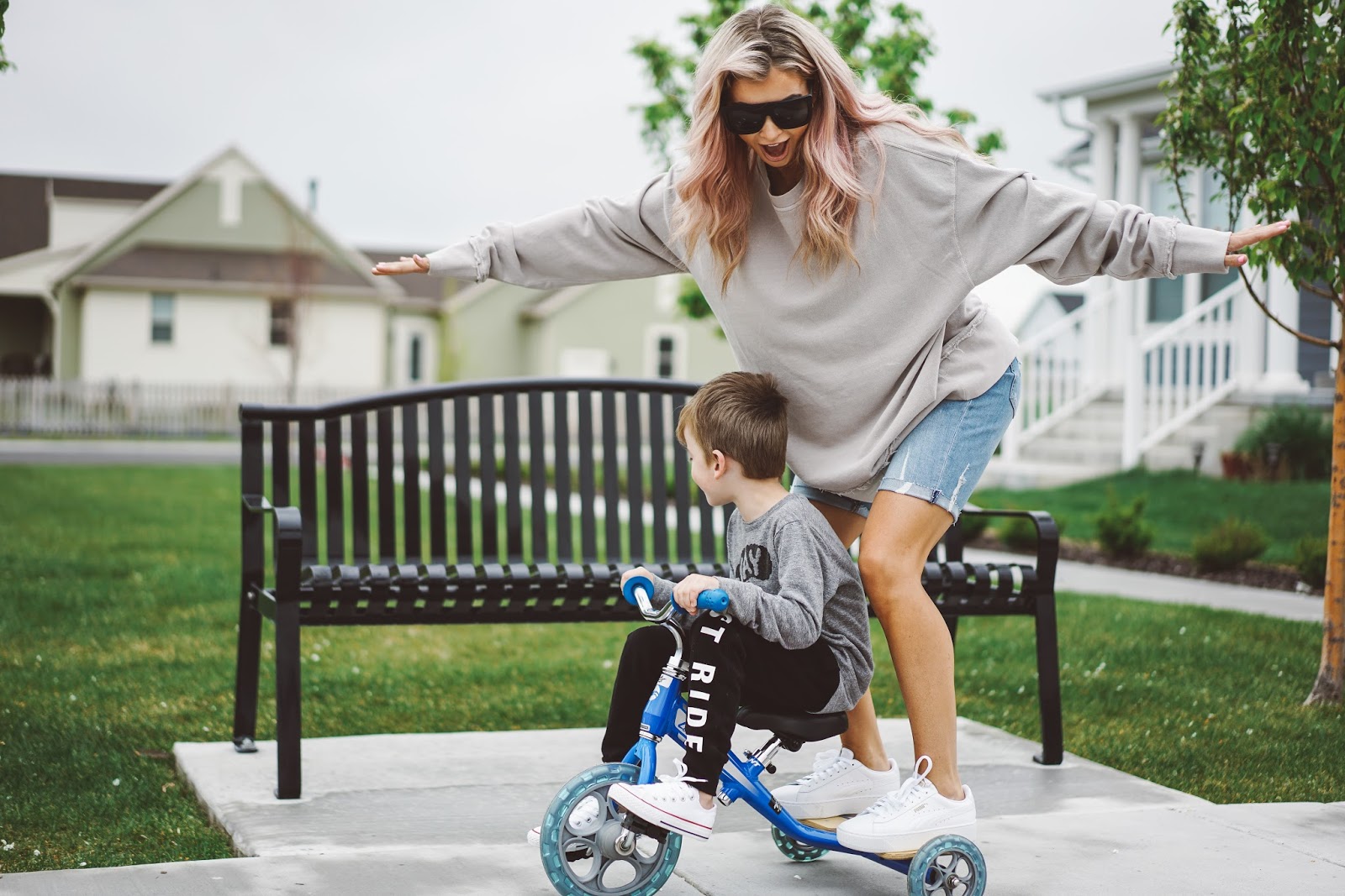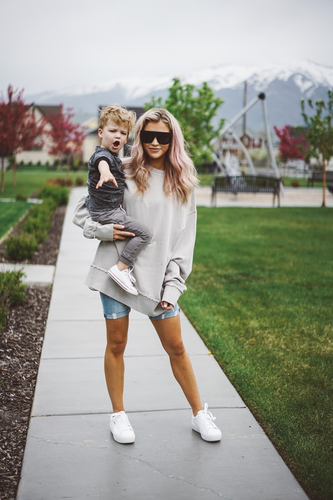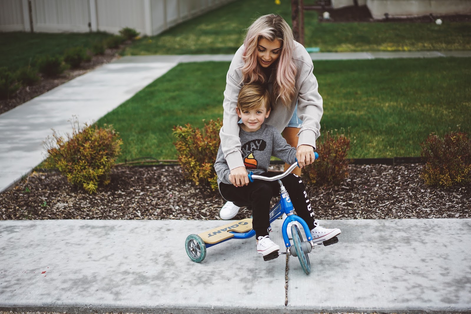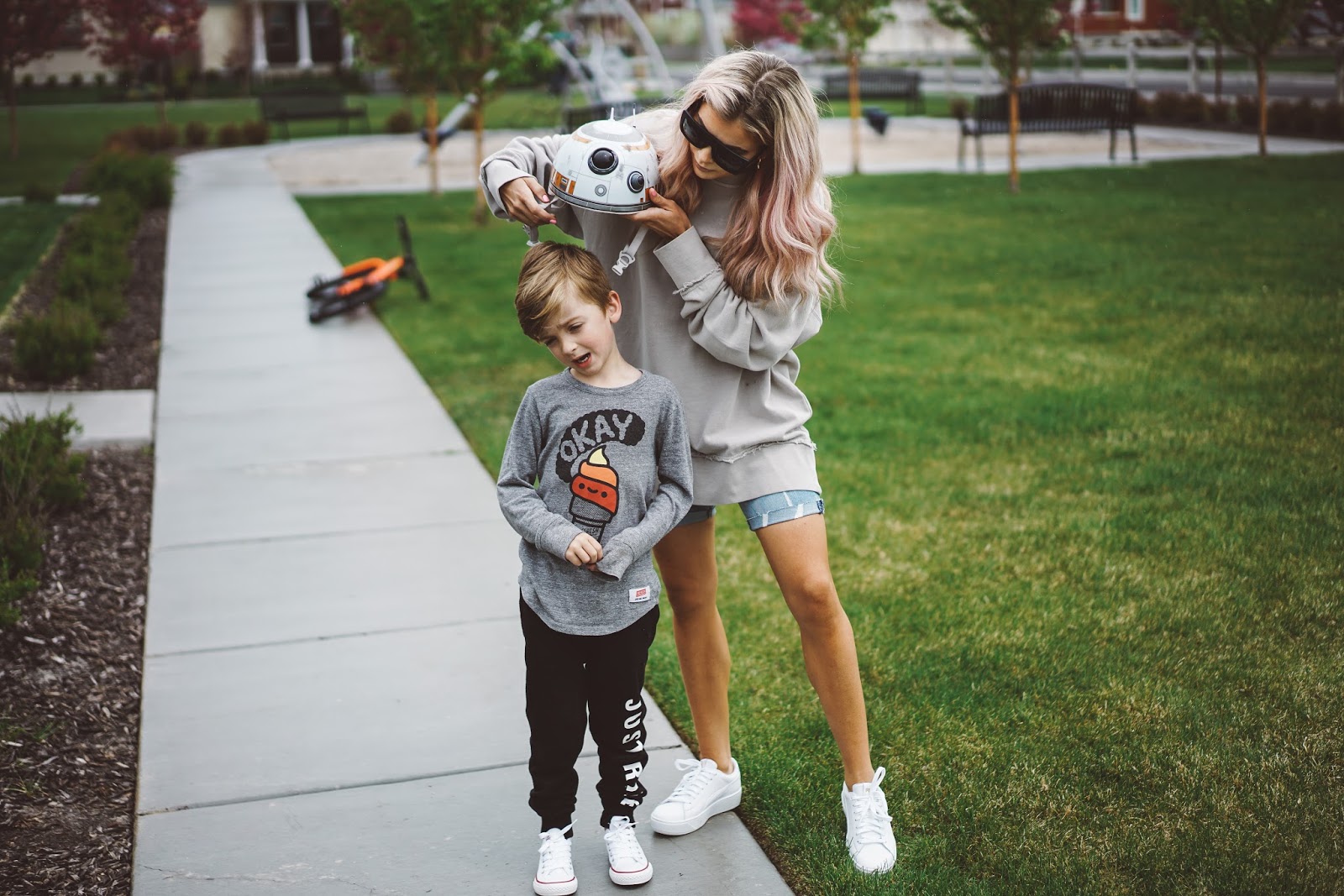 Hey guys!! It’s a beautiful day, Spring is here, the sun is shining, and I am loving every minute of it! I hope this post finds you all happy and well, and enjoying your day. So, one of the things I love the most about being a mom is being able to be part of my little guys learning and trying new things! Brod and I are all about encouraging our dudes to get out of their comfort zones and learn how to do new things and stretch themselves, even if it seems scary or makes them uncomfortable at first. We were both raised that way and as we look back it helped us to grow and stretch ourselves and more fully experience life! One of the new adventures that is going on for Hanes right now is switching from a bike with training wheels to riding a two-wheeler all on his own (with no training wheels). This is an experience I am sure many of you have been through, both when you were younger learning how to ride a bike for yourself, and as parents teaching your kids. Oh man, we are having quite the bike lesson over here haha! I love watching how Hanes takes on this new challenge, and though we have got a ways to go (the whole balancing the bike on his own is giving him some struggles), it is so cool to how excited he gets when he peddles by himself even if it is only for a few feet. There have also been some moments of fear for him as Brod or I let go of his seat and watch him ride on his own for a little bit and then end in a crash onto the grass haha!