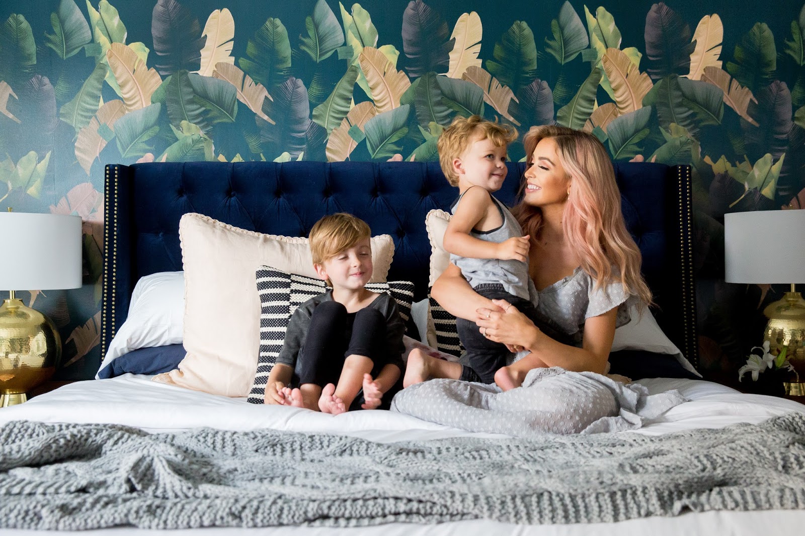 Along with the wallpaper bringing transformation to our room, we also revamped and changed up the look of our bedroom with the help of Lulu & Georgia. I love the way it turned out and I get so giddy every time I walk in our bedroom now. I have linked the other pieces such as our bed and dressers below so that you can check them out as well. The tropical floral print and moody colors has given our bedroom such a different vibe than it had before. I have now experienced and learned that wallpaper can and definitely does transform a room!