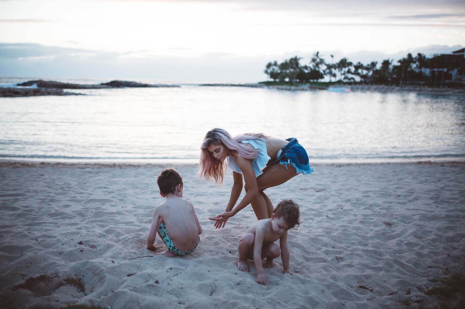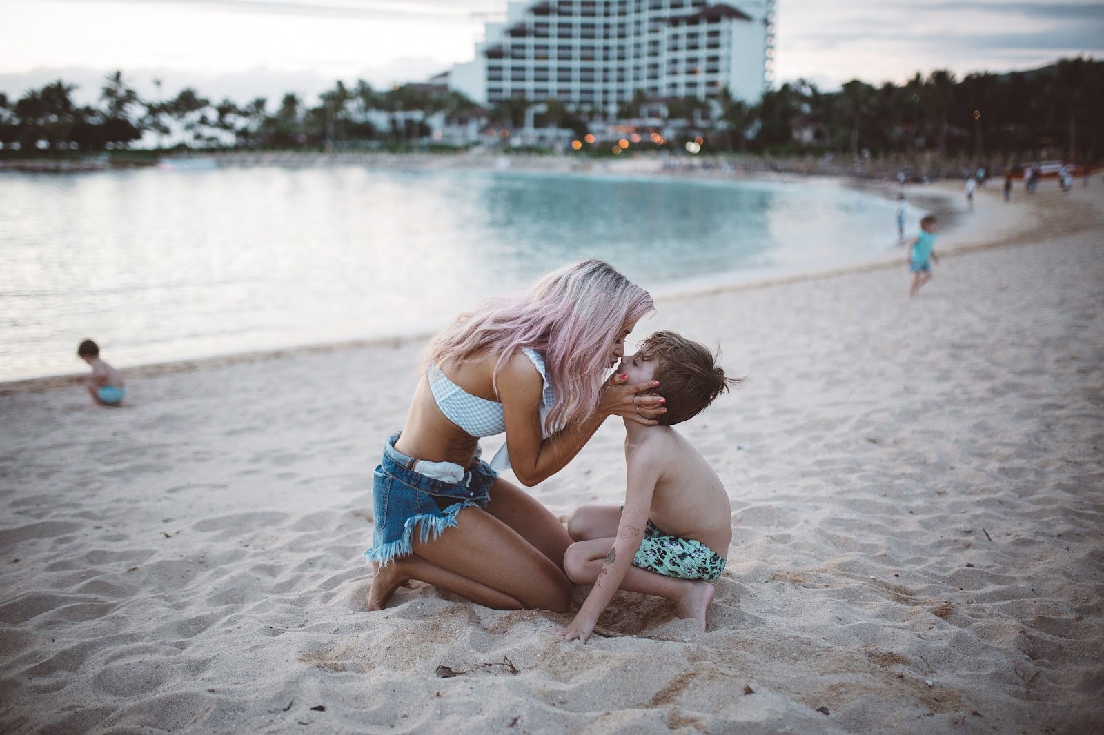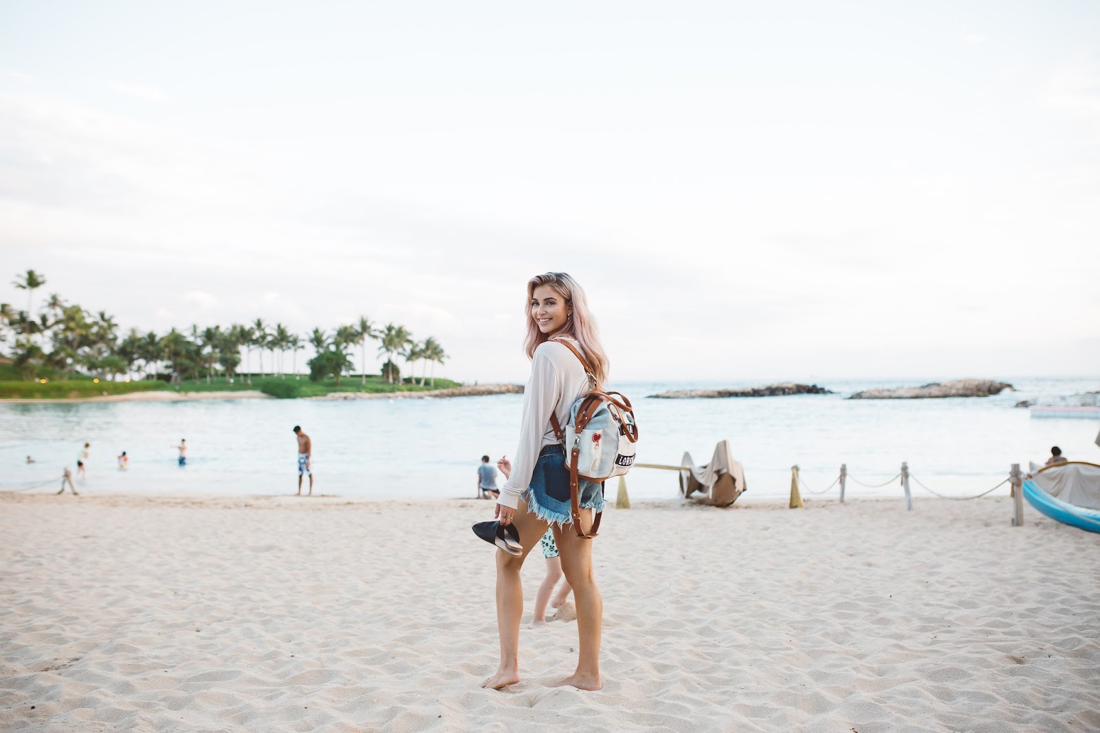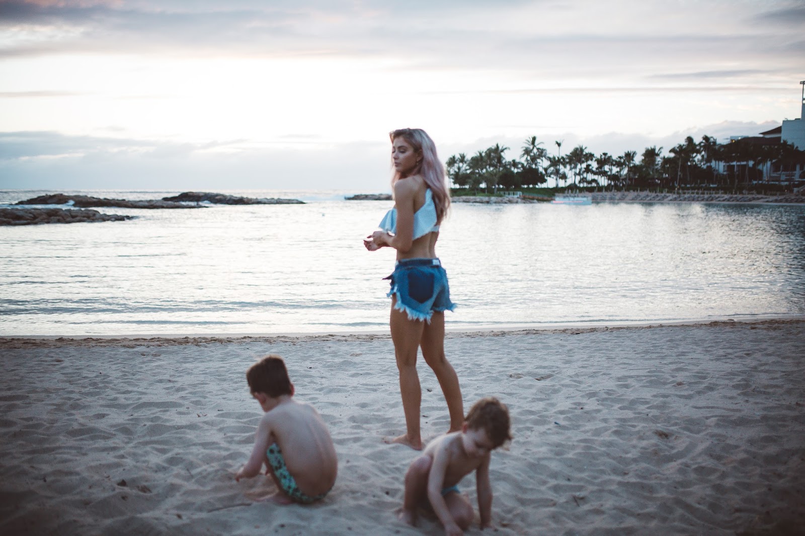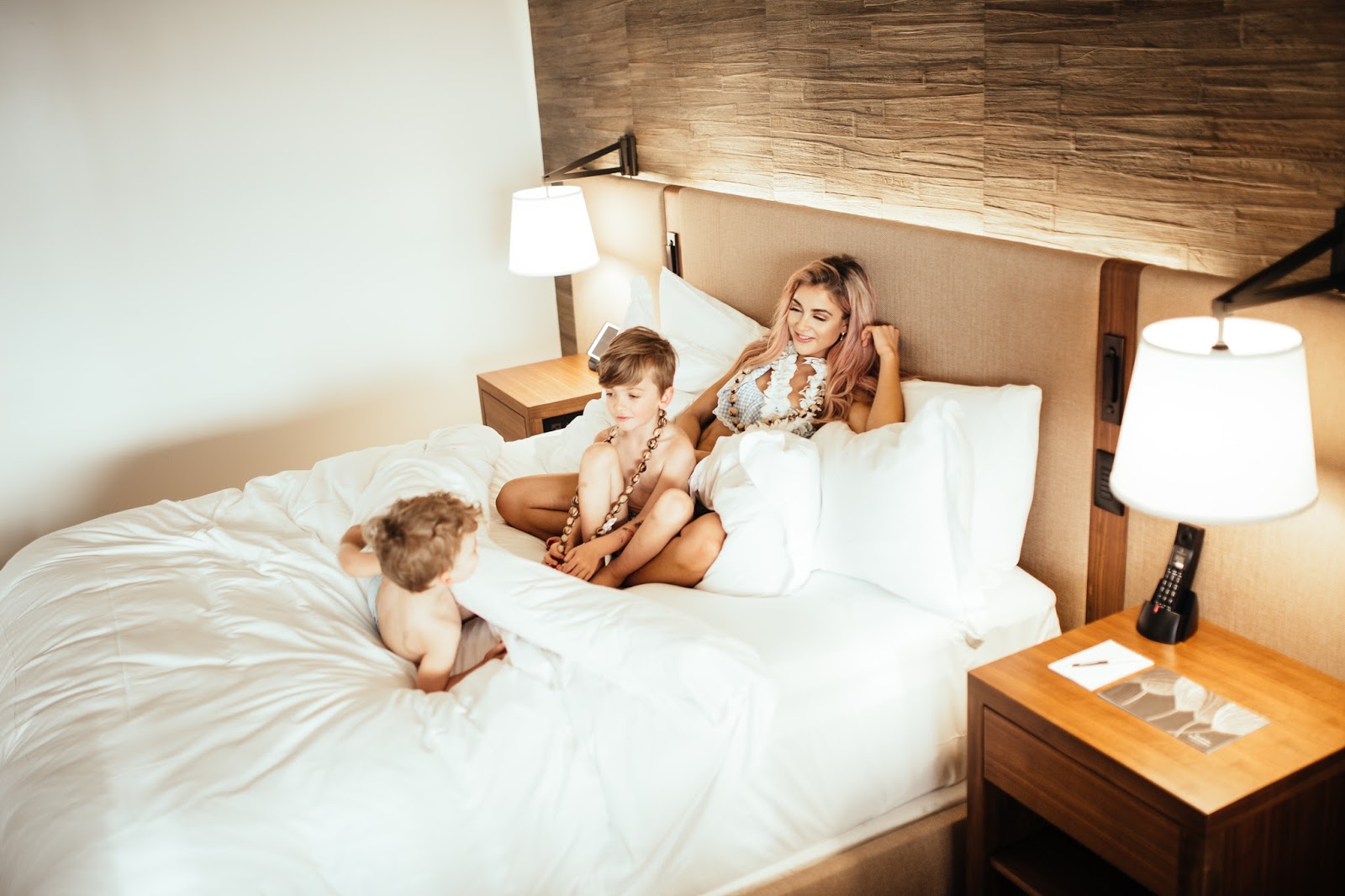We are staying at the Four Seasons O’ahu at Ko Olina and this place is absolutely dreamy. I will be sharing more details about the resort and our experience here at a later time, but let me preface that post by saying that we love it here, and look forward to coming back already!! Day one consisted of fighting through the travel fatigue and dragging our bodies to get outside and enjoy the water! True story, right after we got in our hotel room (which is amazing by the way) we hurry and threw on our swimsuits to head down to the pool and beach. Well, after munching some snacks and taking longer than anticipated to get ready to swim, next thing we know we are all on the comfy bed and are pretty much laying and laughing half-asleep/half-delirious and exhausted from the day of travel haha! We pushed through though and got our butts out of the bed and down to the pool and then the beach, and man oh man were the boys happy we did! Swimming is definitely one of Hanes and Arrows’ favorite activities to do while we are away from home and once we hit the pool, their energy level seemed to perk right back up. After an hour or so at the pool, we walked over to the lagoon they have here at Four Seasons, and they boys played in the sand and ran from the waves as the sun began to set. It was a fantastic start to our trip and kicked off our experience here in Oahu in such a good way! As mentioned above, I will be sharing more details regarding our experience here at the resort, as well as our island adventures and exploring so make sure to check the blog in the upcoming days! Big thanks for all of you that sent suggestions our way already, we have tried some of the beaches and eating spots already and loved them! Follow along here and IG and our other platforms as well for some more aloha adventures! Happy Tuesday and I love you all!!