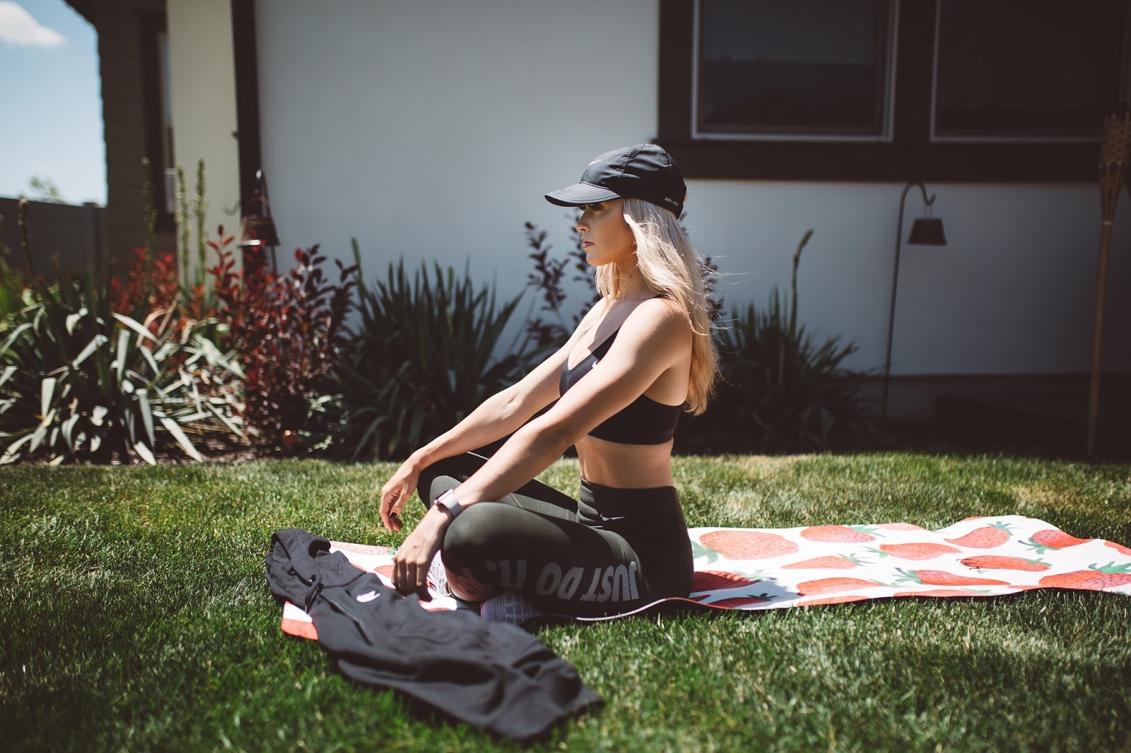 This particular day the dudes were swimming in their mini pool and running through the sprinklers out back, so that meant some abs, legs, and arms workout for me. Working out outside brings one very clear difference to my routine, as compared to working out in the gym or inside my home…that difference, the amount I sweat and how fast I start to sweat! Anyone else in this boat? Especially on a hot summer day like the one pictured, it’s like instant sweating! Knowing that about my outdoor workouts, I am always on the hunt to find activewear that caters to the warmer temperatures and combines the style/brands I love with the right fit and cut(s). For me, Kohl’s answered the bell again, giving me an awesome selection of sports bras, leggings, shorts, hats, and shoes that fit my needs and help me feel confident as I wear them.