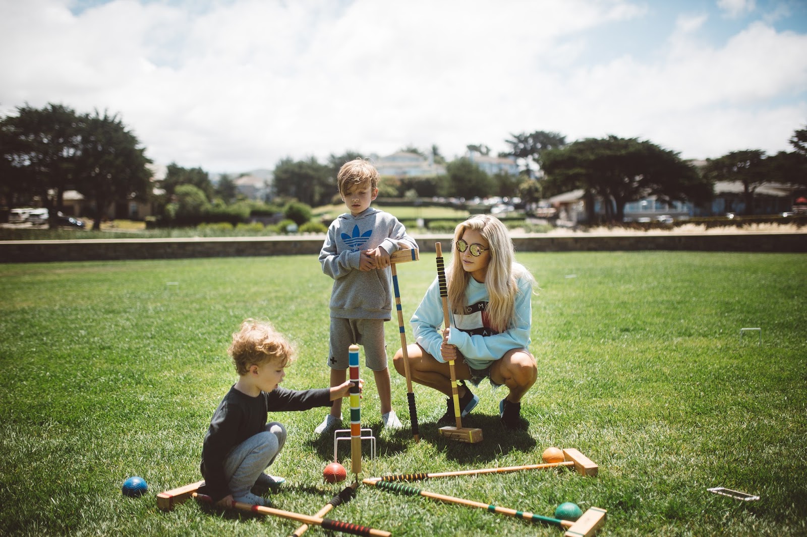 With that being said, today’s post is all about the boys and the interesting fact that surrounds them. This being, no matter what day it is or where we are, they are in a constant state of play. Whether on the road or at home, these boys simply want to be doing, doing, doing, and playing, playing, playing. Although it can be exhausting for Brod and I, and tricky on our work schedule (seeing as we work from home or wherever we might be at the time), I would not have it any other way. I love their energy and enthusiasm for life! The pics below show some of the activities we enjoyed at the Ritz Carlton Half-Moon Bay. We swam and swam (for sure the go-to activity of the boys wherever possible), and played croquet for the first time which was so rad! Arrow was a little dangerous with the mallet in his hand haha, but they both loved it and had such a blast playing it. Other adventures not pictured on this particular trip were trail hiking, rock throwing at the beach, chasing each other on the golf course, and eating way too many s’mores!