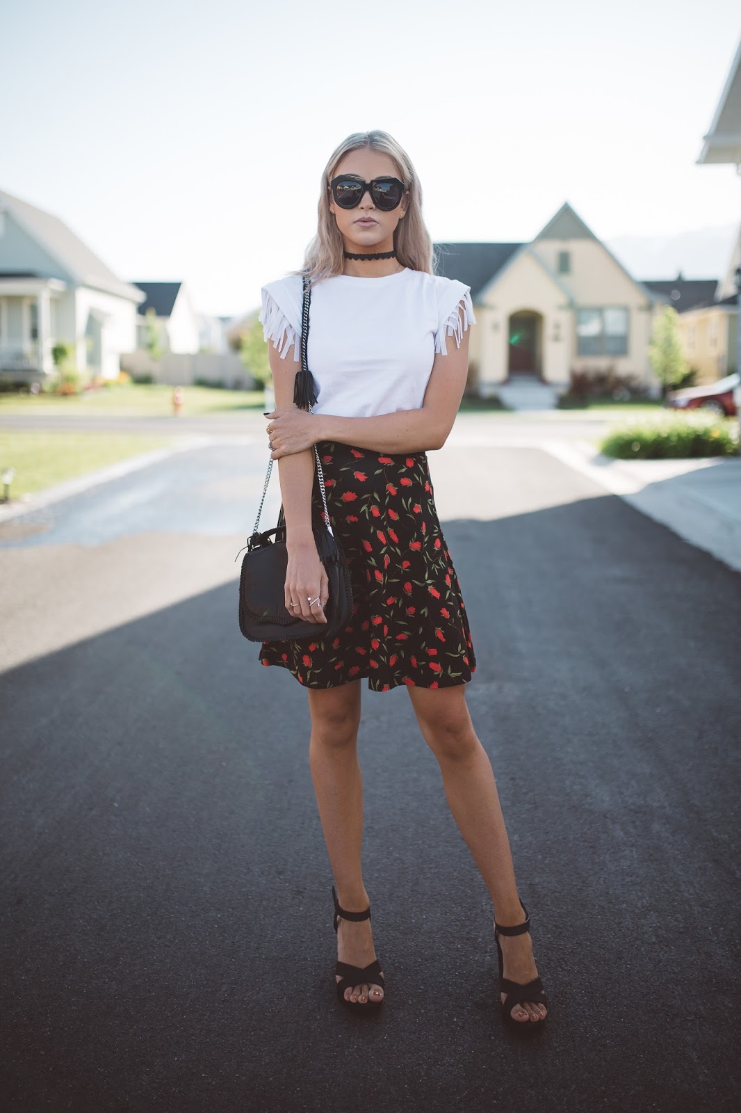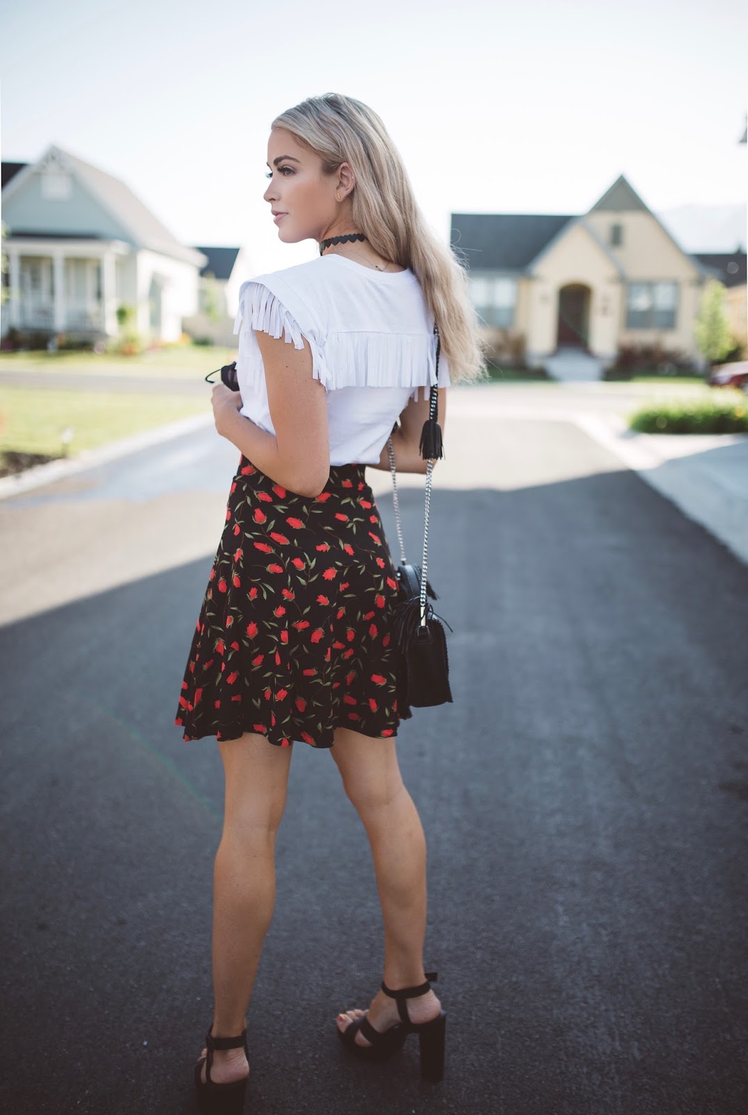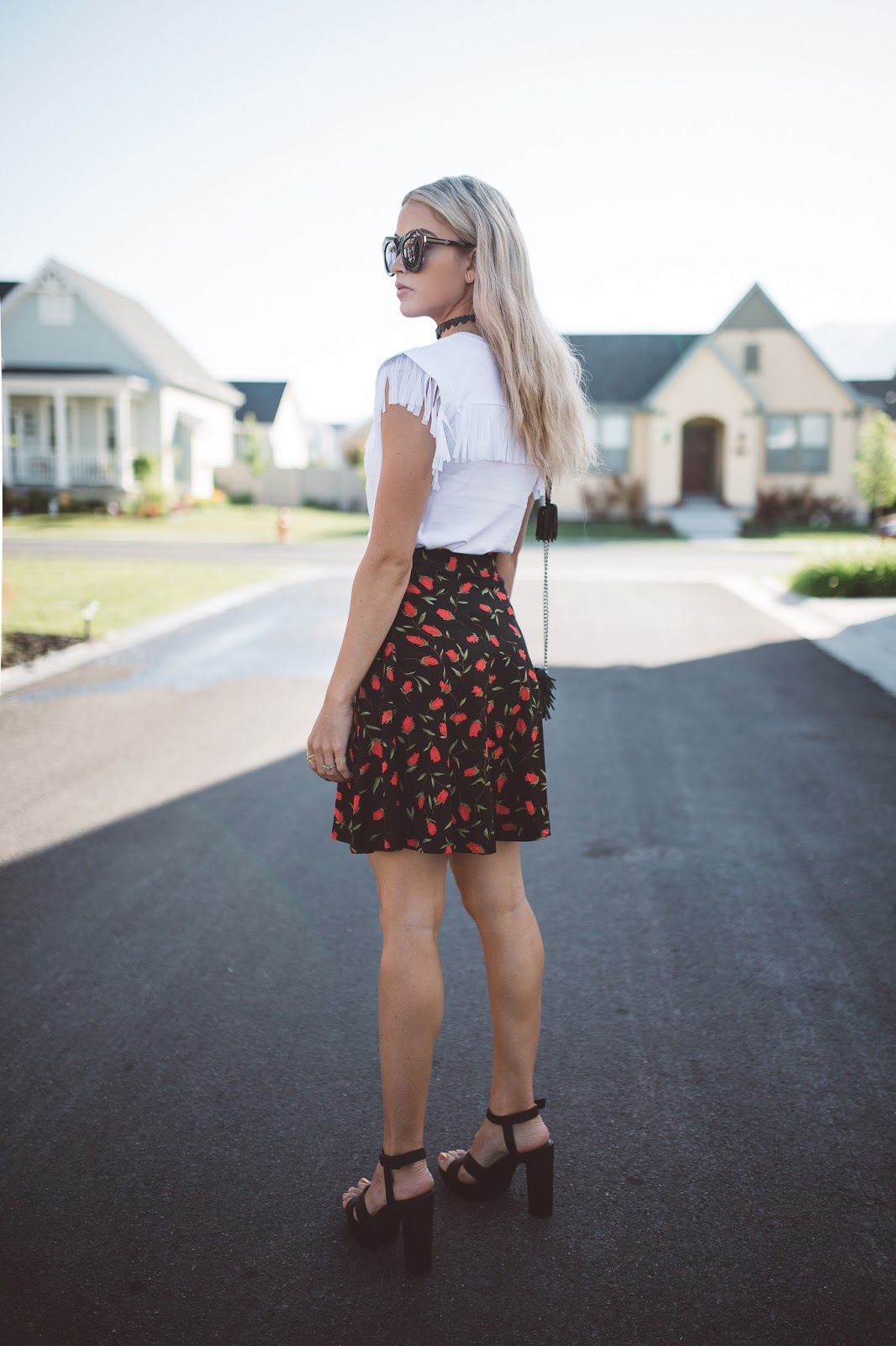 So, today’s post features one of those outfits that I feel is perfect for summer. It mixes a fun white top (that you can find from caralorenshop) with a floral skirt…and something about this combo just screams sassy to me! I don’t know what it is, maybe the white fringe of the top, or bright red of the skirt, but this look gives me an extra boost of attitude. I love it! I also love taking a very common and classic color combo, such as pairing white and black, and throwing a pop of color in it. Toss in some platform heels and you are ready to attack the day with some confidence, and maybe a hint of sass. I have linked the pieces below so you can check them out for yourself! I am going to sign off for now, I am starting to feel myself fall asleep and I want to make sure and put my laptop down before I am in dreamland. Thank you all for following! I love you all!