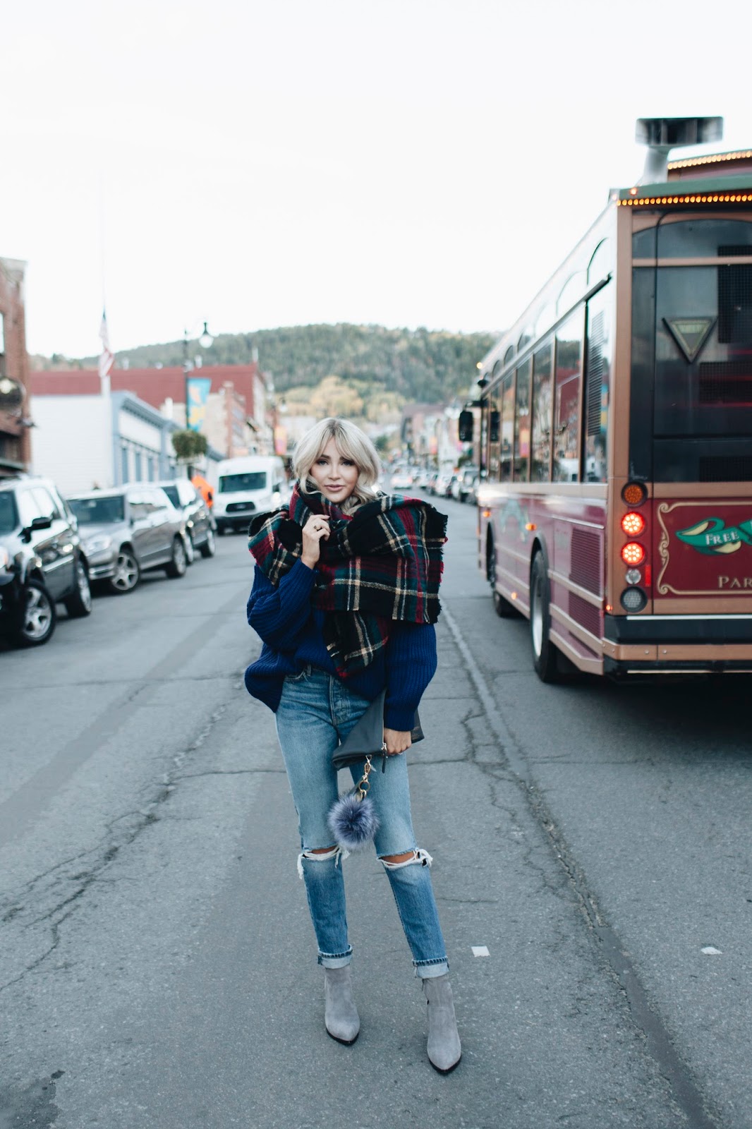 Any how, I hope this post finds each of you doing well and ready to start a fresh week! Today’s post takes us up to Main Street in Park City, one of my favorite streets in the state of Utah. For those of you have not been to Park City, it is a must visit in my book! It’s such a cool, hip, and quaint little city, with loads and loads to do if you like the outdoors in Summer, Fall, Spring, or Winter. It’s best known for it’s tremendous skiing and also hosts Sundance Film Festival each year in January. Main Street has a bunch of great shops and many different wonderful options to eat. These pics are from a night spent up there with some of my good friends and fellow bloggers, as my friend Jenny (Fawn Design) and I were sharing and unveiling our diaper bag collaboration. For the night out, I kept it simple with an oversized sweater, jeans, boots, and probably my favorite piece of the outfit…the blanket scarf. I have linked the look below, so check it out if you are digging any or all of the pieces I am wearing!