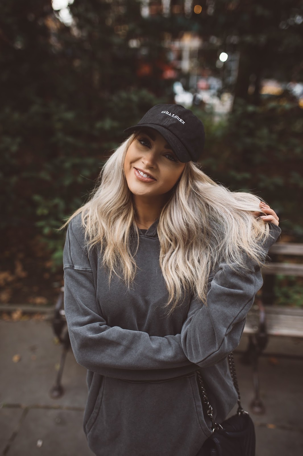 Today, in the spirit of TBT (throwback thursday for those that don’t know), I am taking it back to the city that never sleeps, aka New York City. Brod and I had a quick 48 hours there a little bit ago to attend meetings and get some work done, and I was reminded during our quick stint of just how much I love New York. It has this energy and pace that is unlike any other place I have been in the world. The feeling of everyone grinding to follow their dreams, to survive, to create, to work harder, to be the best, is a feeling that is so inspiring to me, and sort of tiring all at the same time. There is also this effortless cool that the city has, like it has a history of being cool without trying. I don’t know how to quite describe it, but I love it, and that has always been the best kind of cool to me…the kind that comes by way of simply being who you are. I kicked it in an oversized hoody, jeans, some boots, and a dad hat for this particular day of meetings and to-dos, and I must say that though this is such a simple look, it is one of my favorites. I feel like it fits in that category of effortless cool.