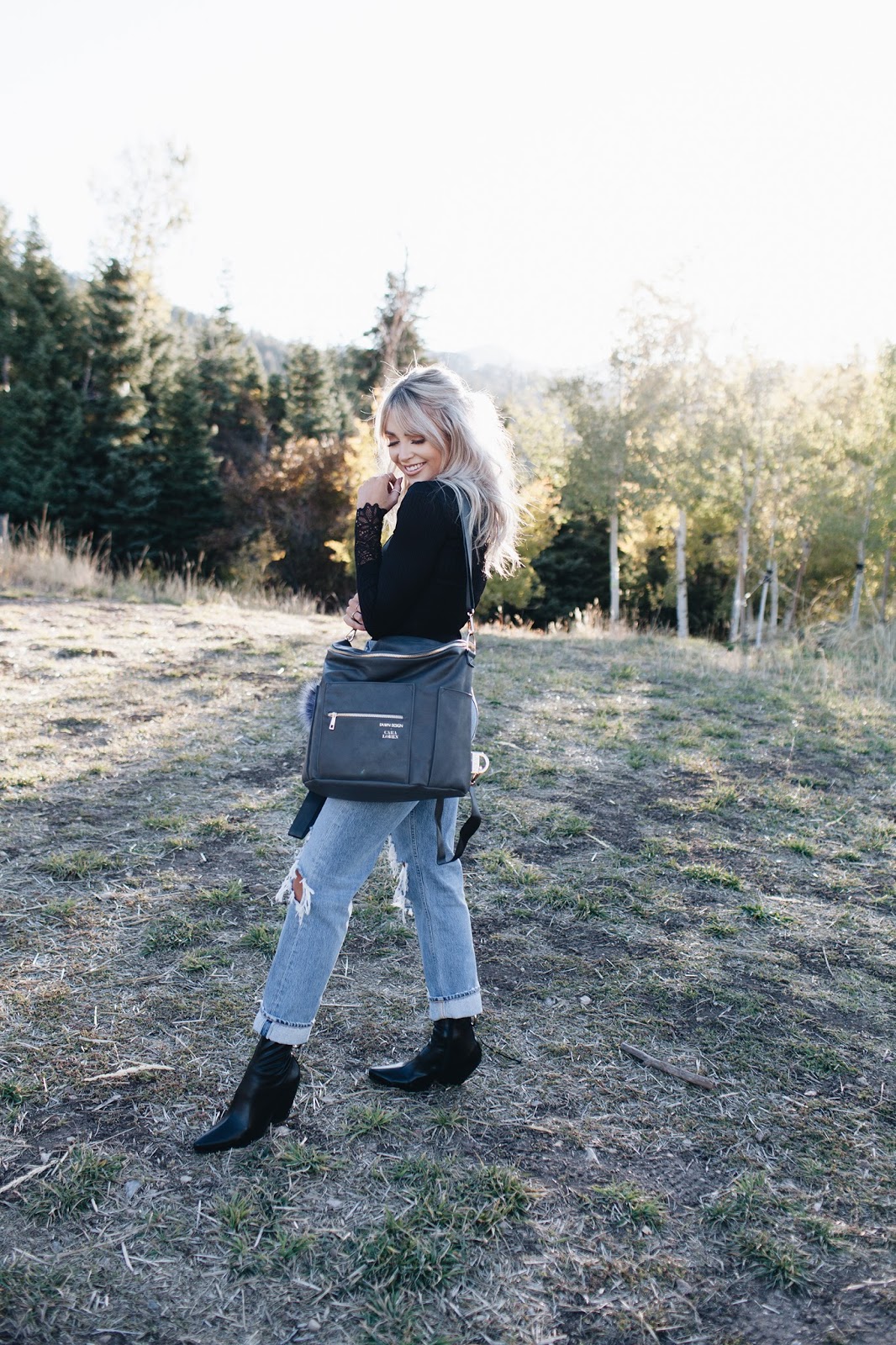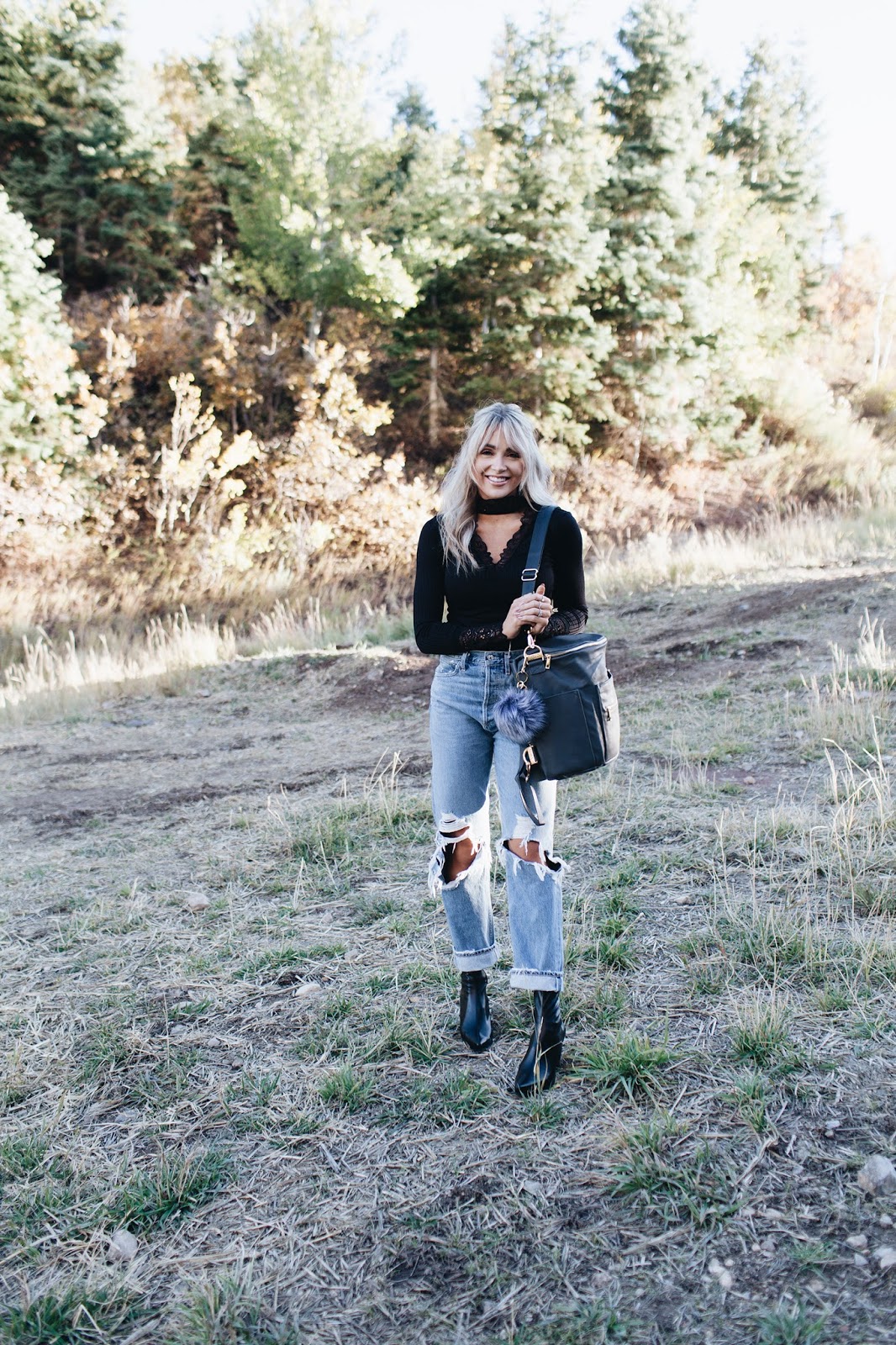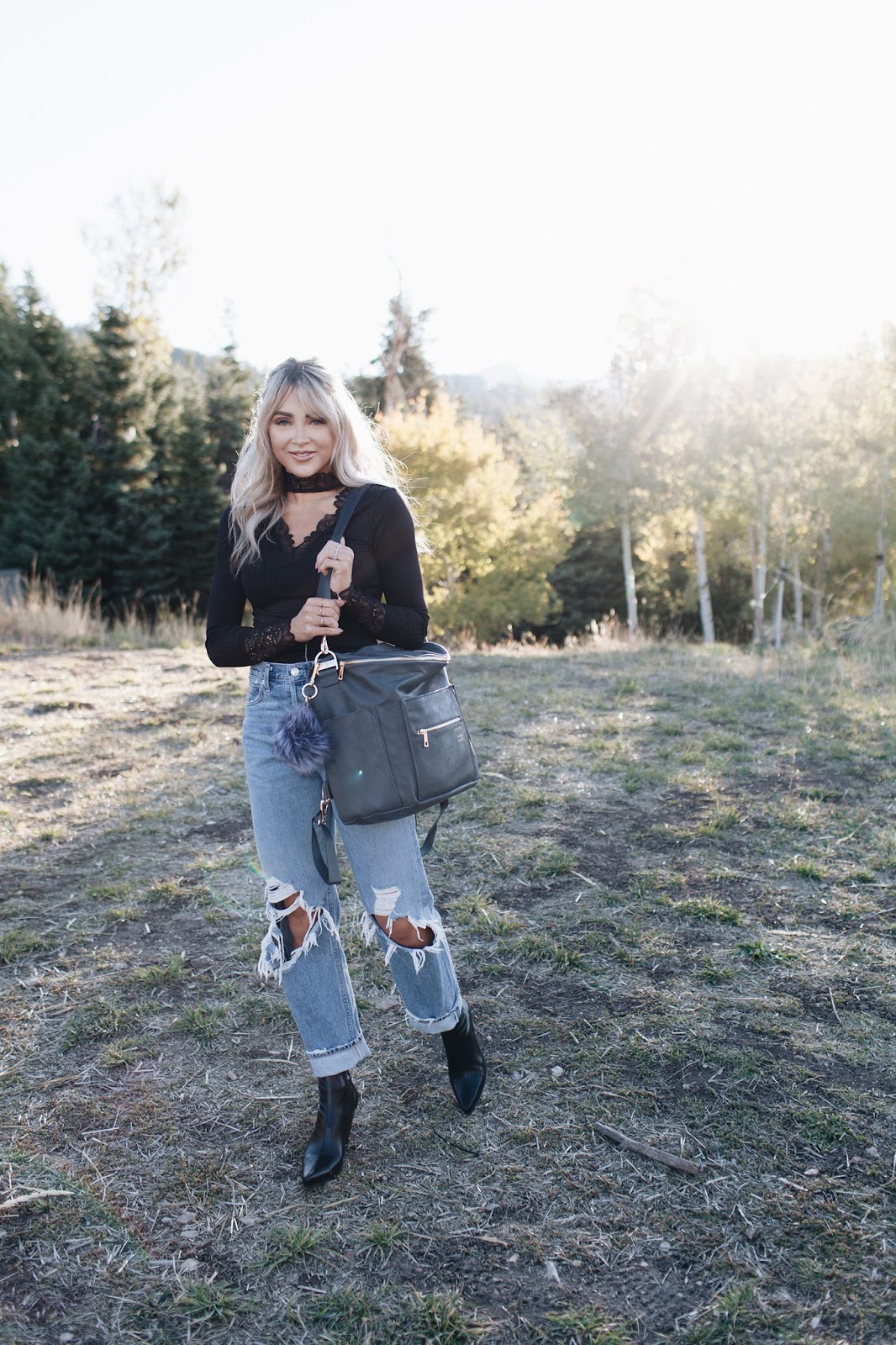 Today’s look is all about the transition from Summer to Fall, and now from Fall to Winter. This Fall look was from when it was a little bit warmer outside and is one that would now have to have a jacket or coat added to it, in order to keep comfy and warm with the temperatures turning the way they are. It’s crazy to say because it’s hard to actually “feel” a season coming on, but that is what is happening, I can actually feel Winter making it’s way here. Part of me wants to cry because I am not the biggest fan of the snow and/or the cold, but the other part of me says that Winter means the Holidays, time with family and friends, and feeling the love. I think I will focus on the latter part and do my best to be dressed warm and ready to enjoy the actual snow and cold part. Any how, I don’t have much else to add today, I simply wanted to say thanks and tell you all that I love you. I also love these jeans I am wearing, and the bag that Jenny from Fawn Design and I collaborated on is one of my all time favorites and is a bag that I am so proud to have my name on and be part of! They sold out super quick, but you can pre-order here. I hope you all have a fantastic day. Keep your eyes on those pieces that will help you transition from season to season, they are key to any wardrobe. I love you all!