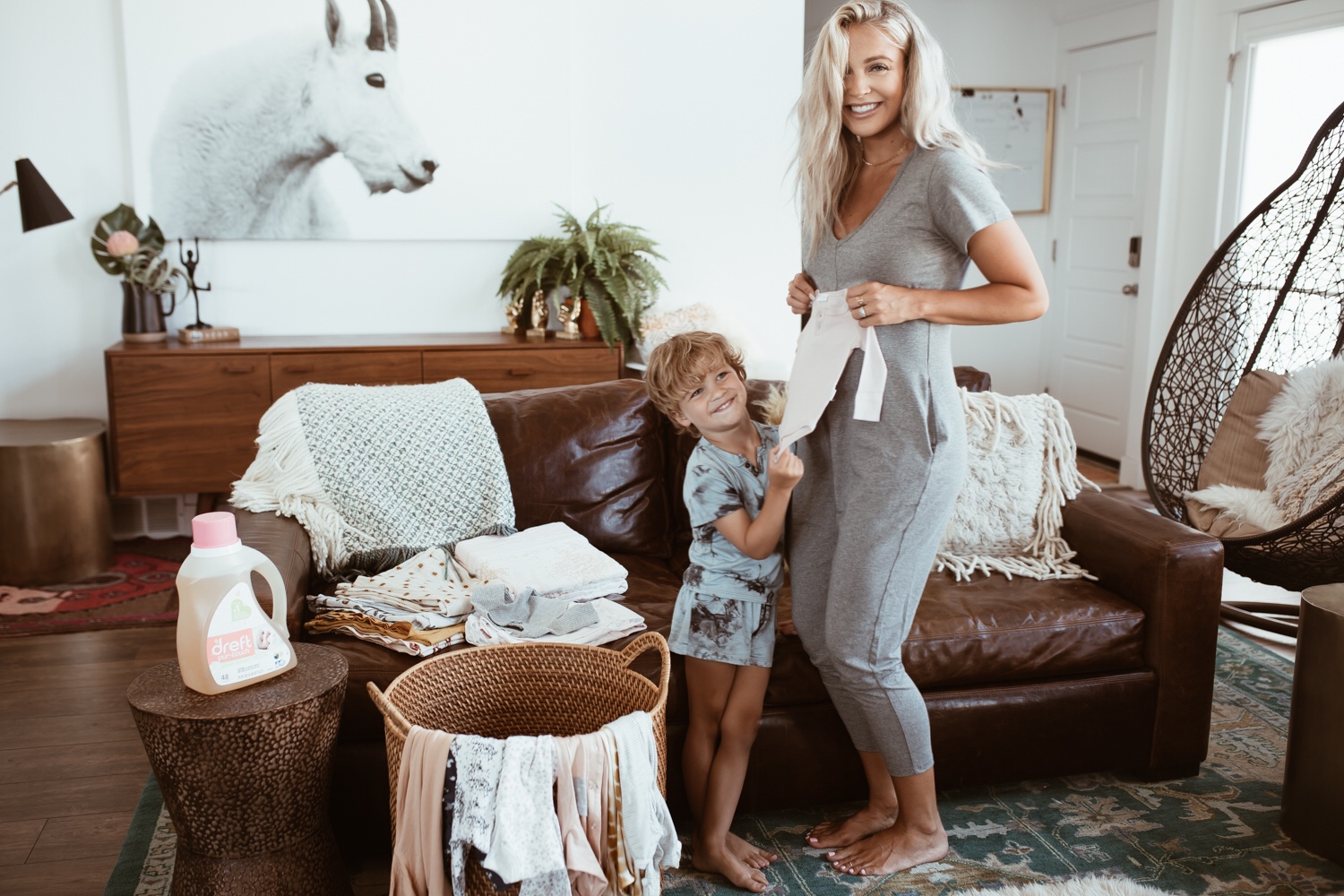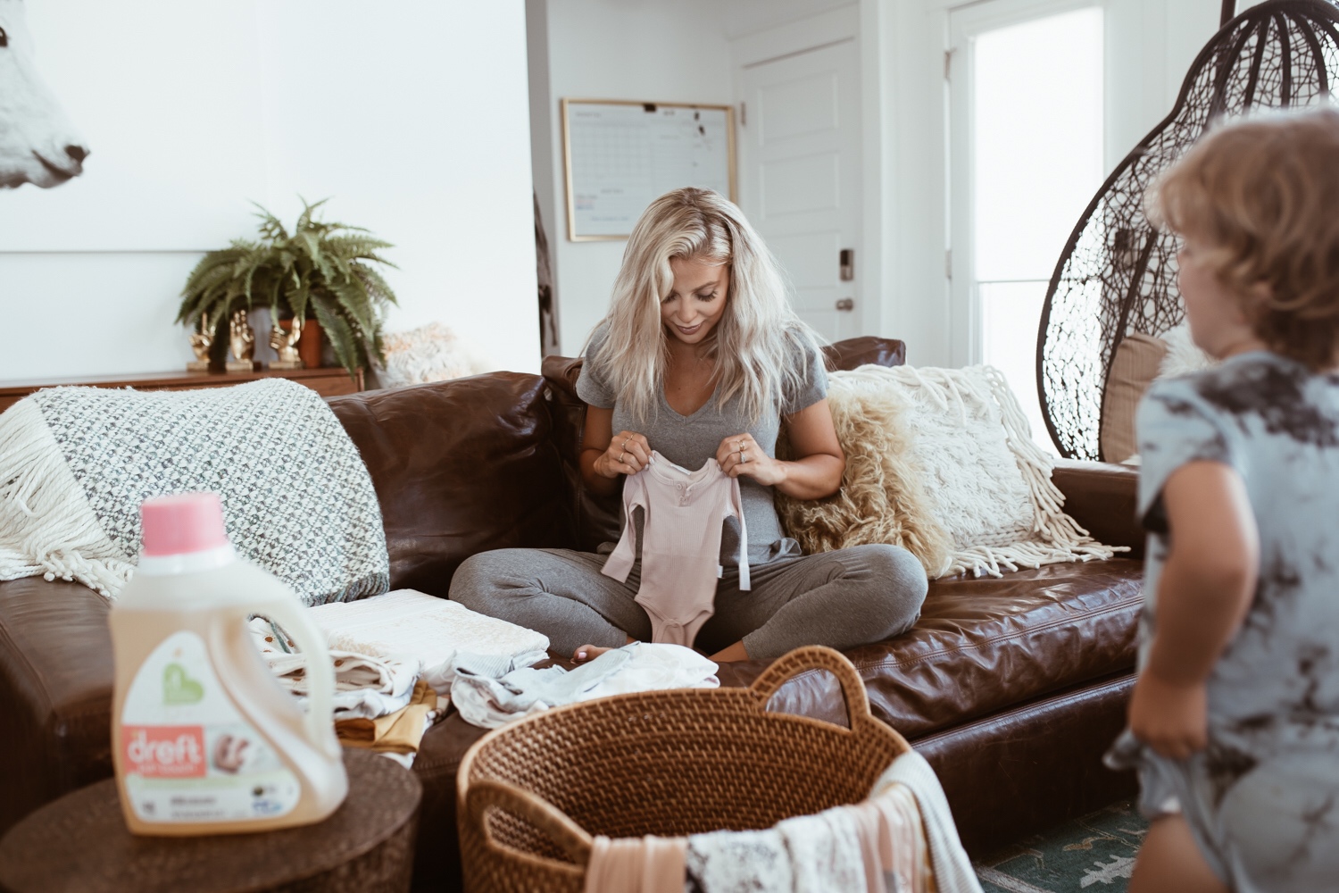Ok, so here is something crazy, after using Dreft to actually wash baby girl’s clothes, I can honestly say that it really does have that familiar newborn scent that reminds me of when my little guys were babies.  That smell brings so many memories to mind as I think of both Hanes and Arrow as newborns that it is also starting to make me feel bonded to my little girl and that much more excited for her to arrive. I have a feeling that when she is born, that amazing smell of Dreft will continue to help us bond long after that newborn smell is gone. I can also feel confident using Dreft because it is super safe for baby’s skin and is, in fact, the #1  pediatrician-recommended baby detergent. How cool is that?!
